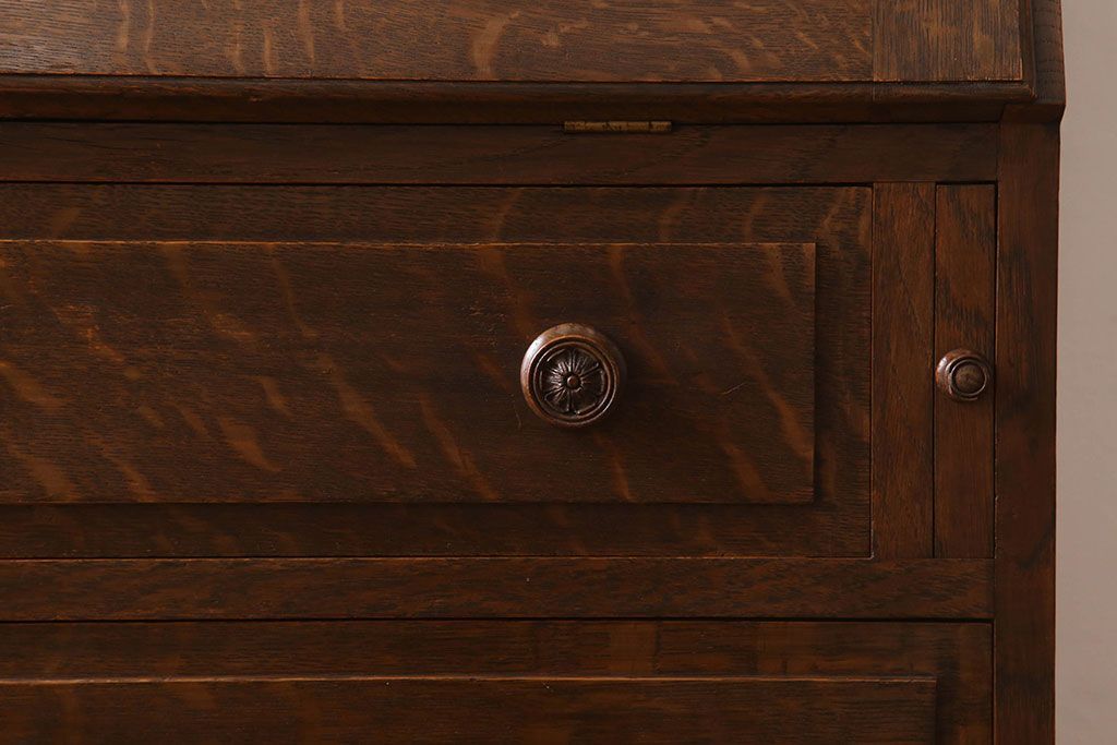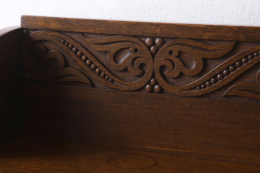 ラフジュ工房> デスク> ライティングビューロー・簿記机 > アンティーク家具 イギリスアンティーク 彫刻入り!上質なオーク材製のライティングビューロー