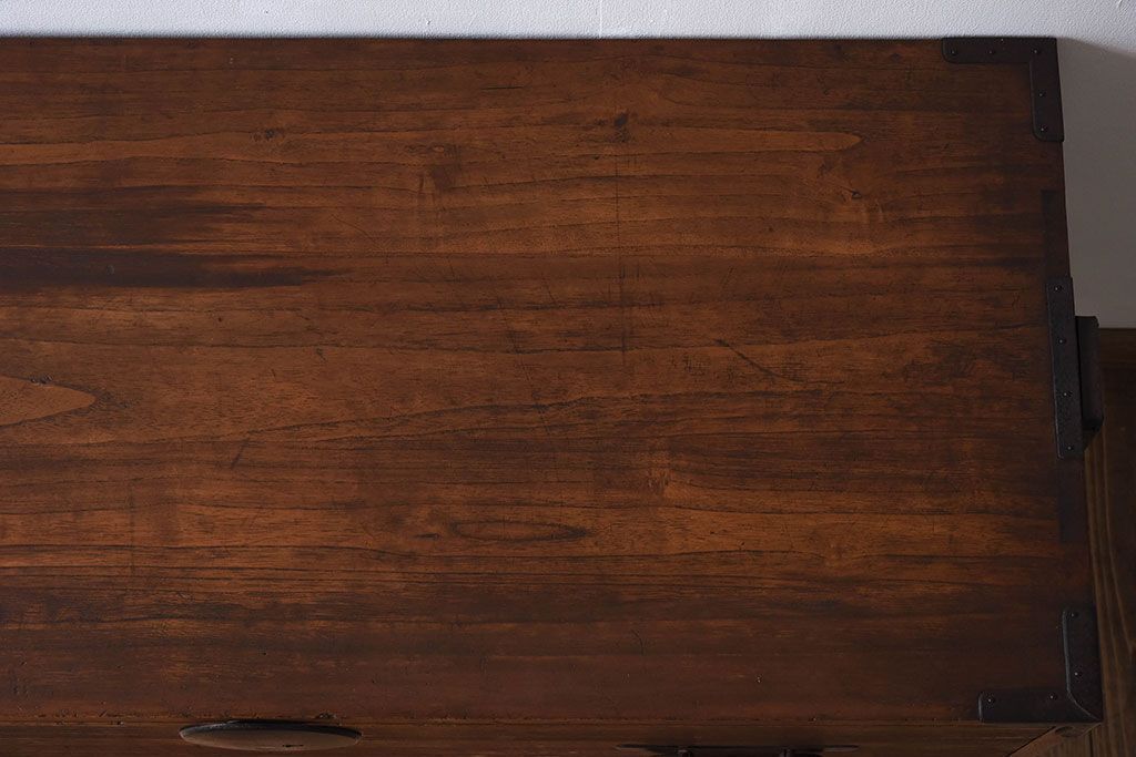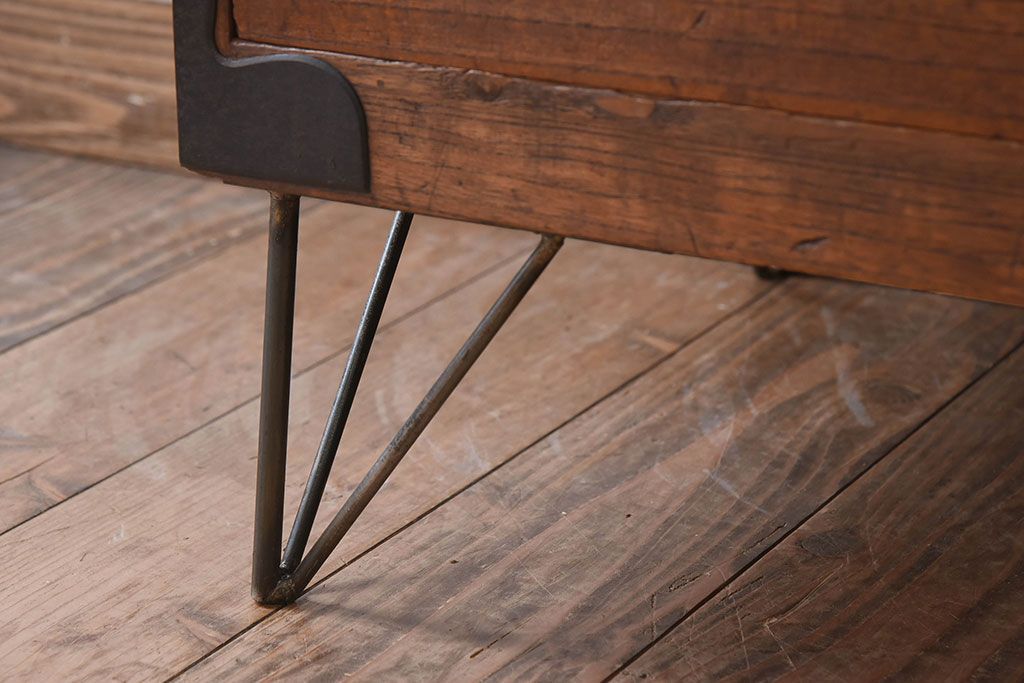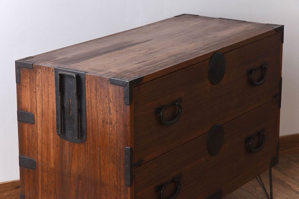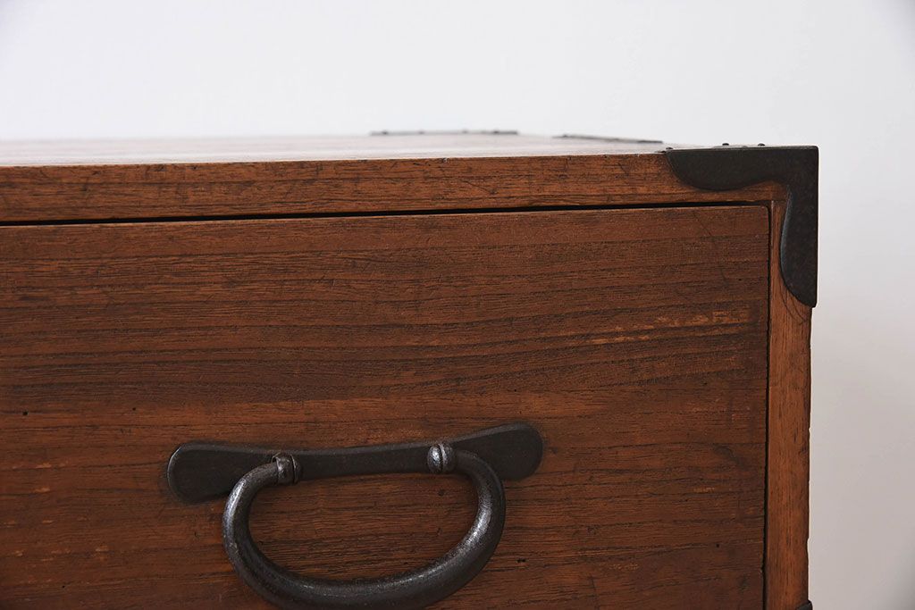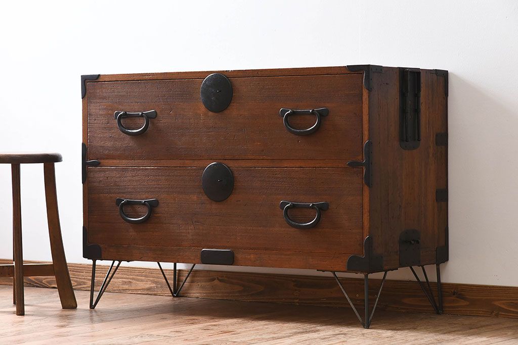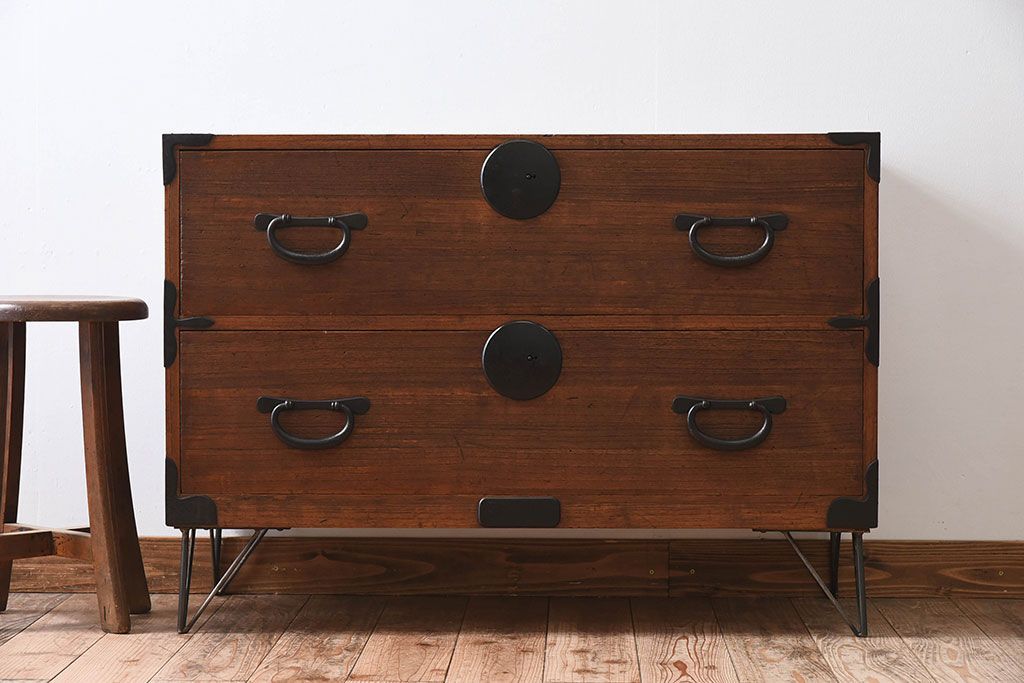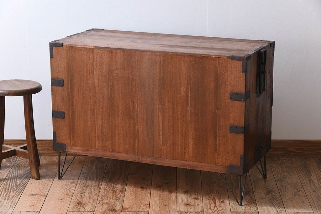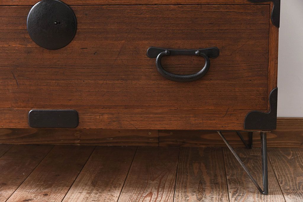 アンティーク家具 総桐材 和製アンティーク 鉄脚付き!シンプルな古い木の時代箪笥ローボード(2)