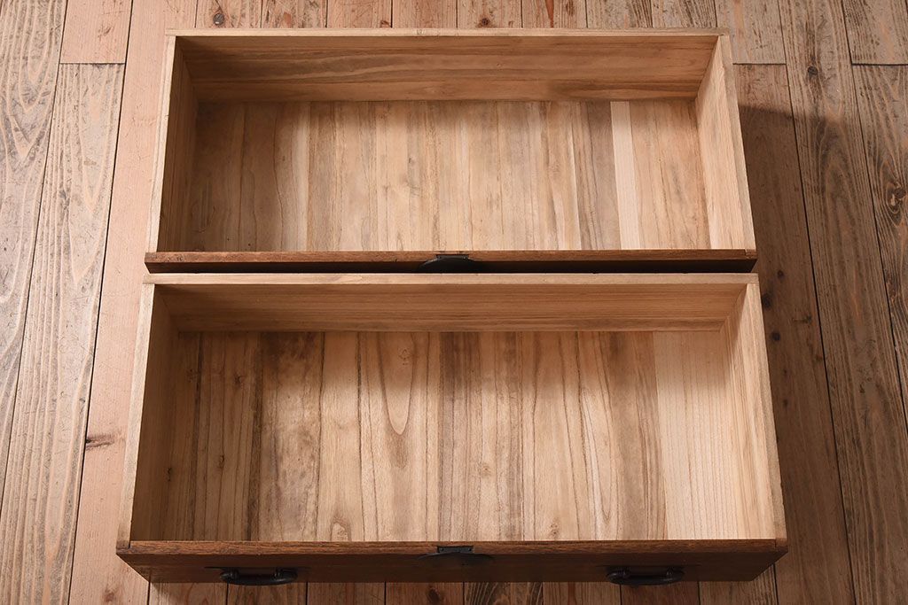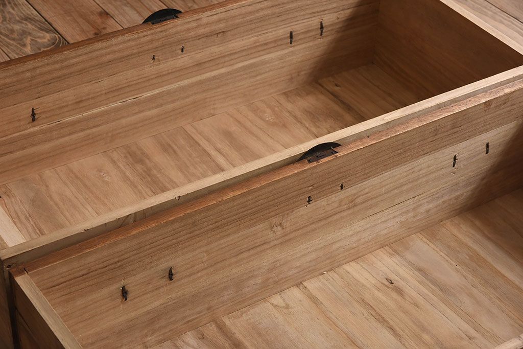 ラフジュ工房> 和箪笥 > アンティーク家具 総桐材 和製アンティーク 鉄脚付き!シンプルな古い木の時代箪笥ローボード(2)