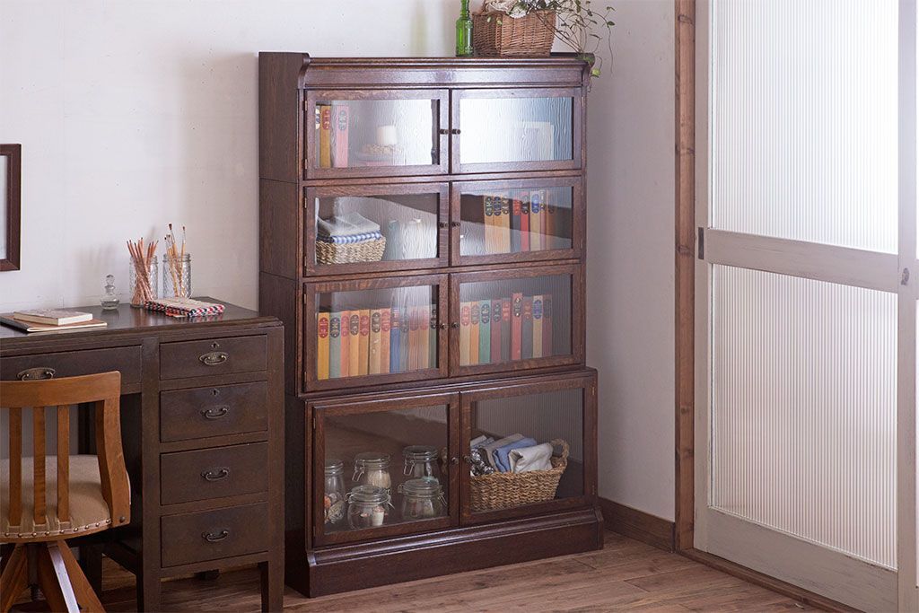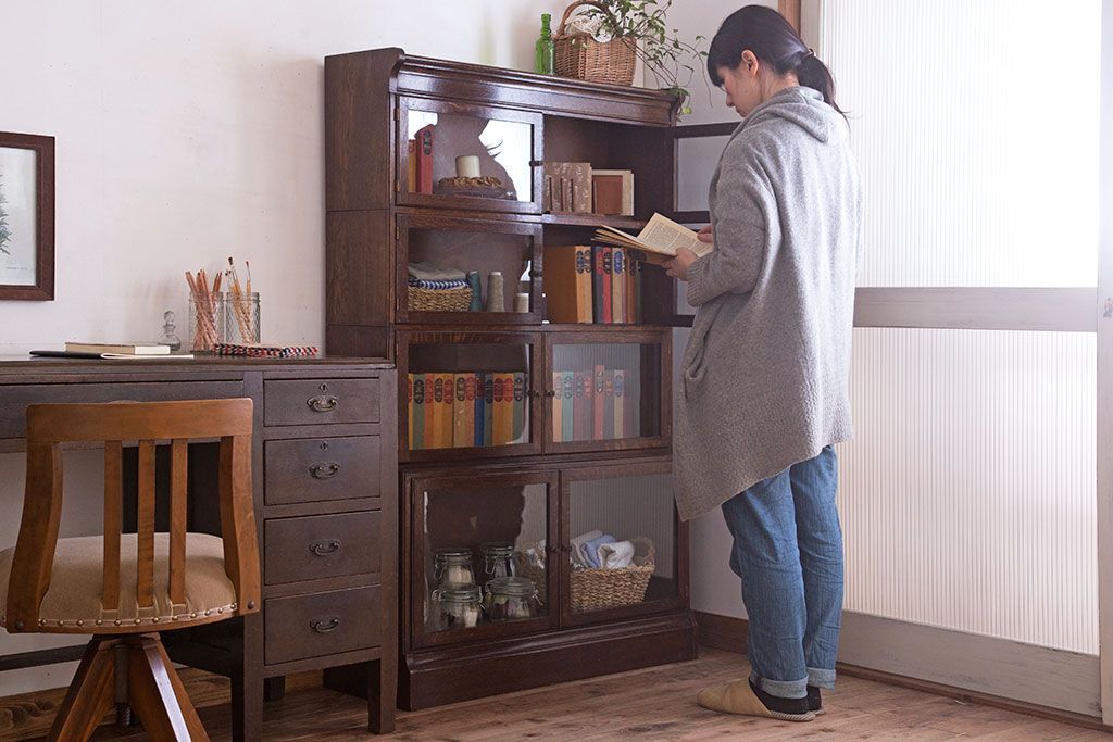 ラフジュ工房> ガラスケース・ショーケース > アンティーク家具 イギリスアンティーク オーク材製 モダンなスタッキングブックケース(3)