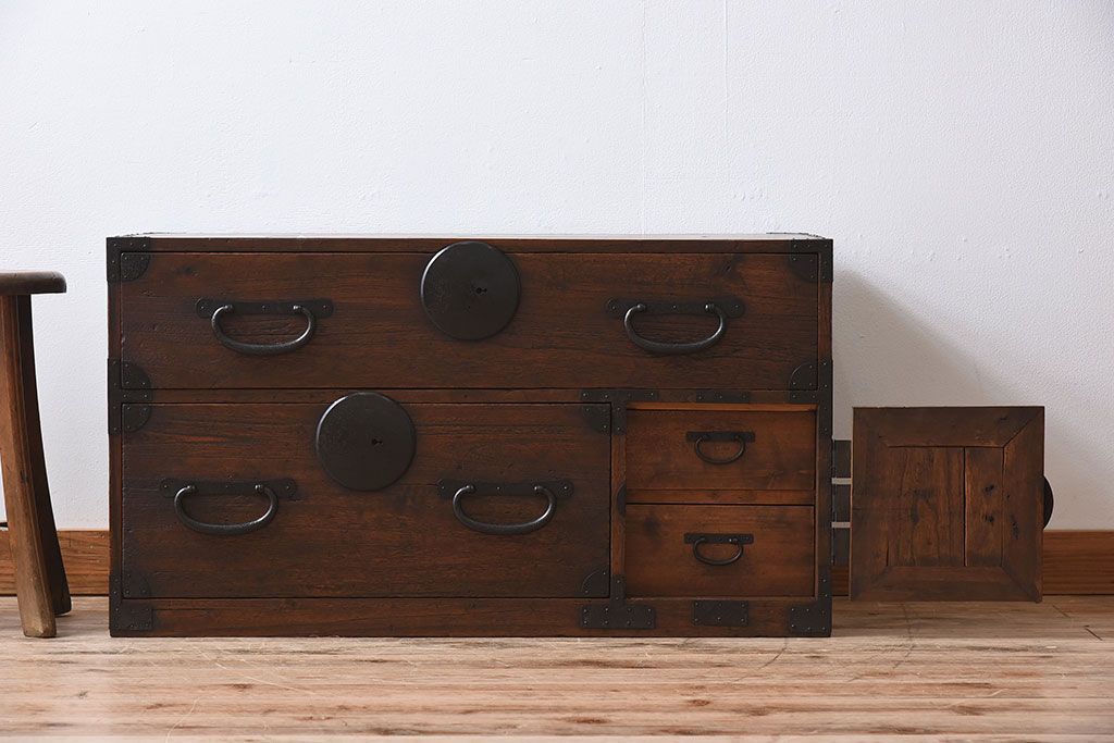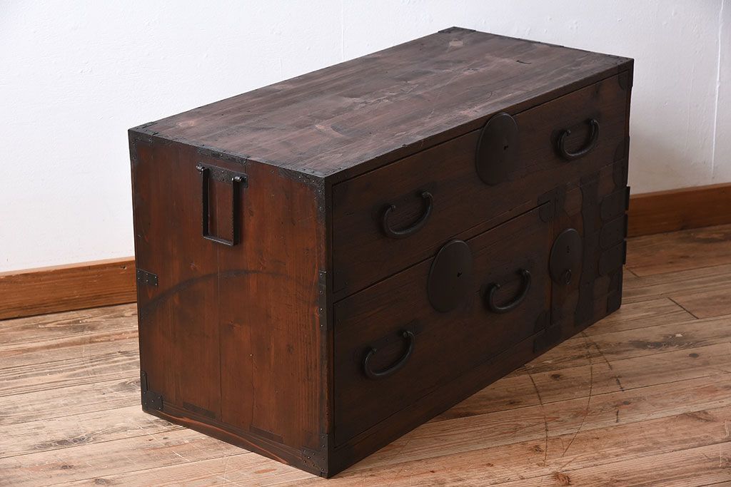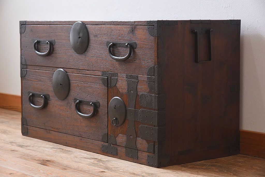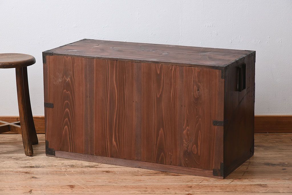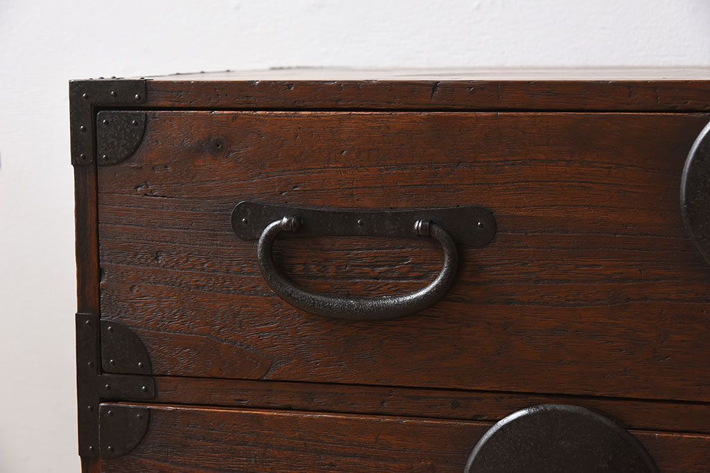 アンティーク家具 和製アンティーク 前面桐材!シンプルな丸金具の時代箪笥ローボード(衣装箪笥)(2)