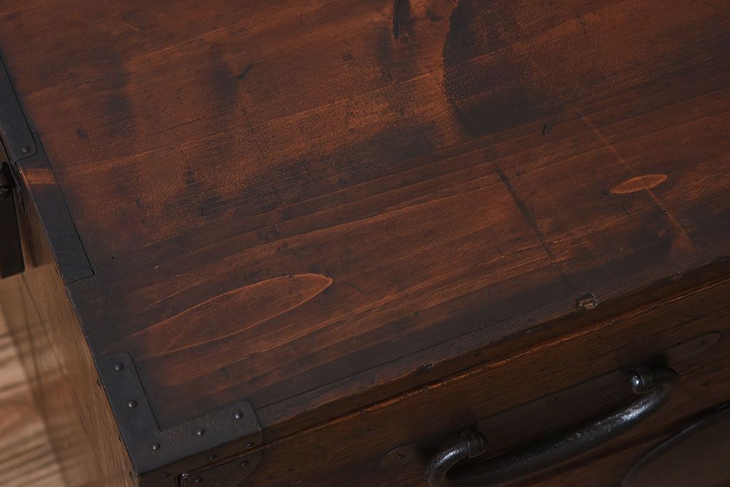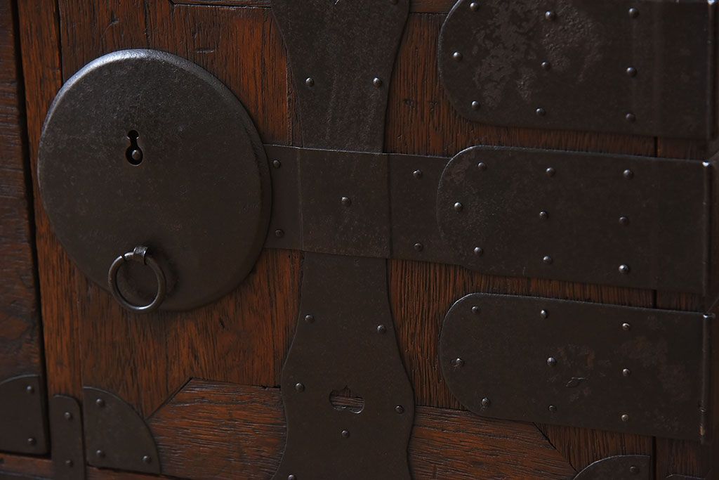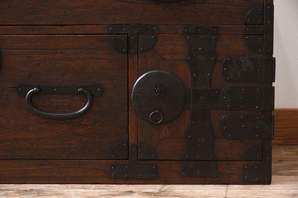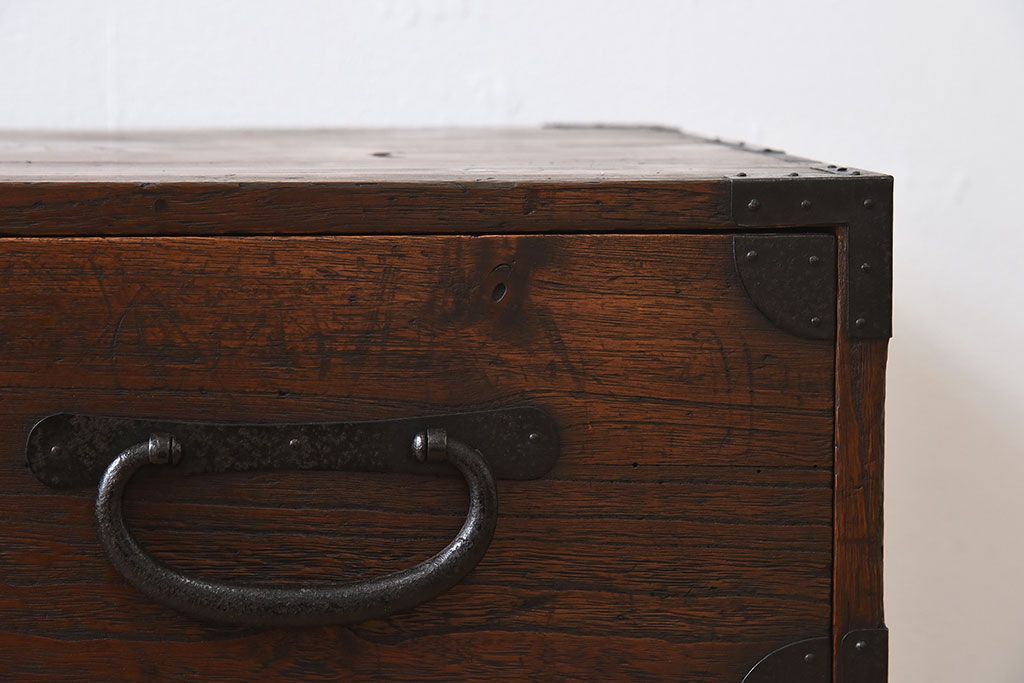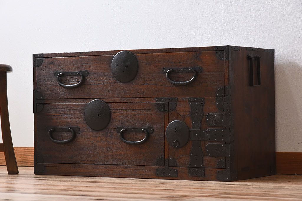 アンティーク家具 和製アンティーク 前面桐材!シンプルな丸金具の時代箪笥ローボード(衣装箪笥)(2)