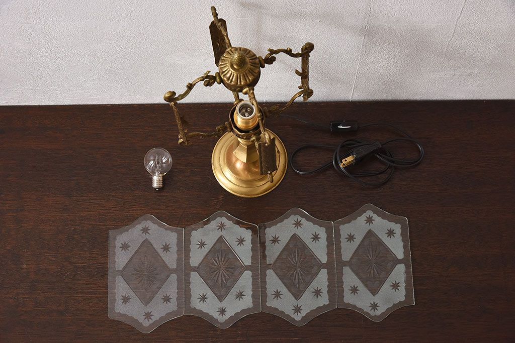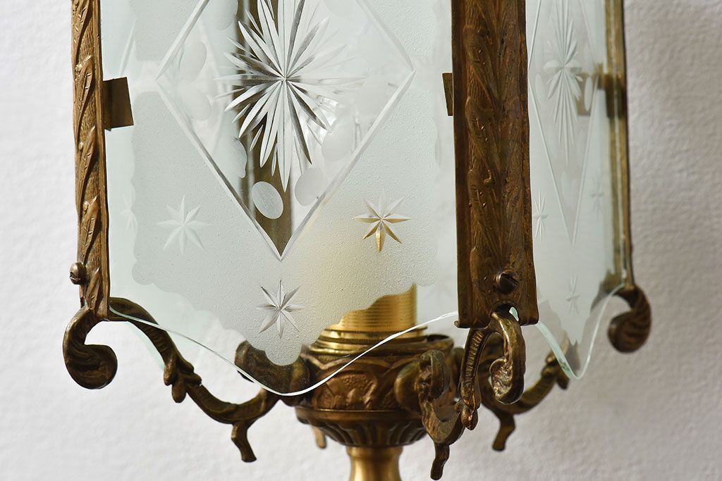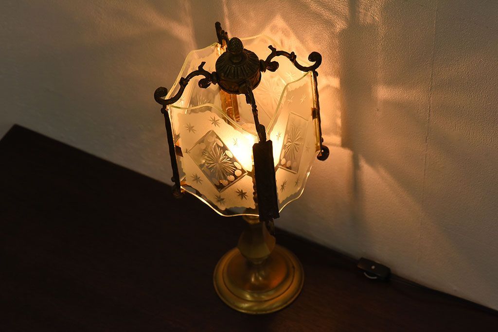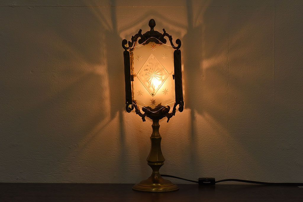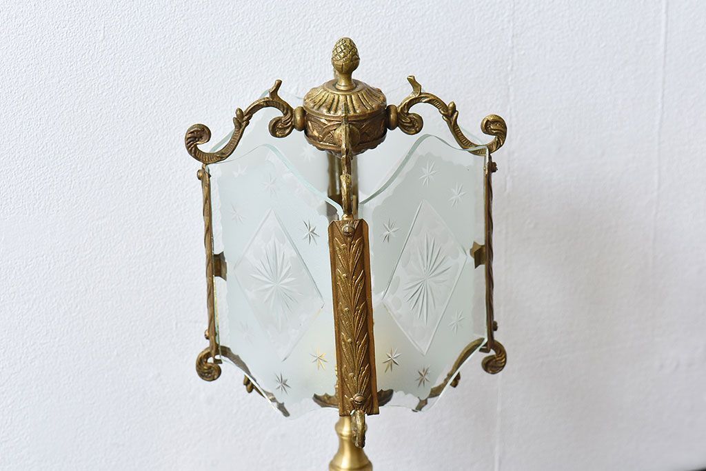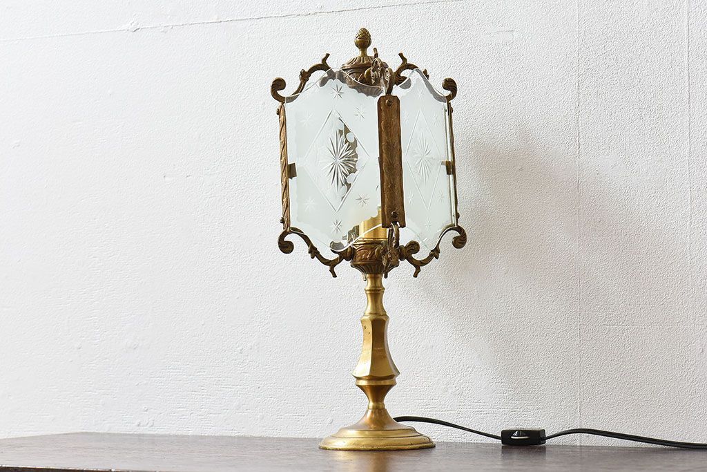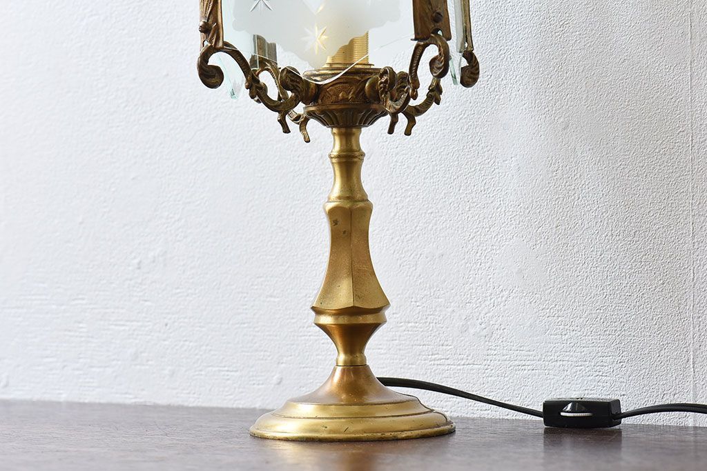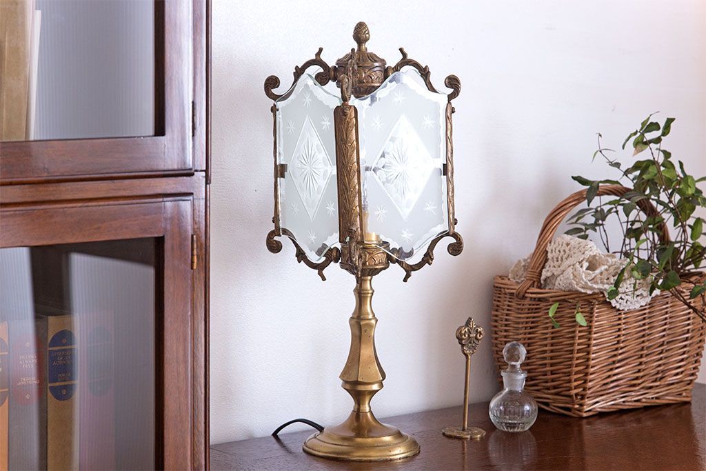 イギリスアンティーク カットガラス 真鍮製 テーブルスタンド(ライト・ランプ)