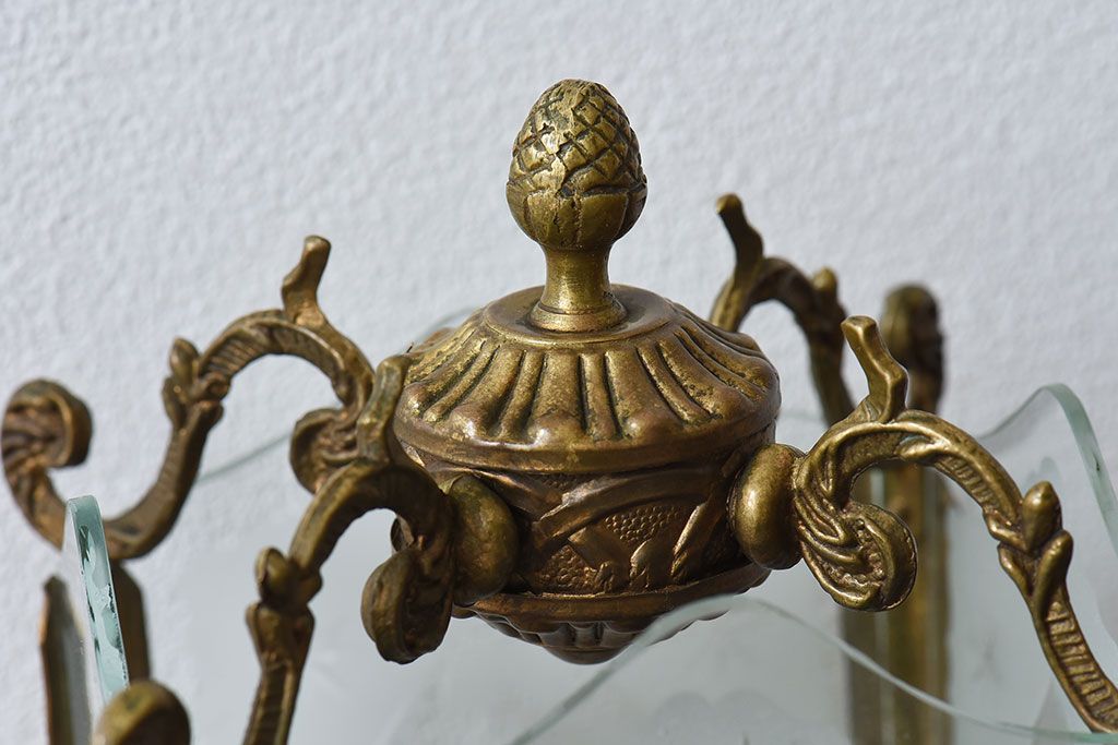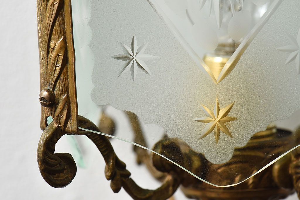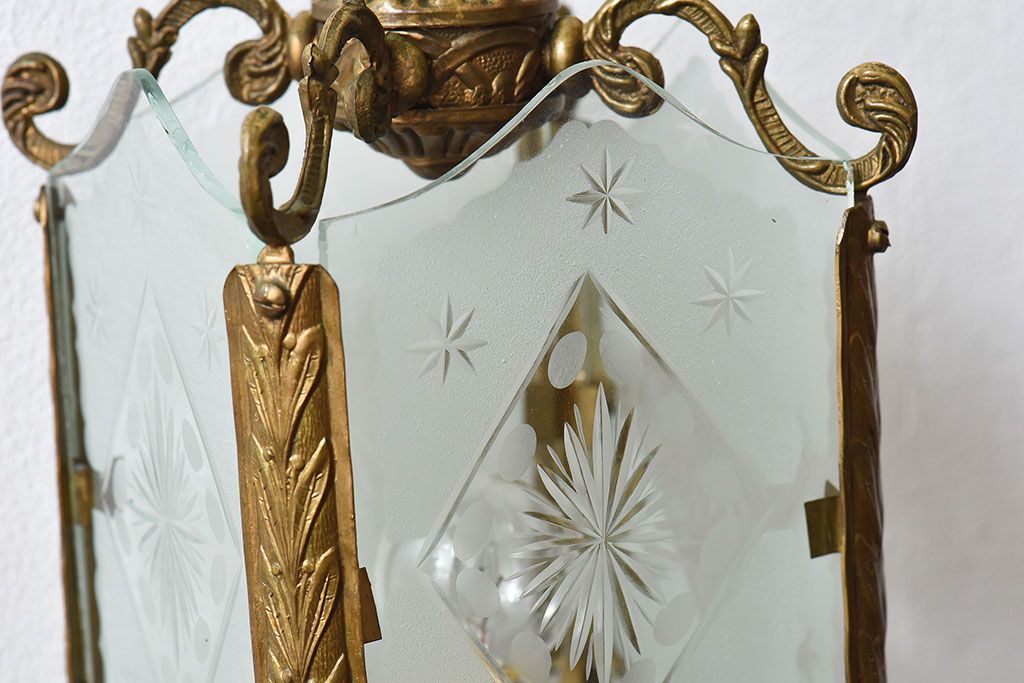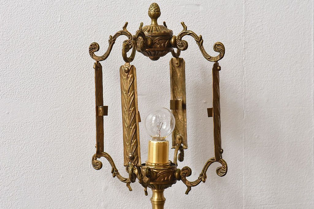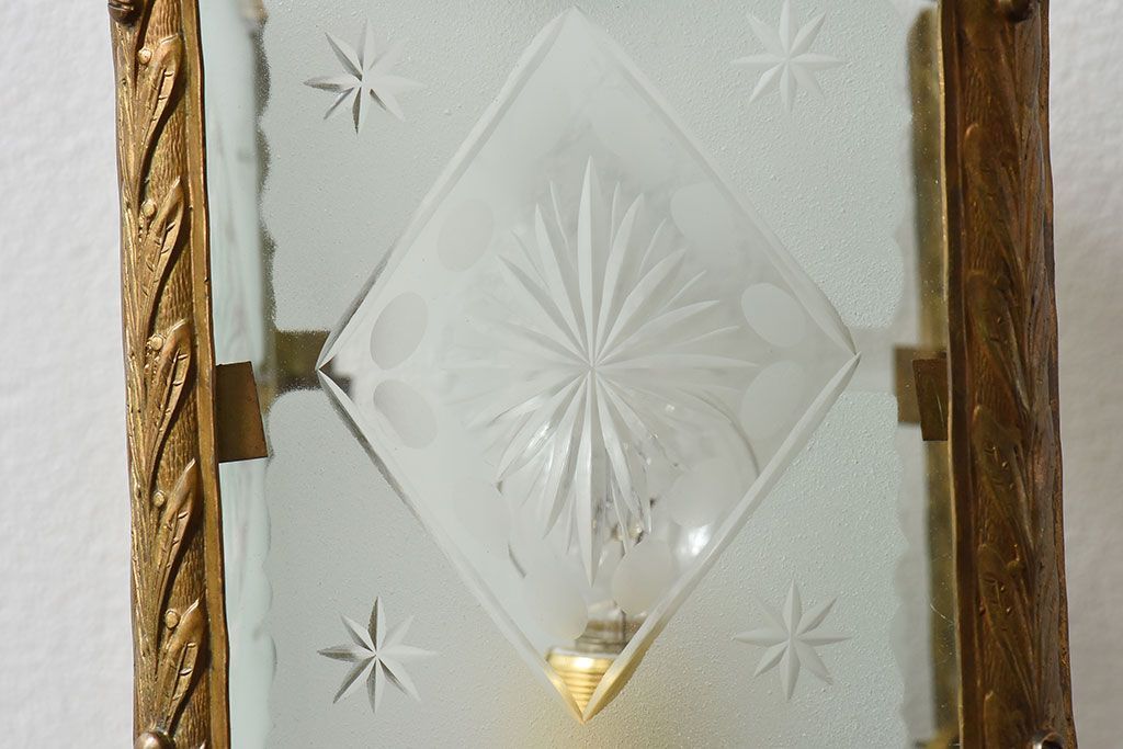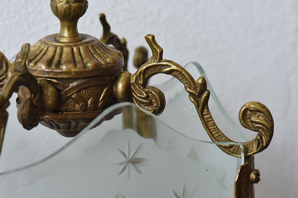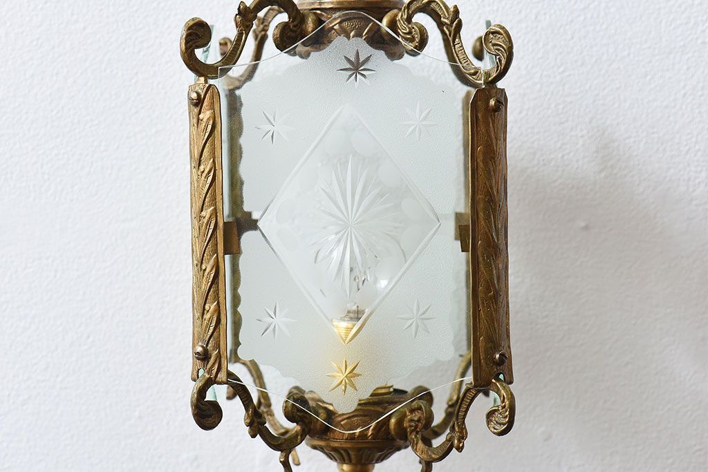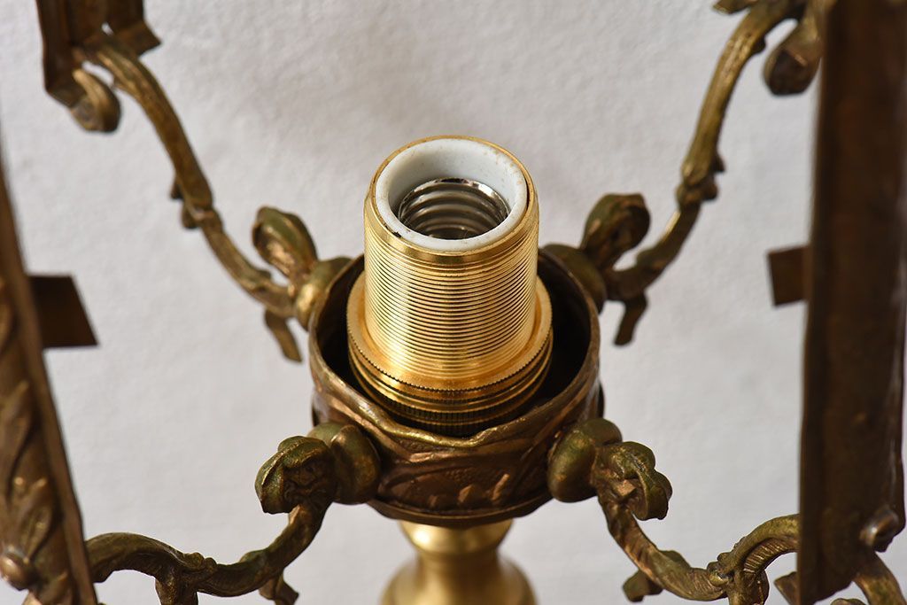 イギリスアンティーク カットガラス 真鍮製 テーブルスタンド(ライト・ランプ)