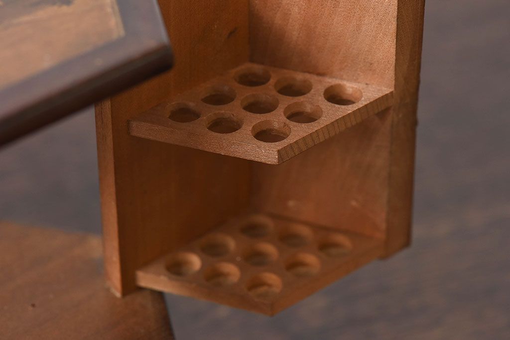 ■扉部分の煙草入れの内寸 高さ全体90mm(煙草差しから煙草受まで44mm)/幅70mm/奥行35mm