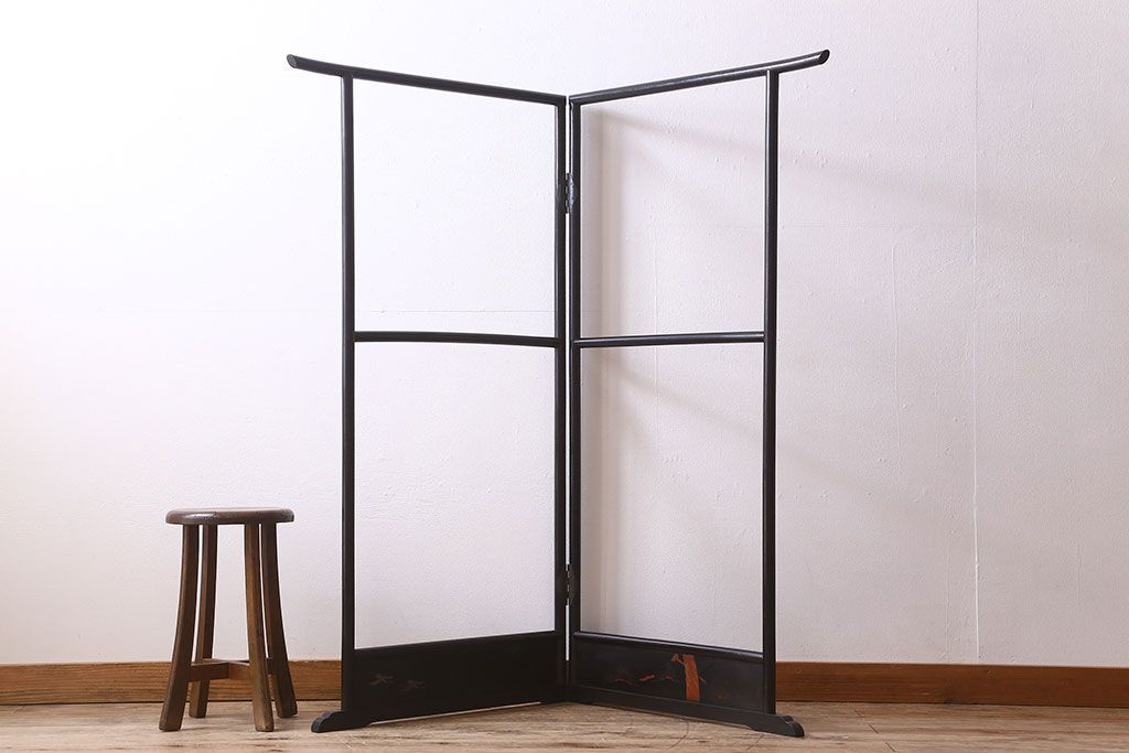 ラフジュ工房> 骨董・美術品 > アンティーク雑貨 アンティーク 古民具・骨董 鶴と松の屏風衣桁
