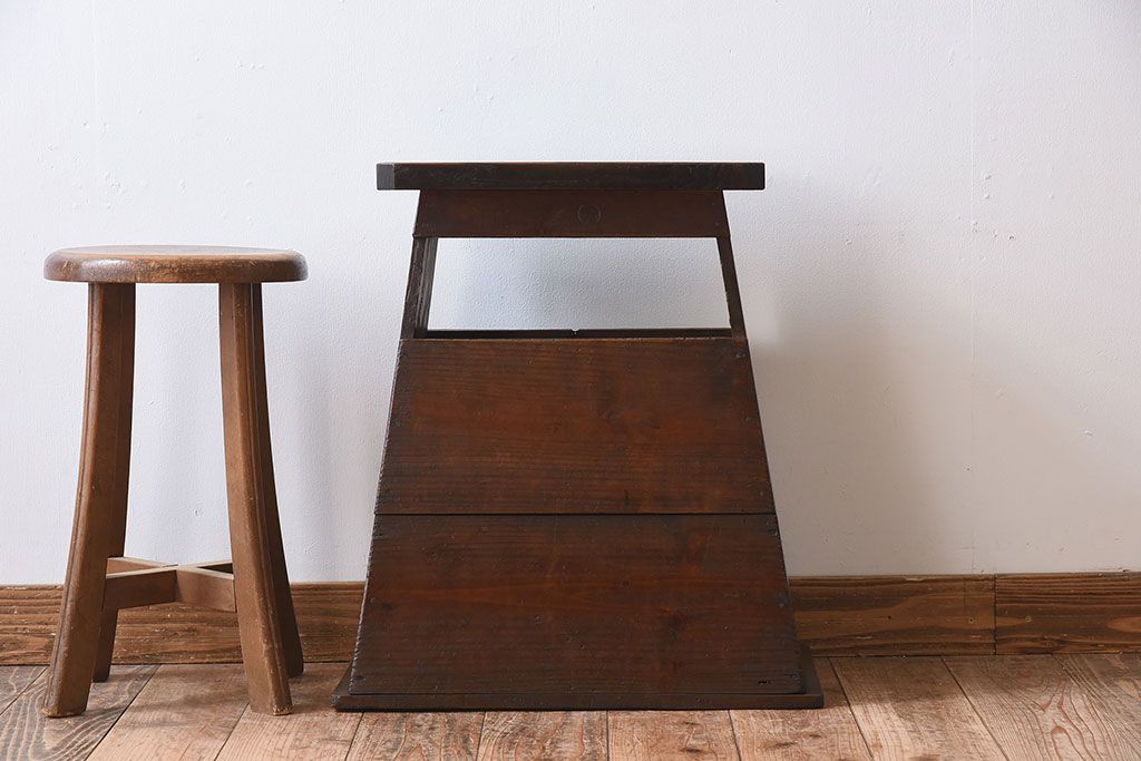ラフジュ工房> 花台・飾り台 > アンティーク雑貨 和製アンティーク 古い木の味わい深いレトロな踏み台(2)