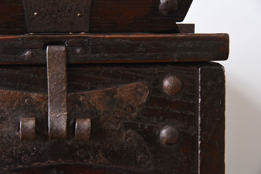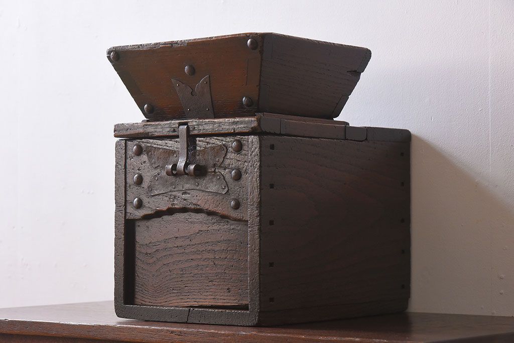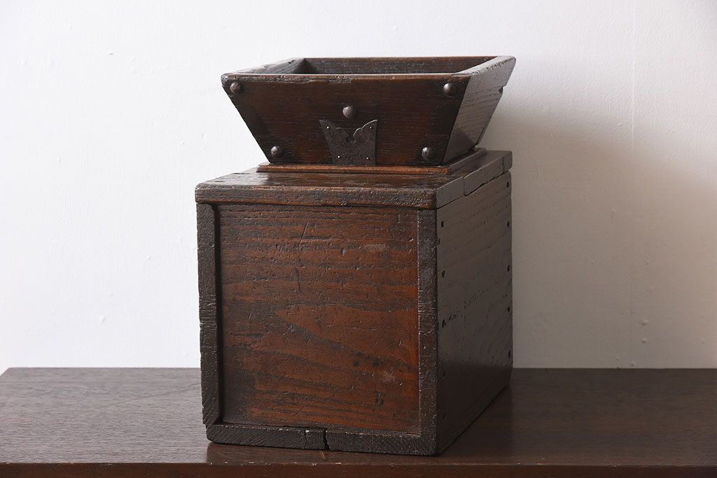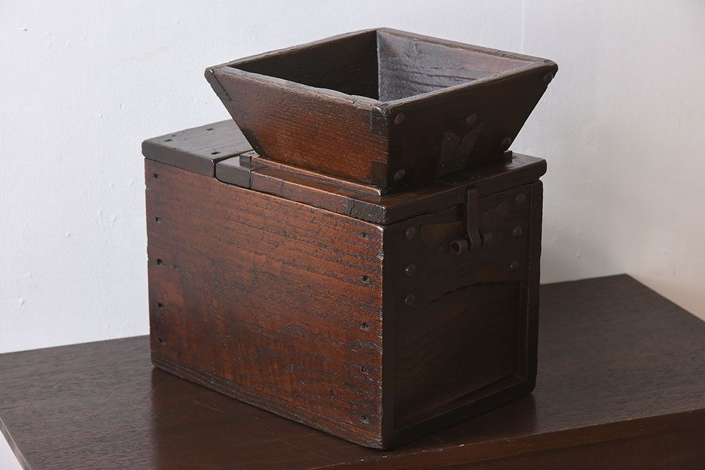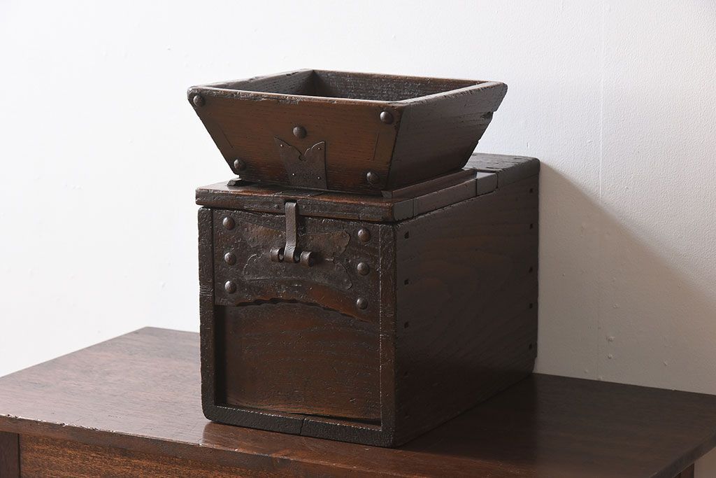 アンティーク雑貨 古民具・骨董 総栗材の升付き銭箱