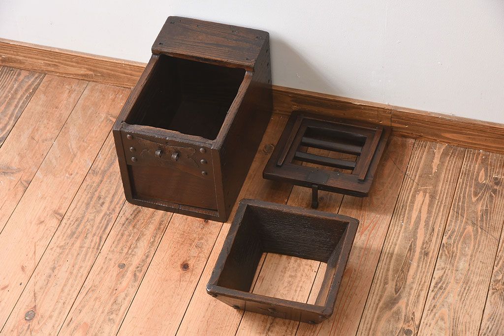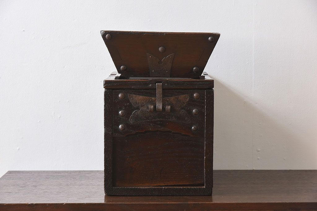 古民具・骨董 総栗材の升付き銭箱です。