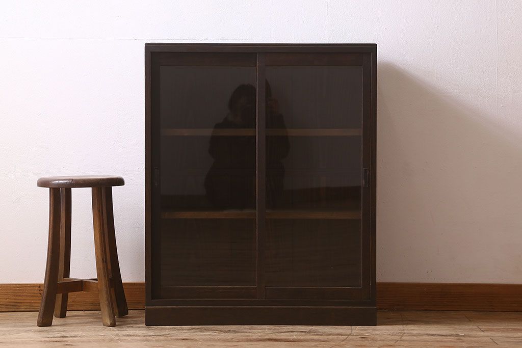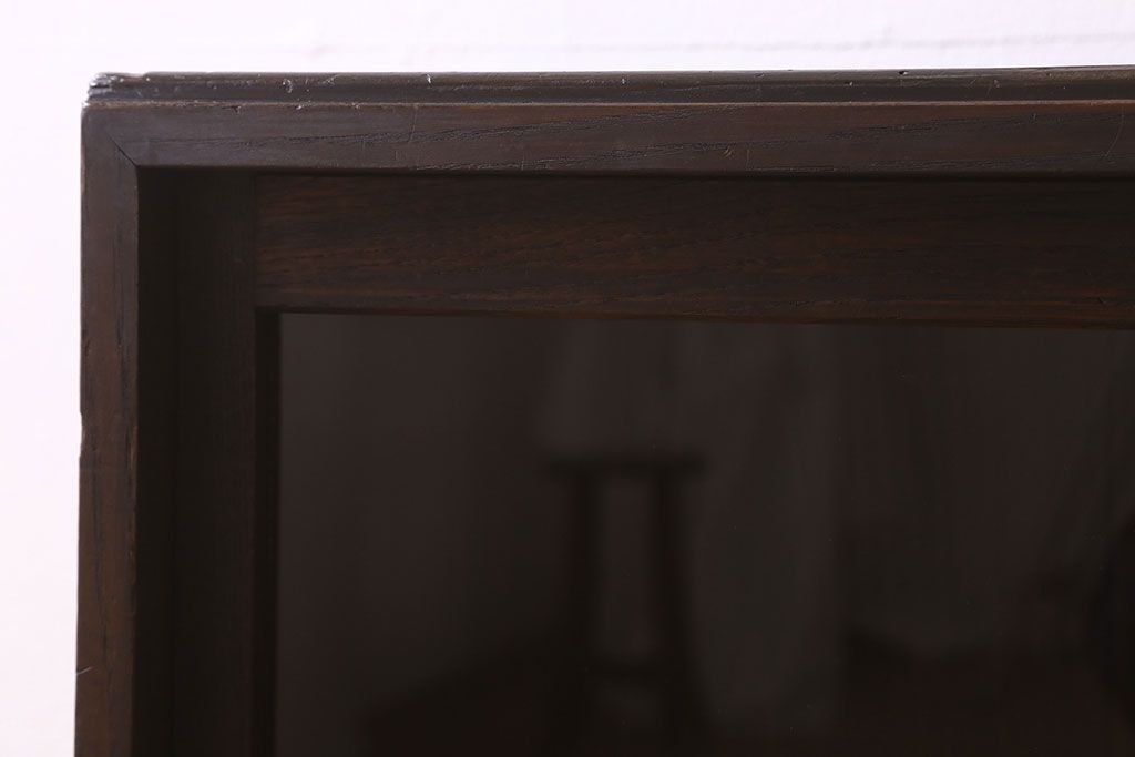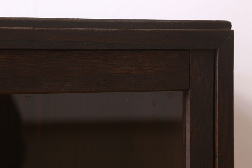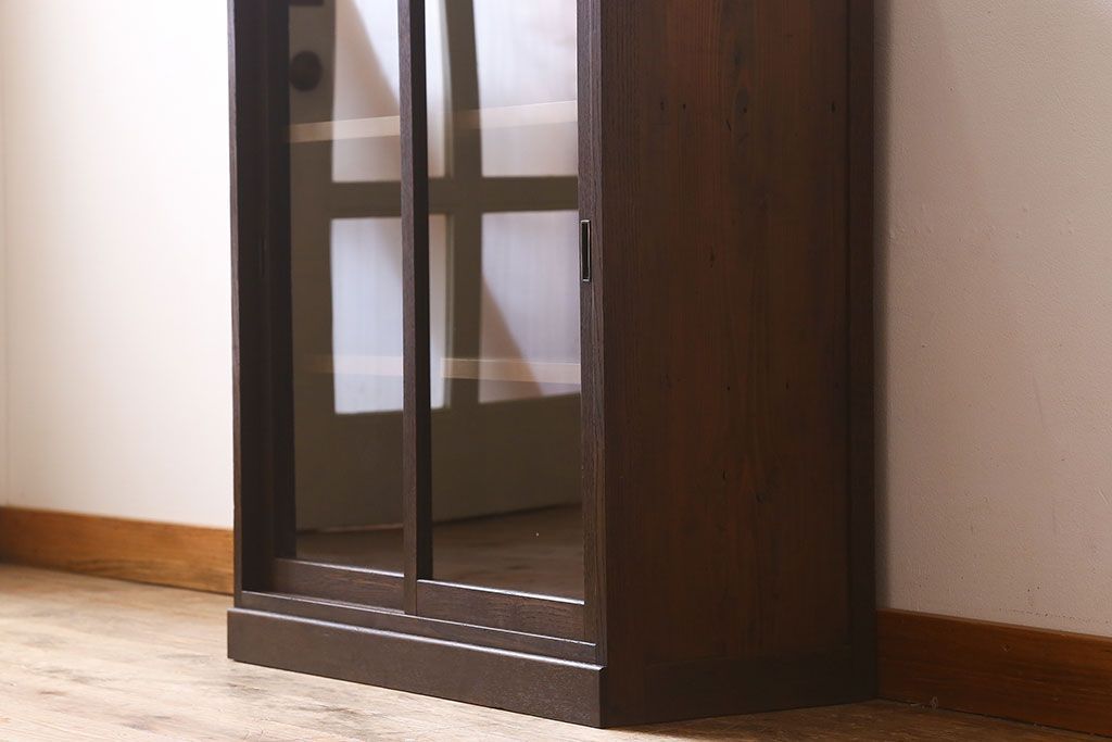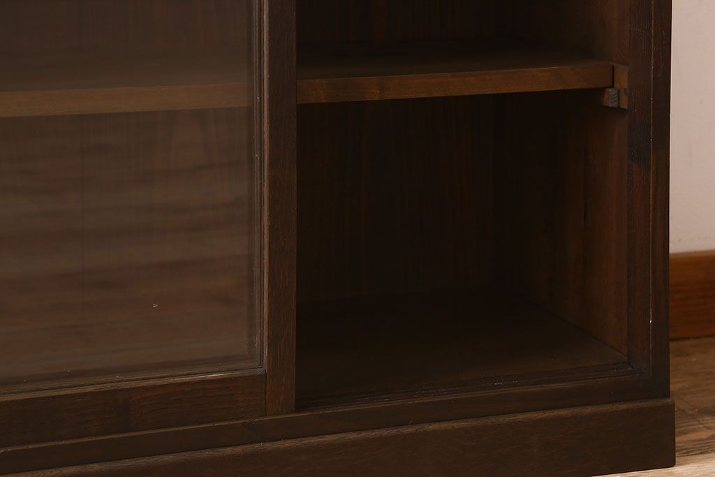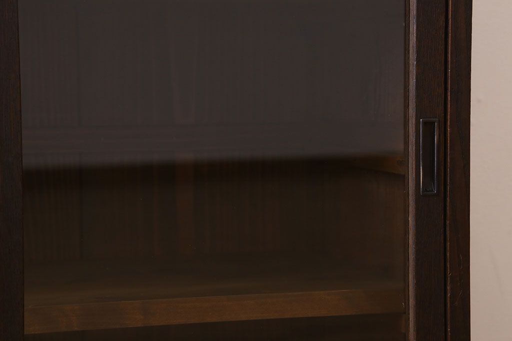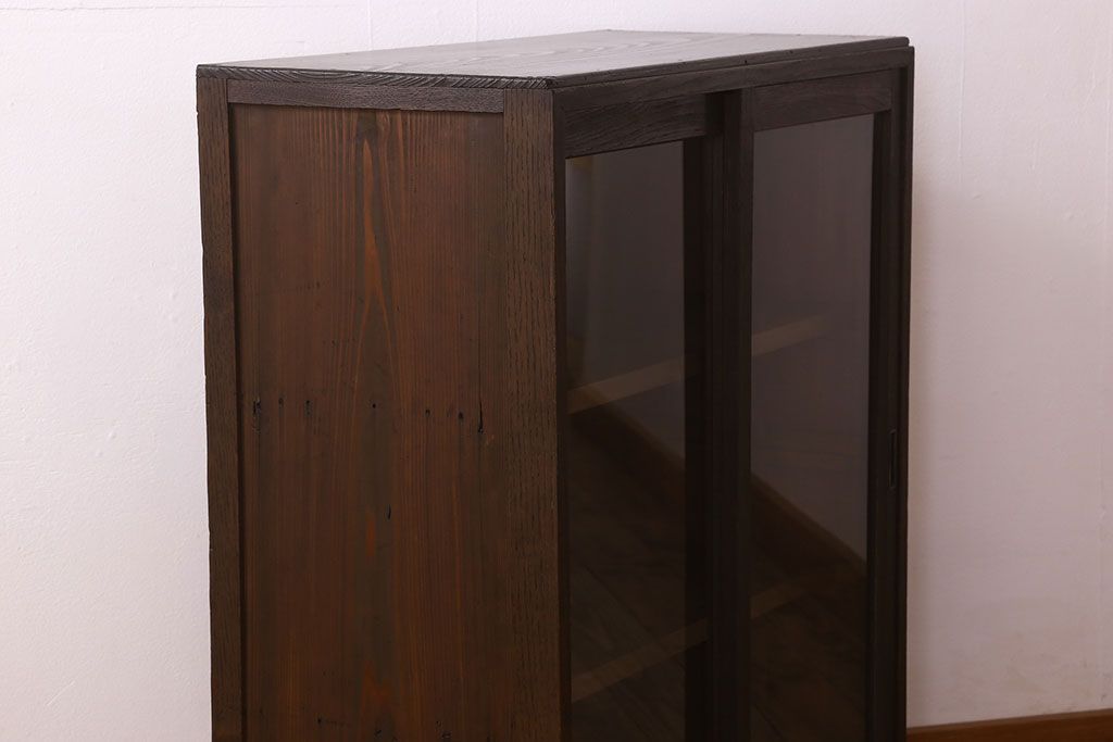 アンティーク家具 クリアガラス引き戸 前面栗材製 古い木のアンティーク収納棚