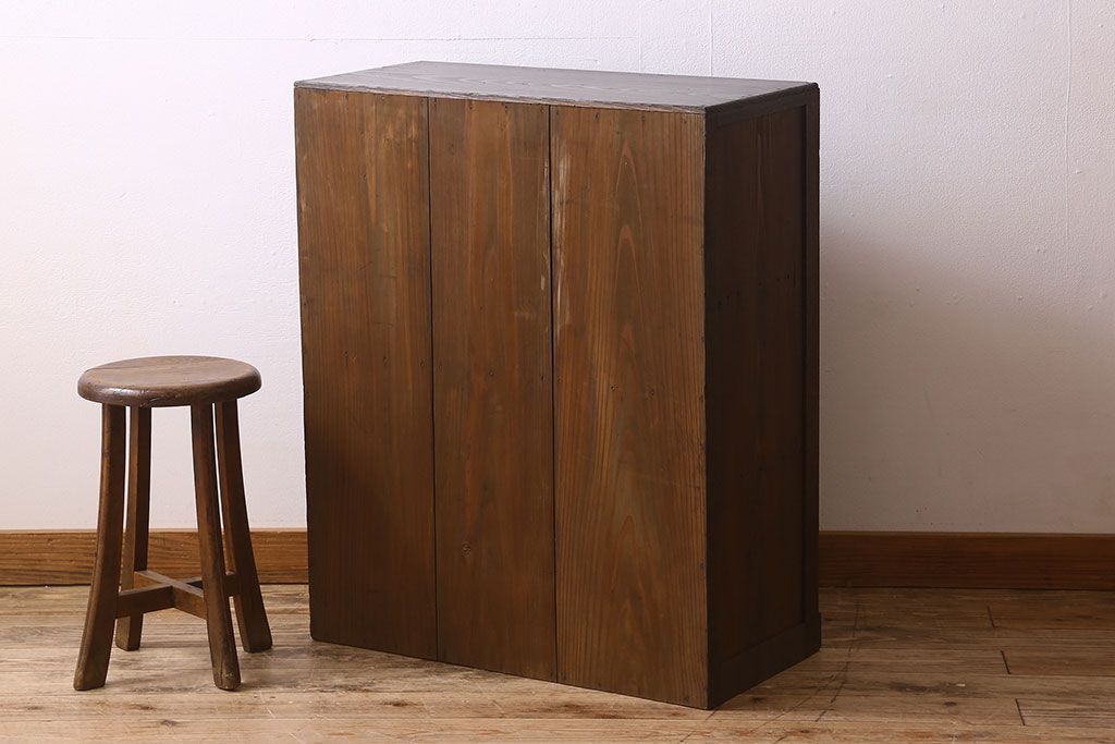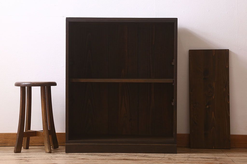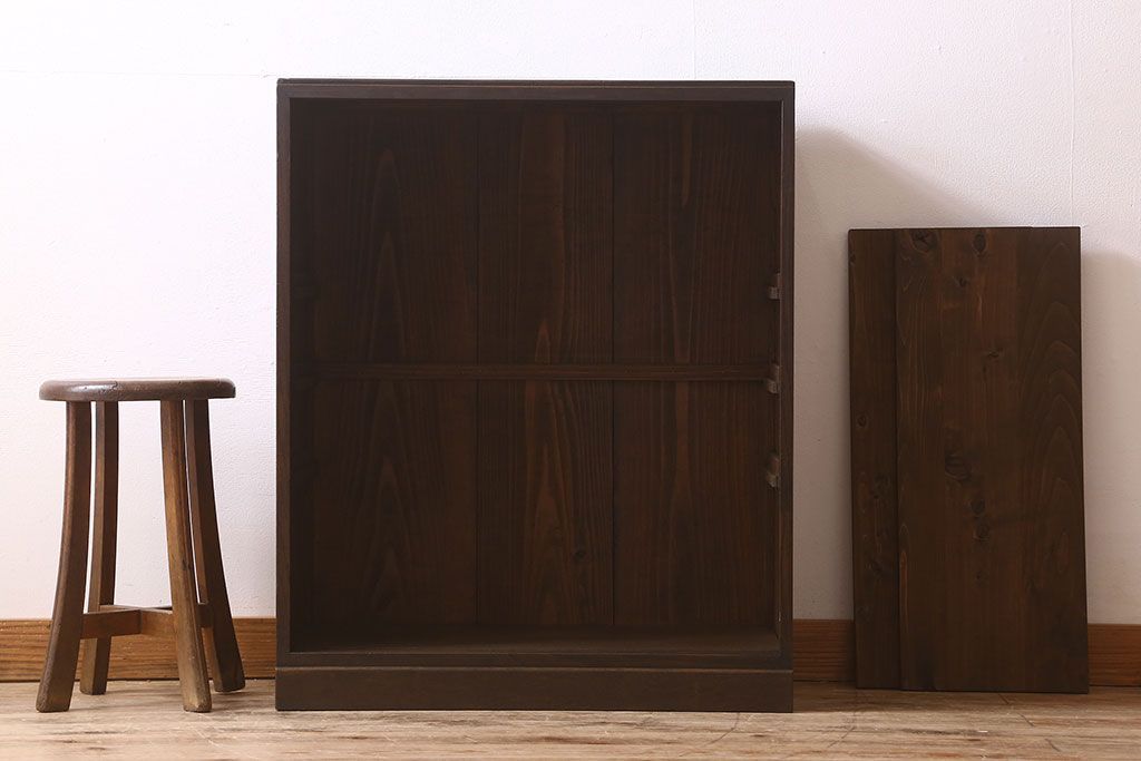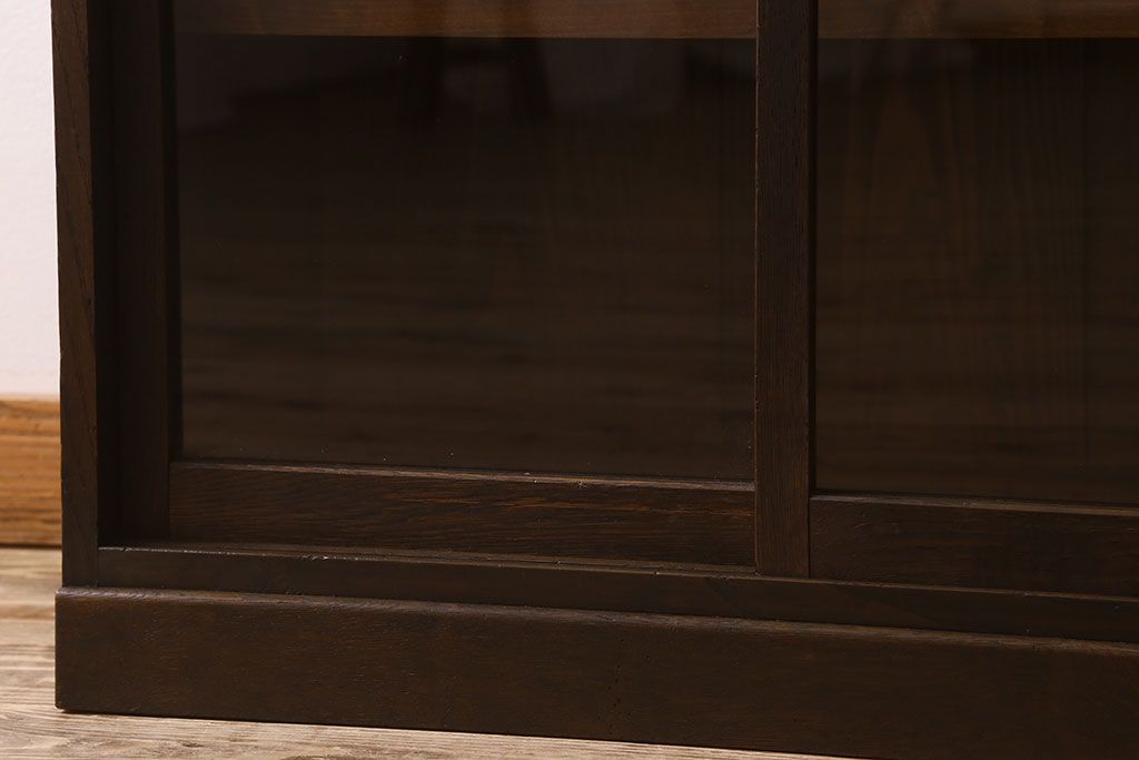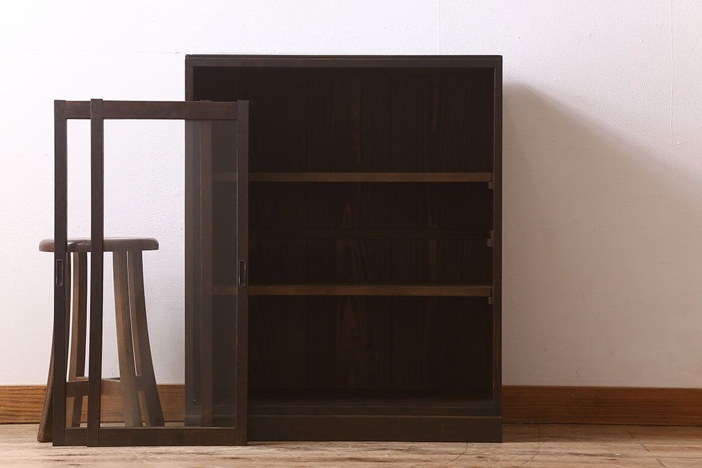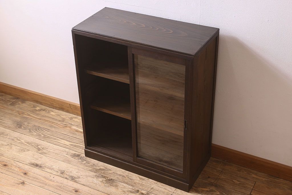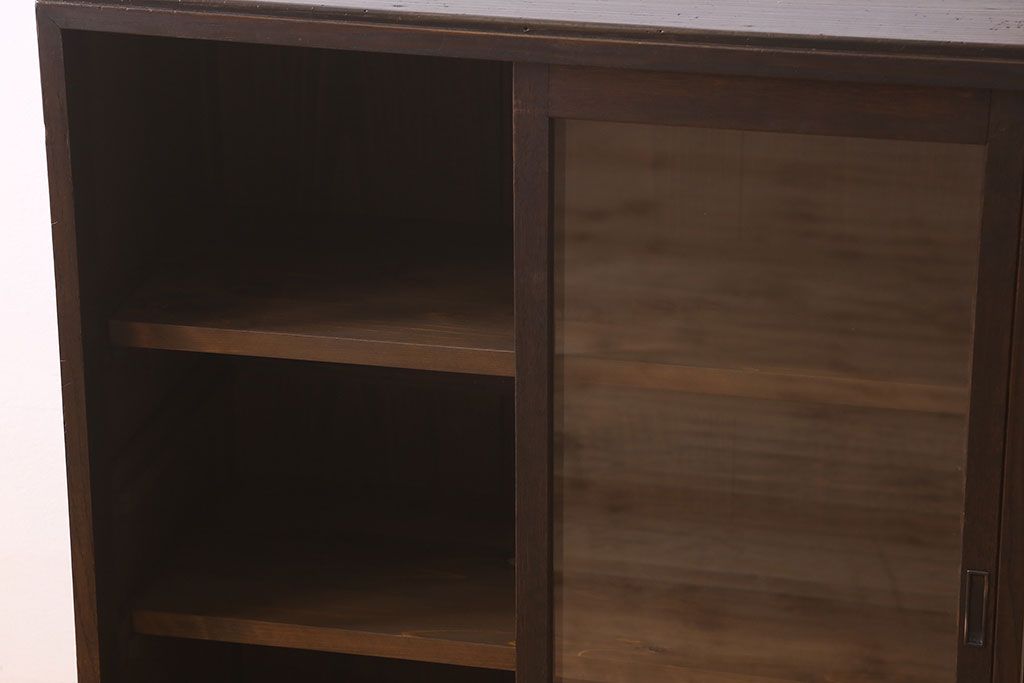 アンティーク家具 クリアガラス引き戸 前面栗材製 古い木のアンティーク収納棚
