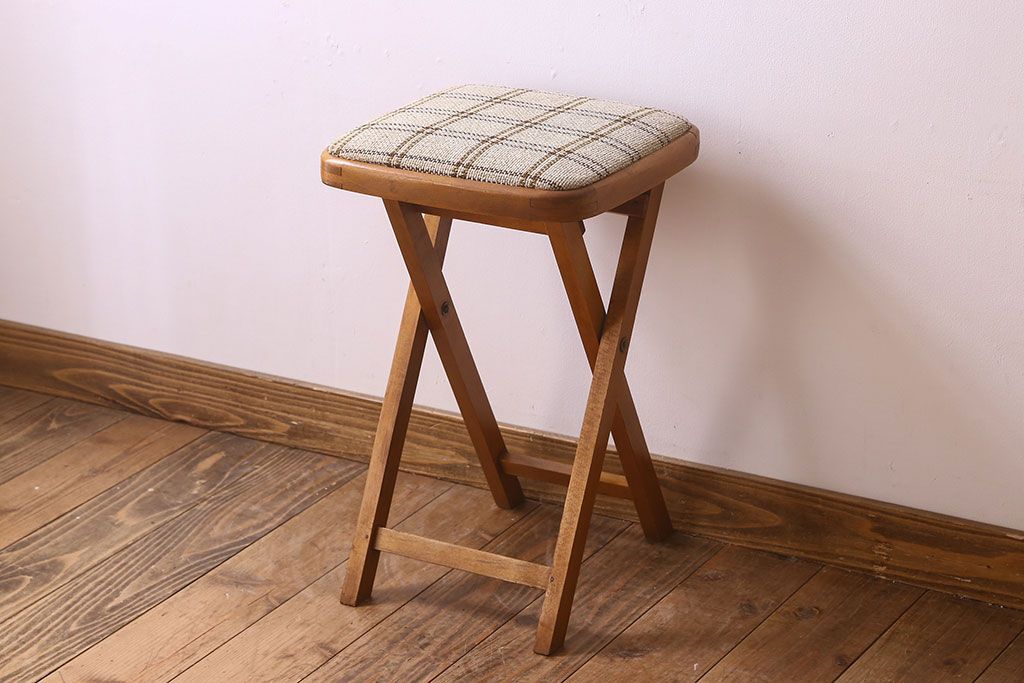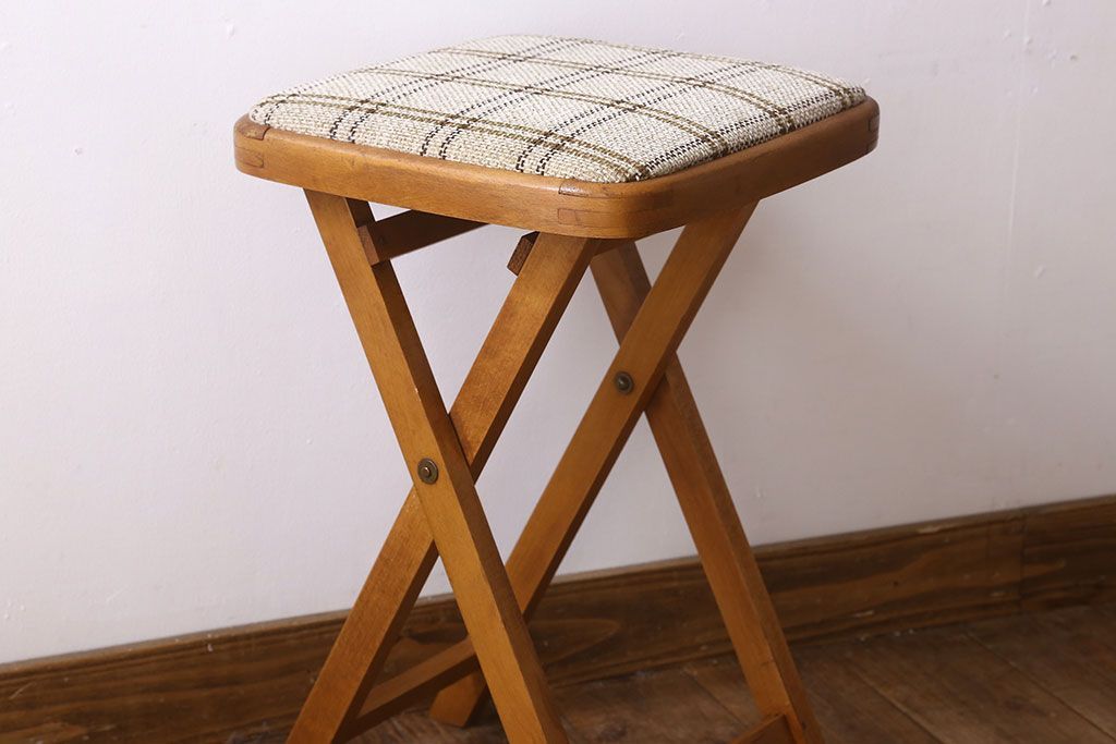 ヴィンテージ家具 英国ビンテージ 1970年 折りたたみ椅子(フォールディングスツール)(1)