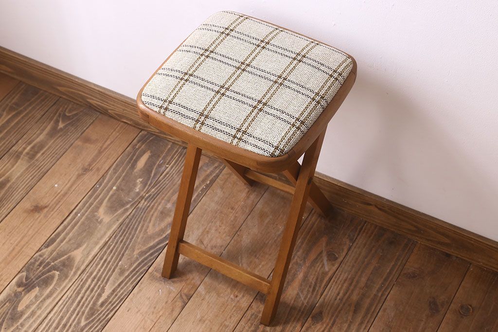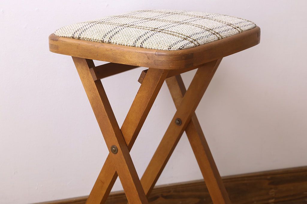 ヴィンテージ家具 英国ビンテージ 1970年 折りたたみ椅子(フォールディングスツール)(3)