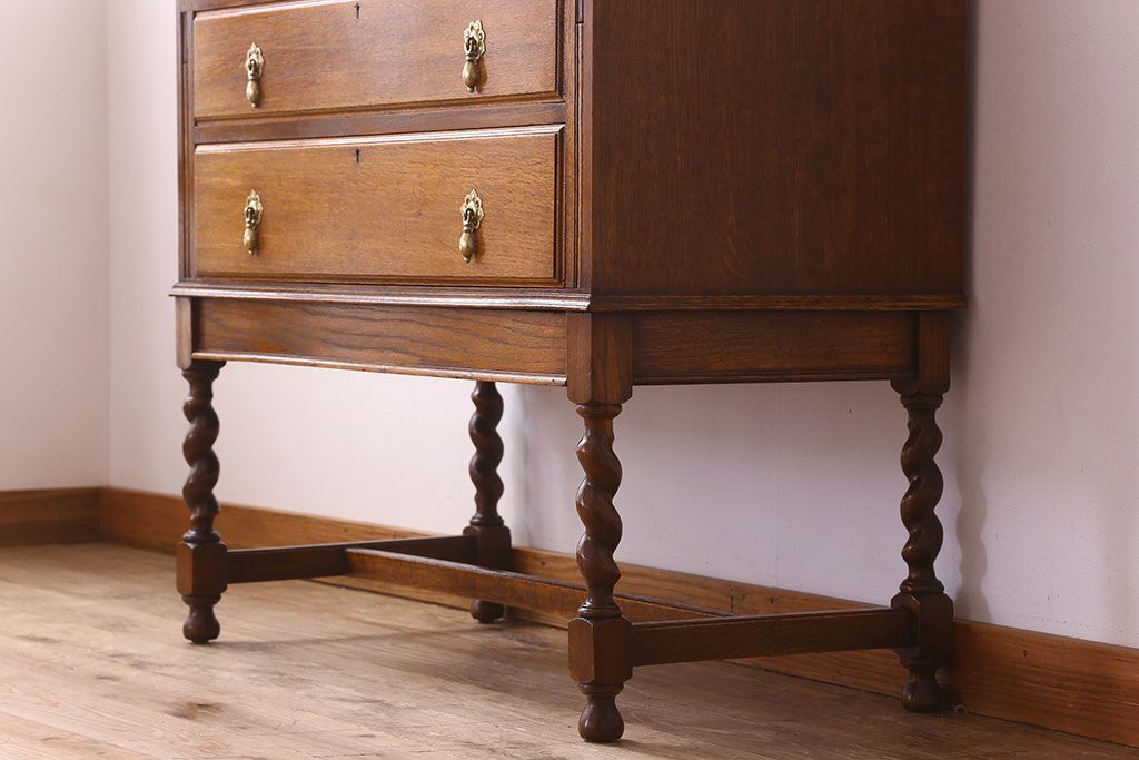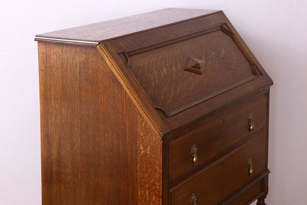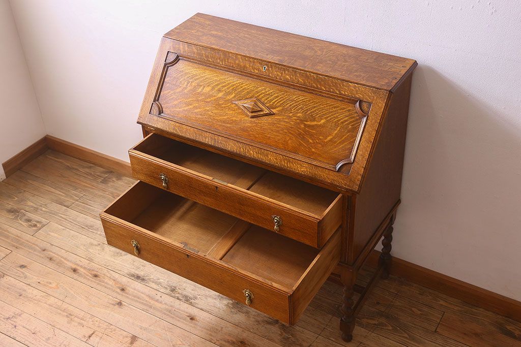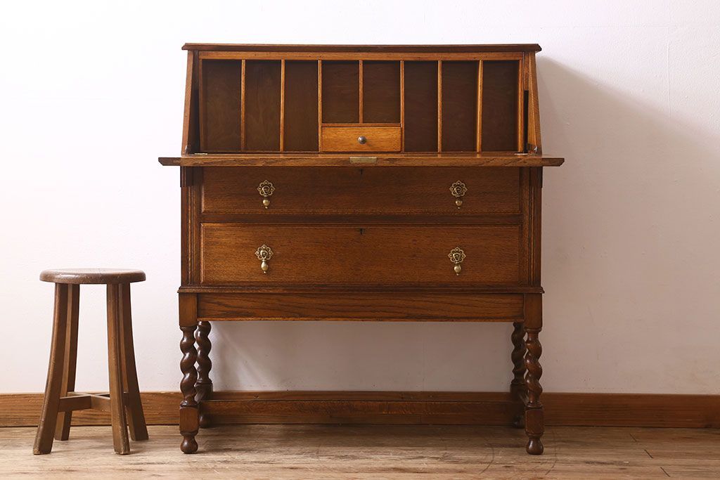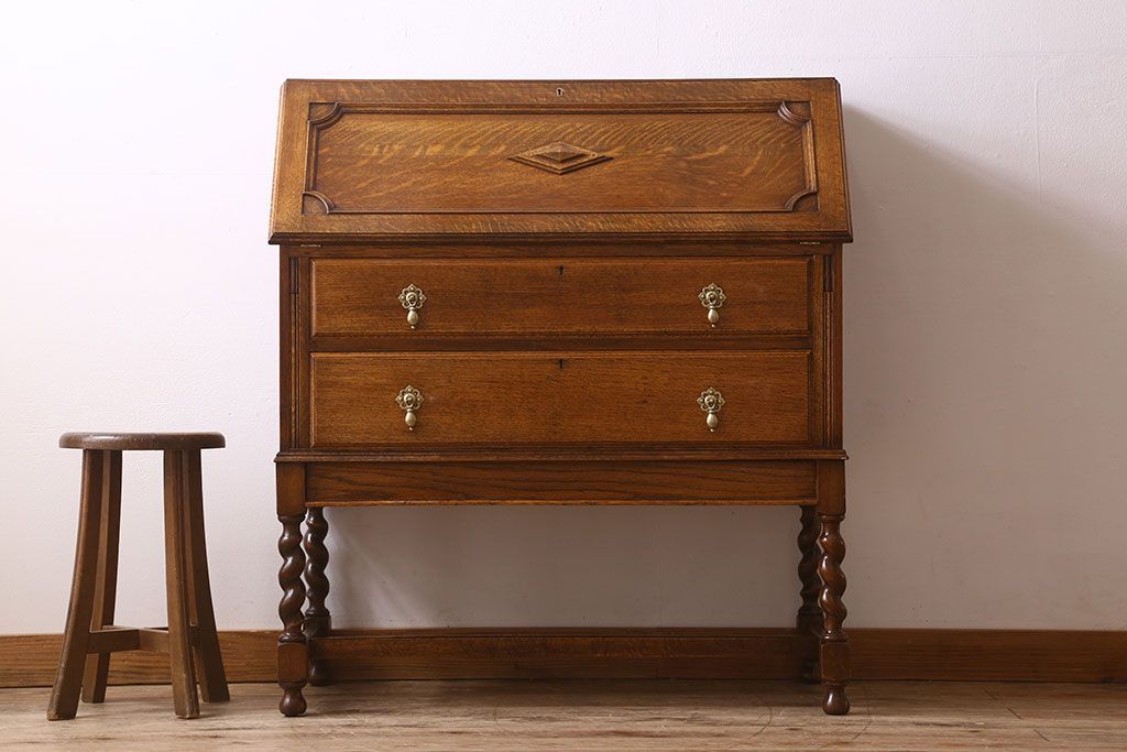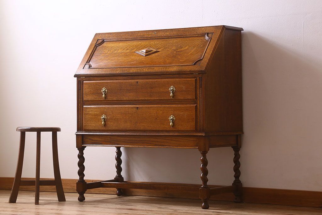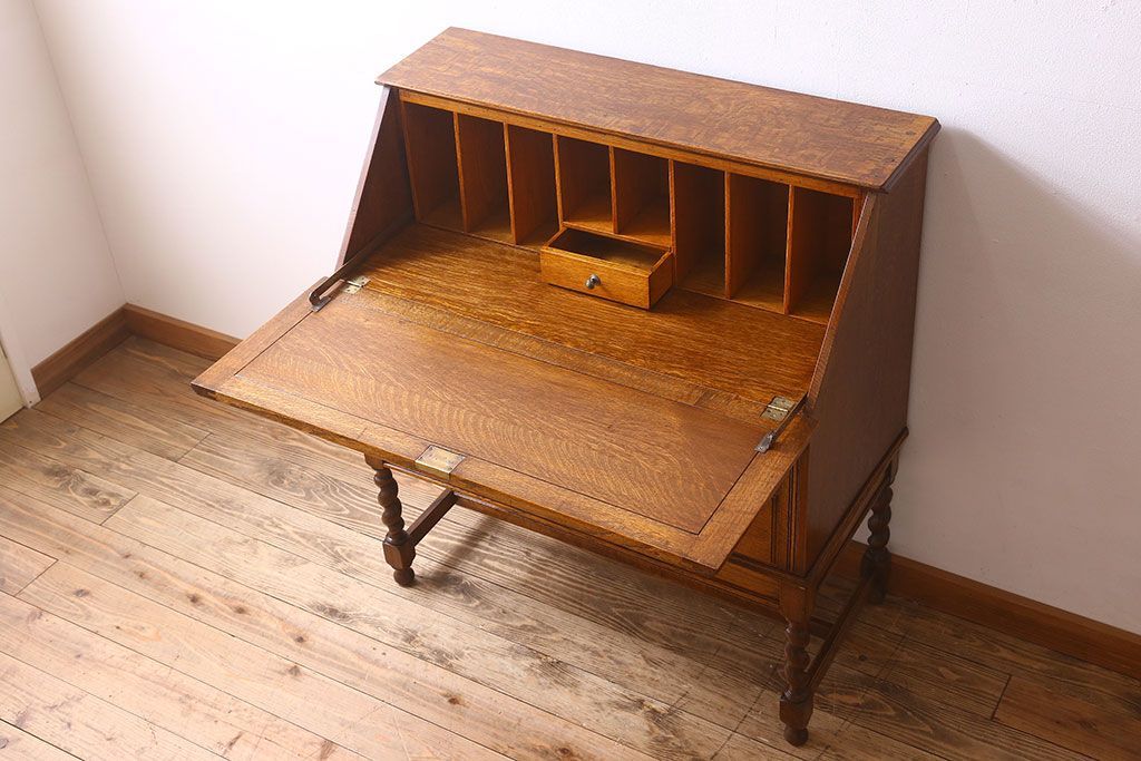 アンティーク家具 イギリスアンティーク ツイストレッグ オーク材 上品なライティングビューロー(2)