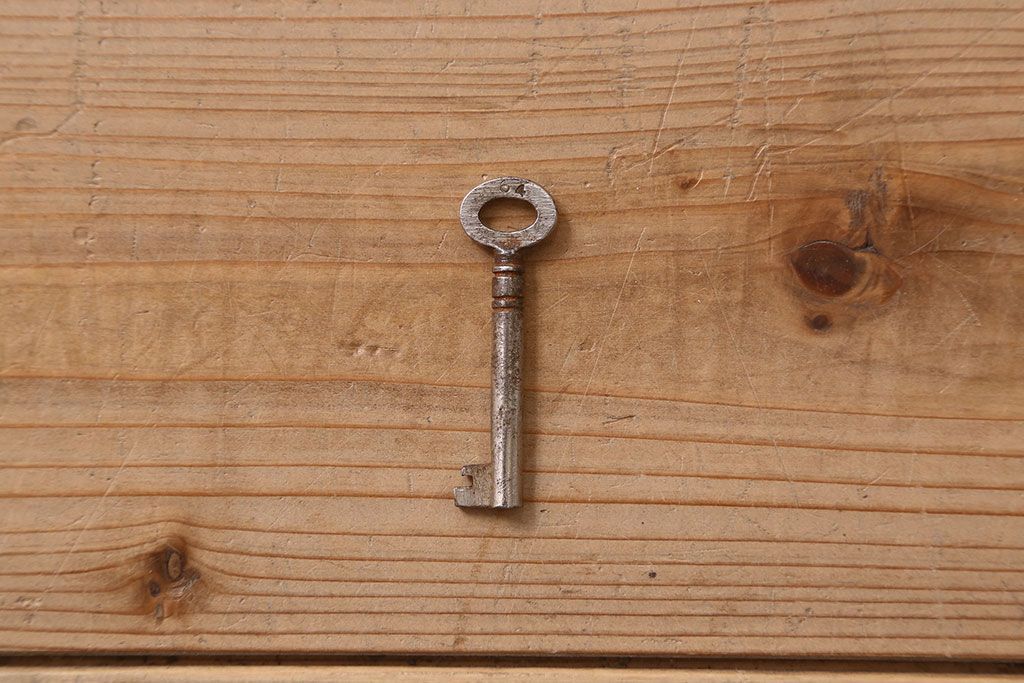 鍵は付属します。画像にありますように、袋に入れお付けします。スムーズに動くように調整していますが、あくまでも古いものや中古品ですので、長期の使用保証は出来かねます。ご購入後不具合が発生した場合は、当店でサポートさせていただきますので、お気軽にご相談くださいませ。