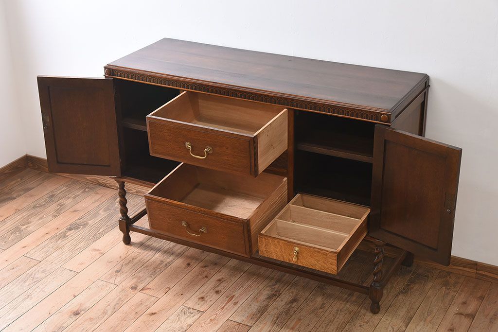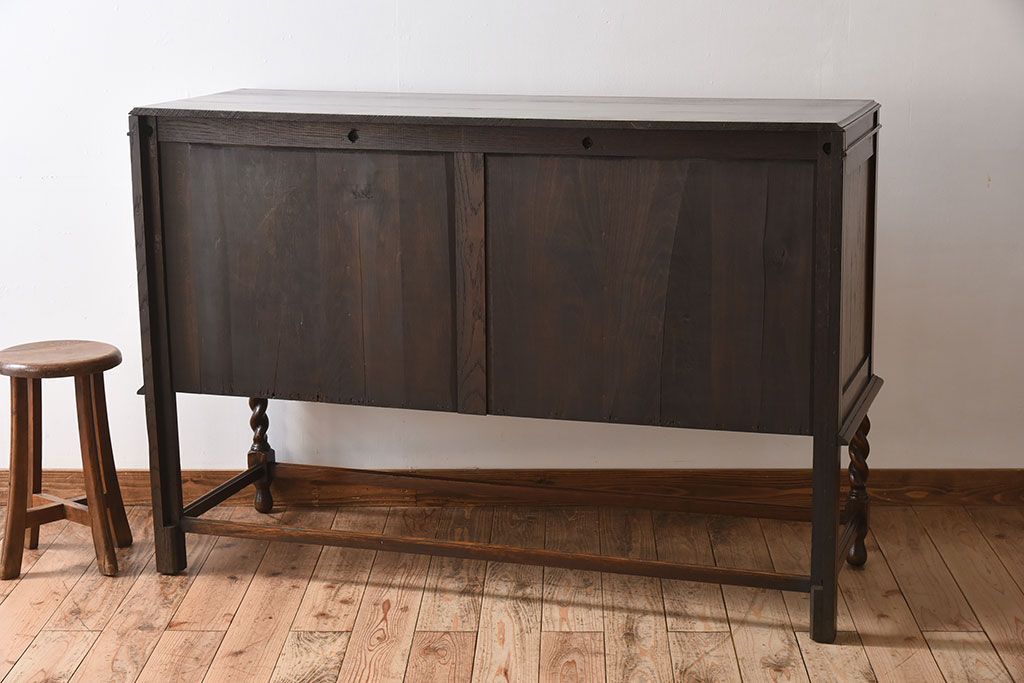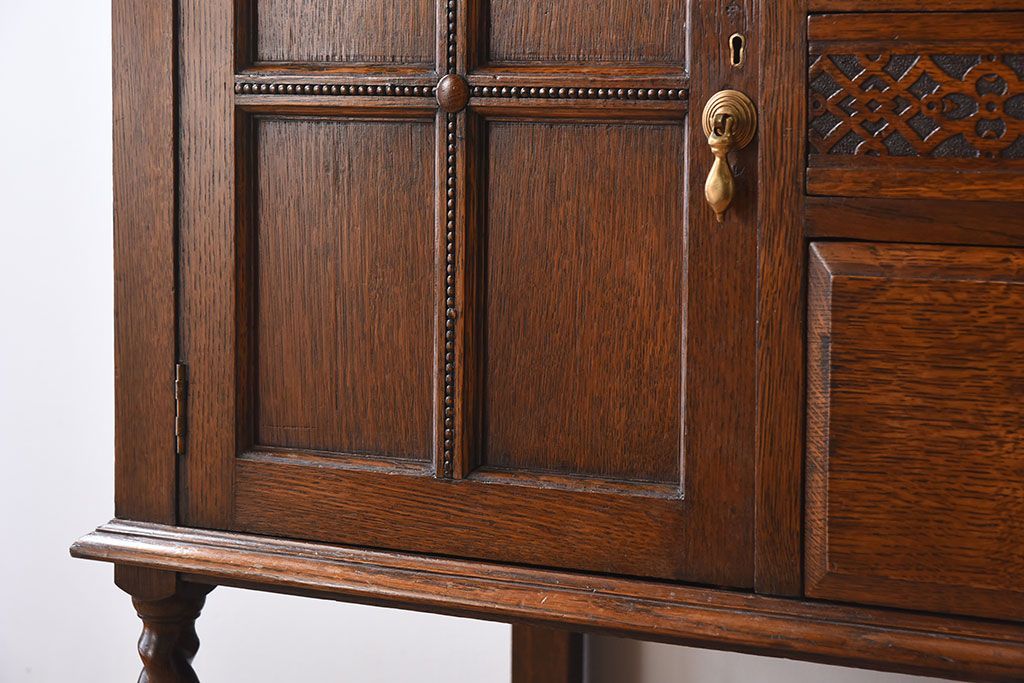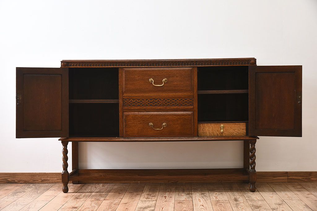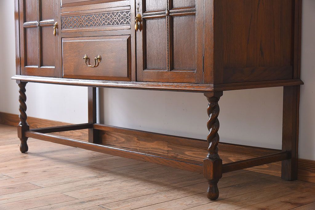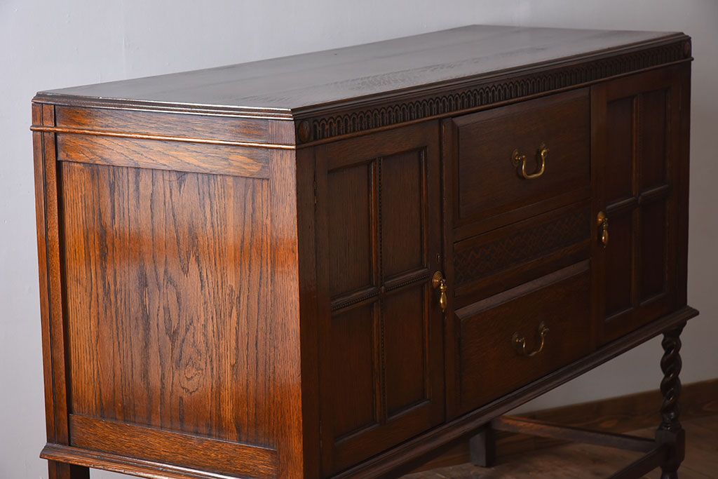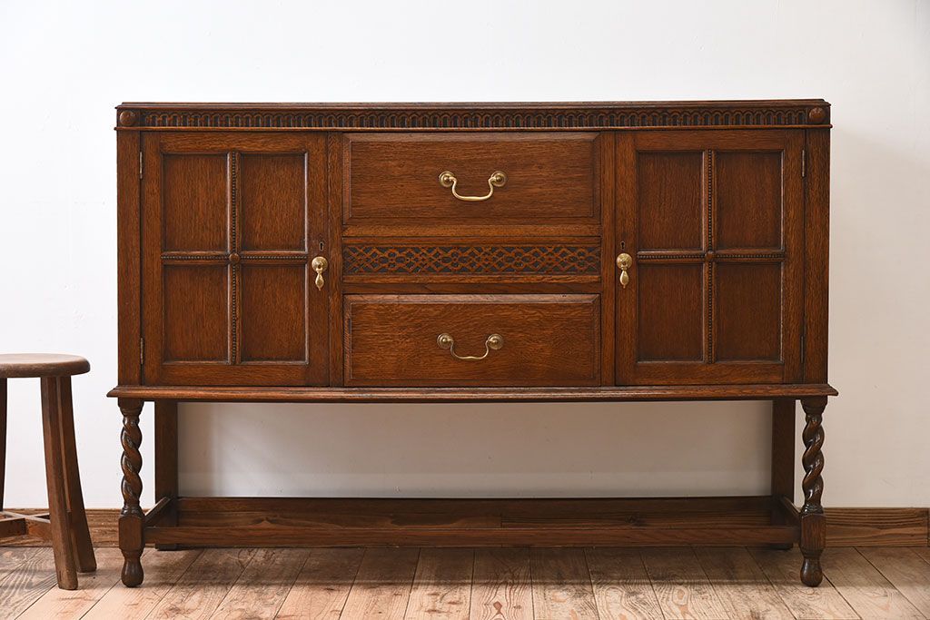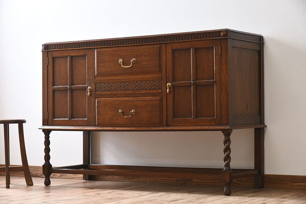アンティーク家具 イギリスアンティーク ツイストレッグ オーク材 上品なサイドキャビネット(サイドボード)