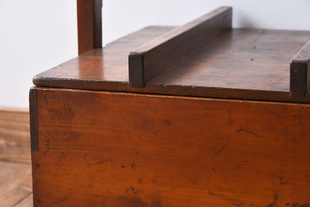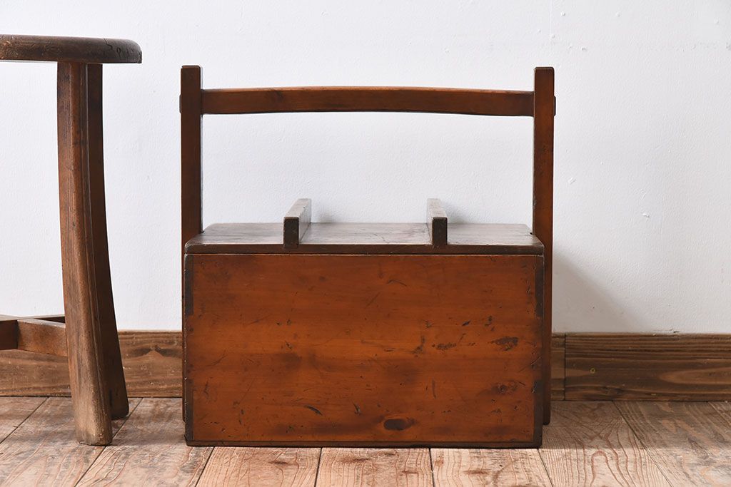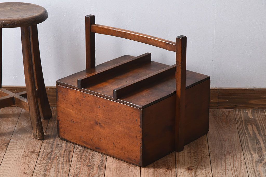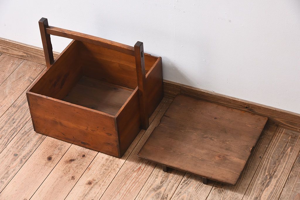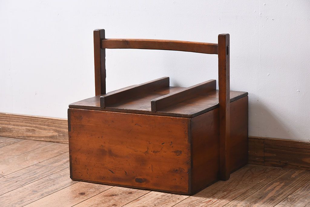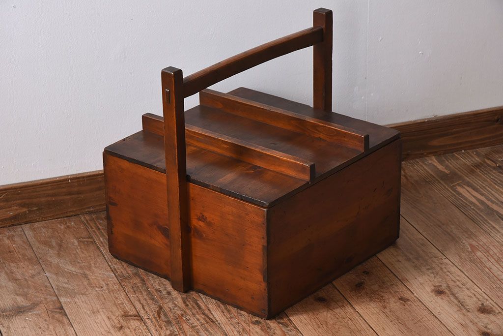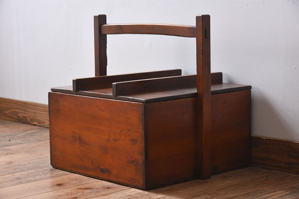 アンティーク雑貨 明治大正期 檜材 古い木製の岡持ち(収納ボックス・木箱)