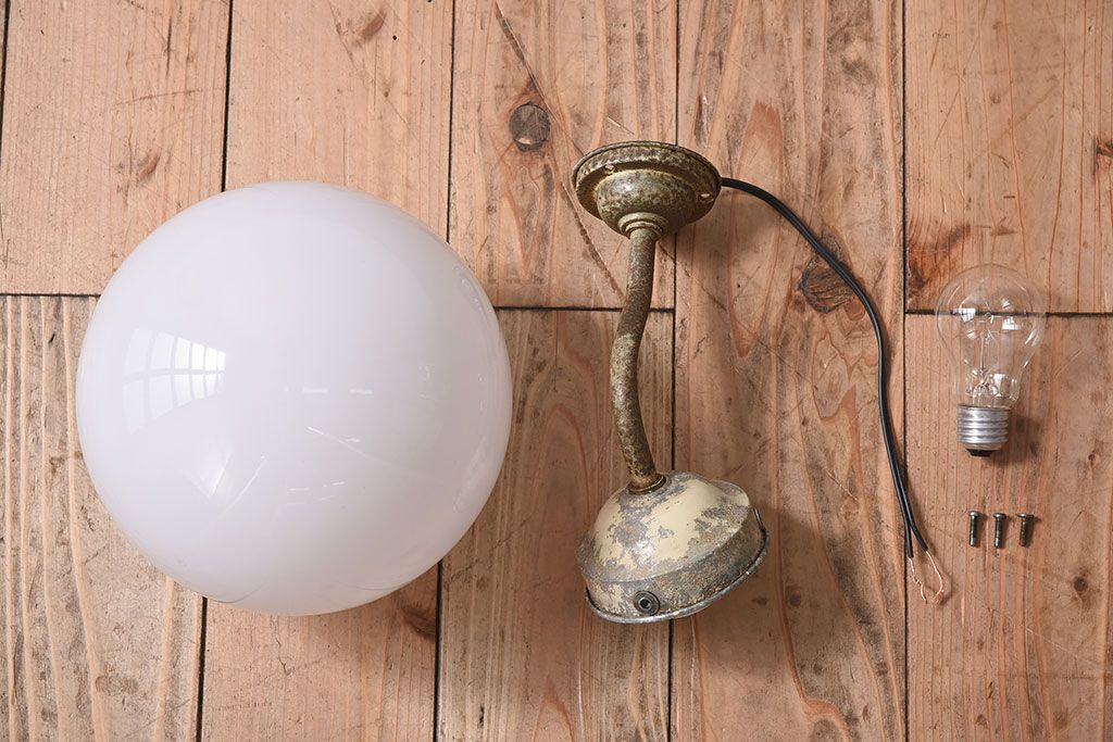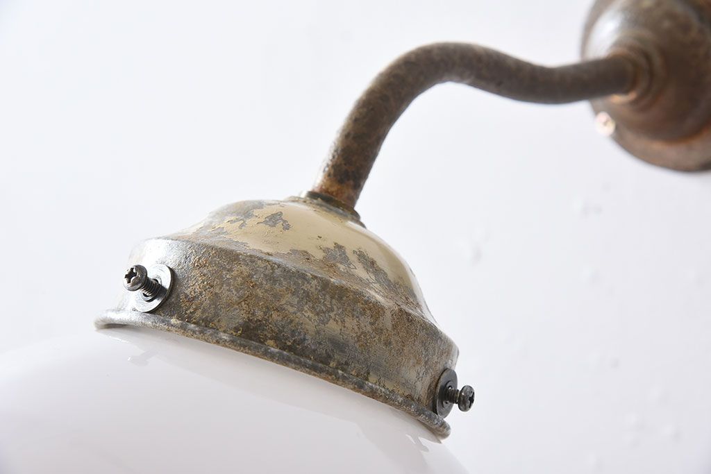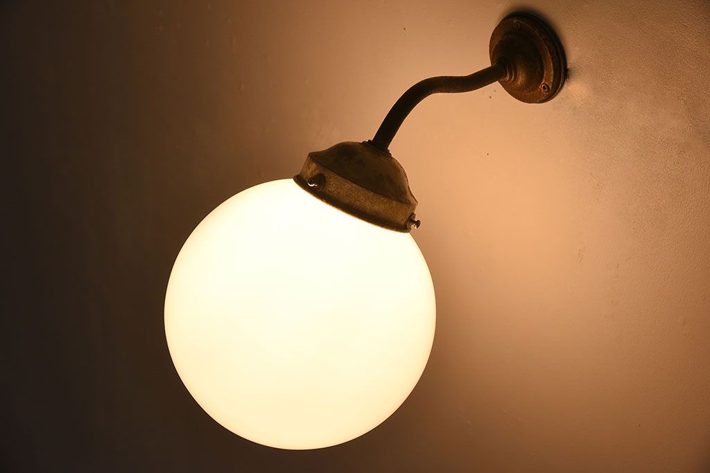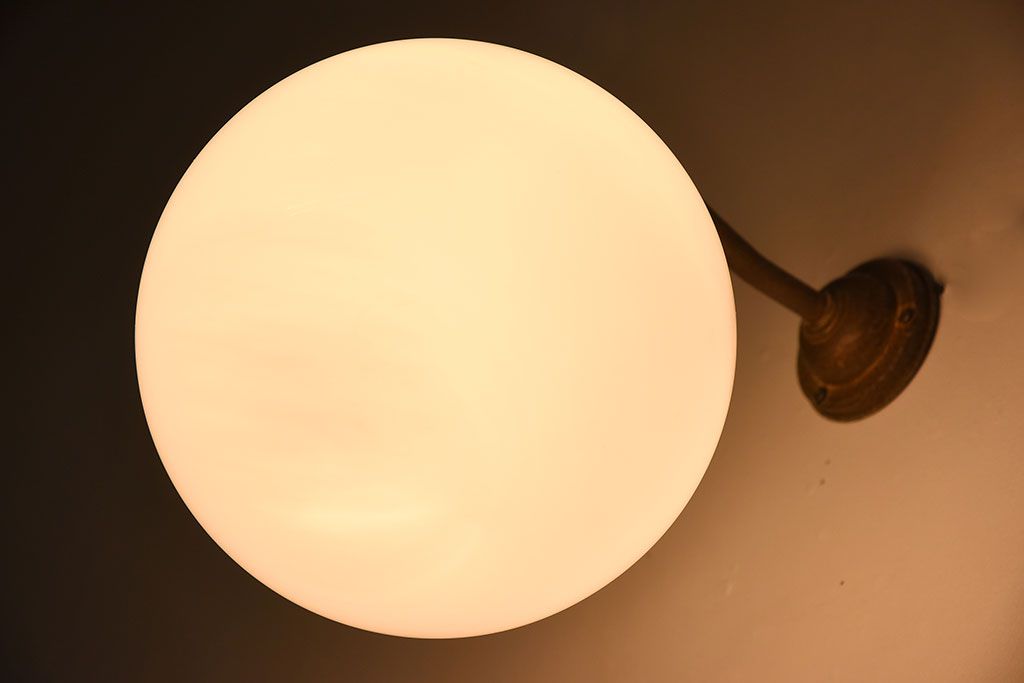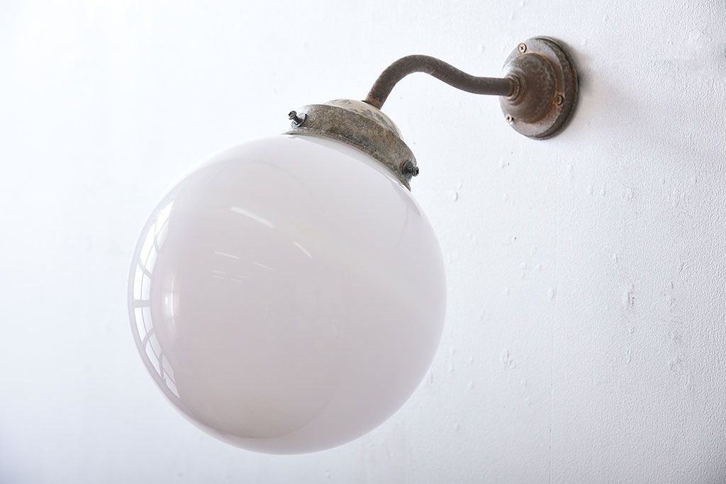 丸いミルクガラスのレトロな壁付け照明(ブラケットライト)です。