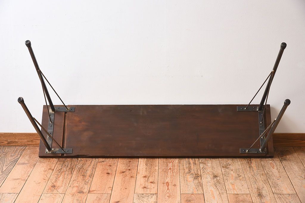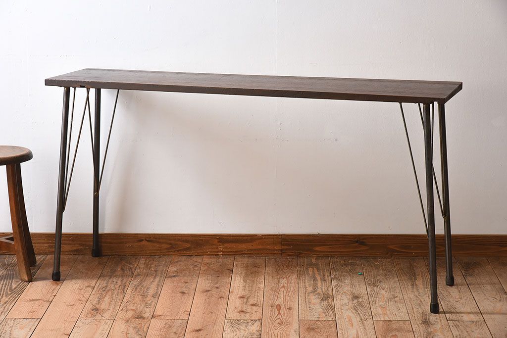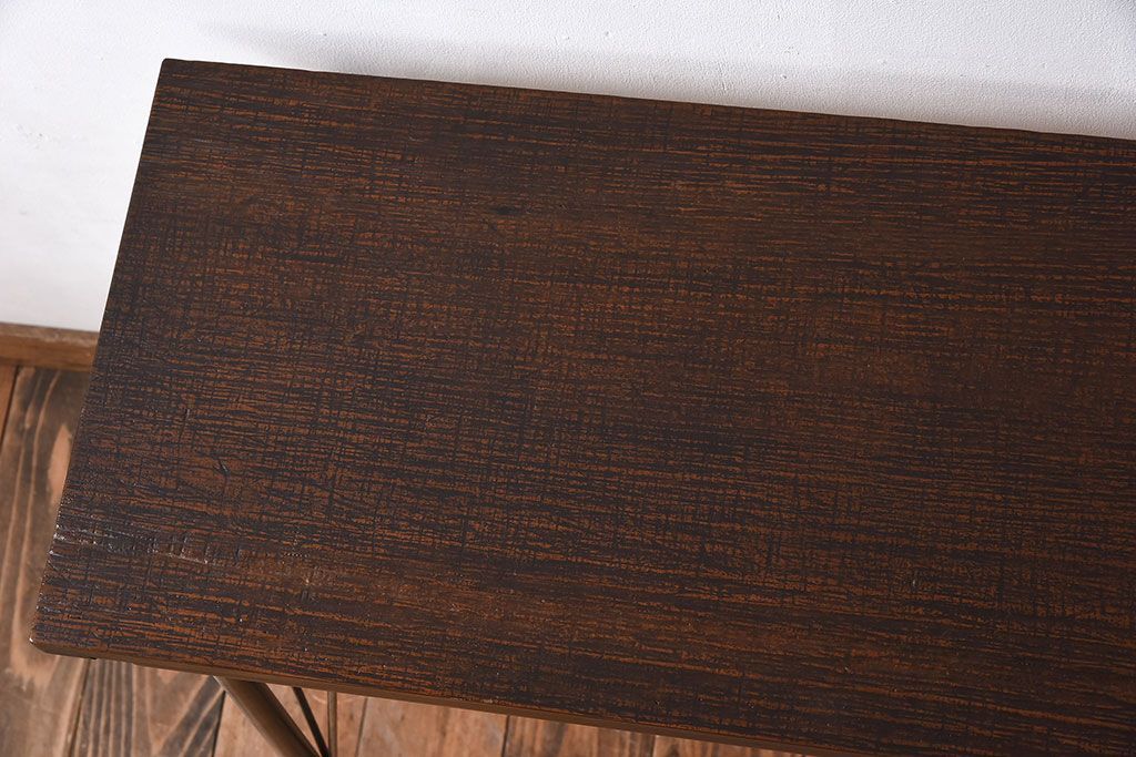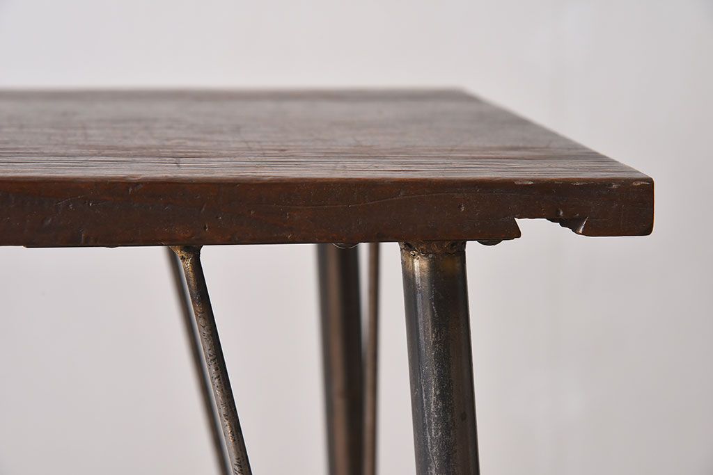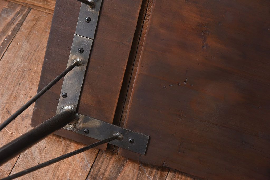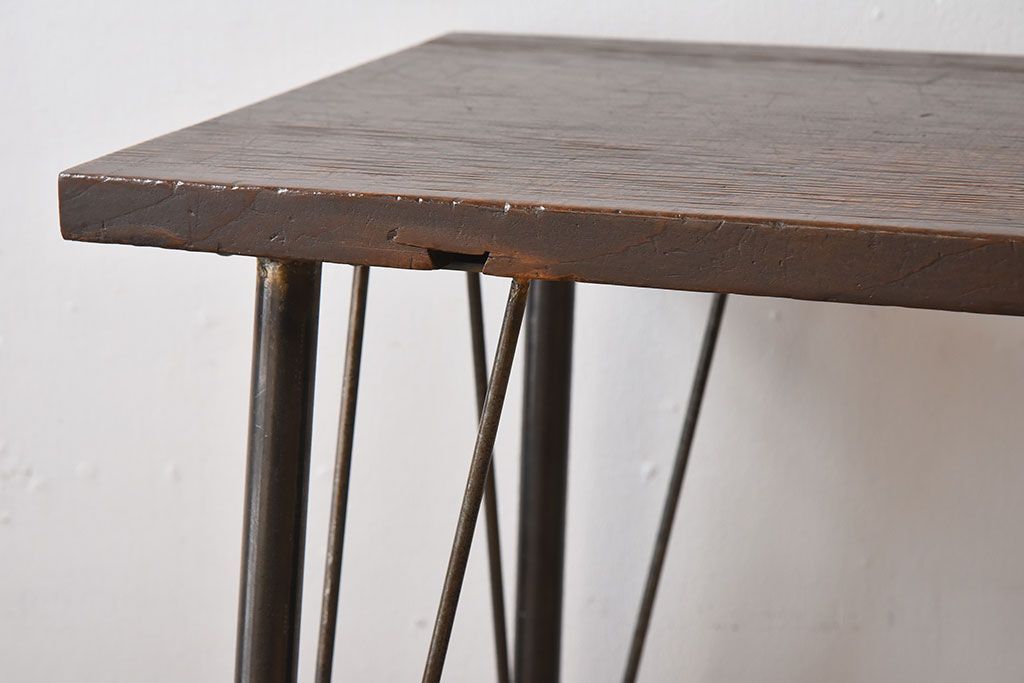 アンティーク家具 古い天板一枚板!朴の木材製 シンプルな鉄脚テーブル