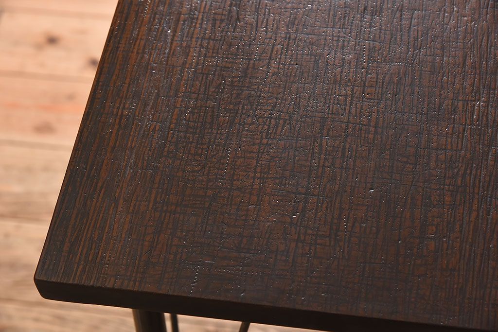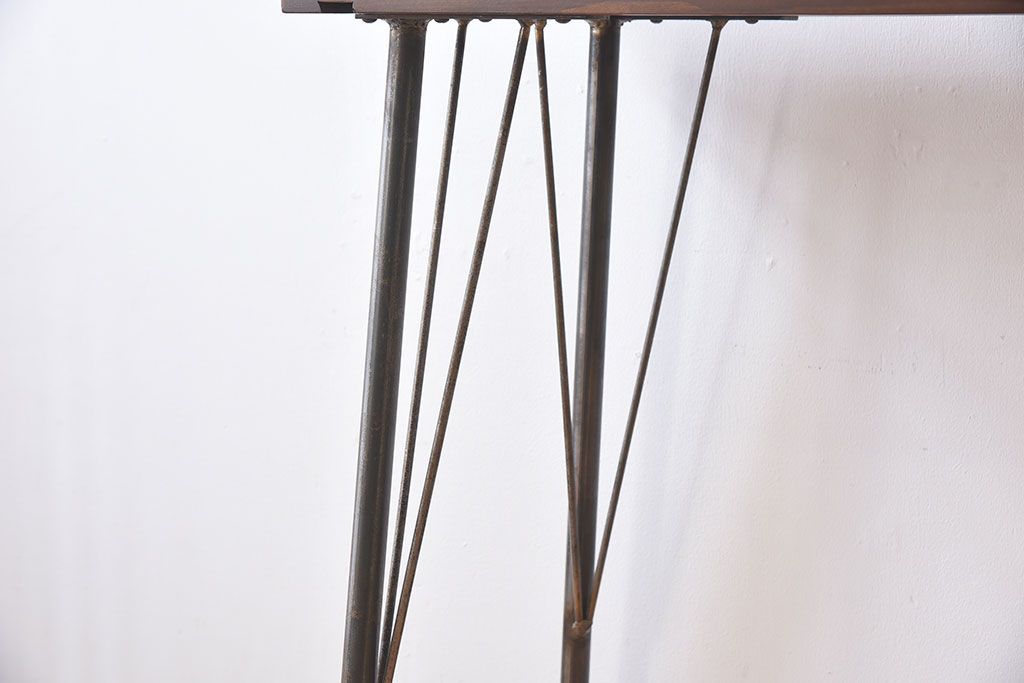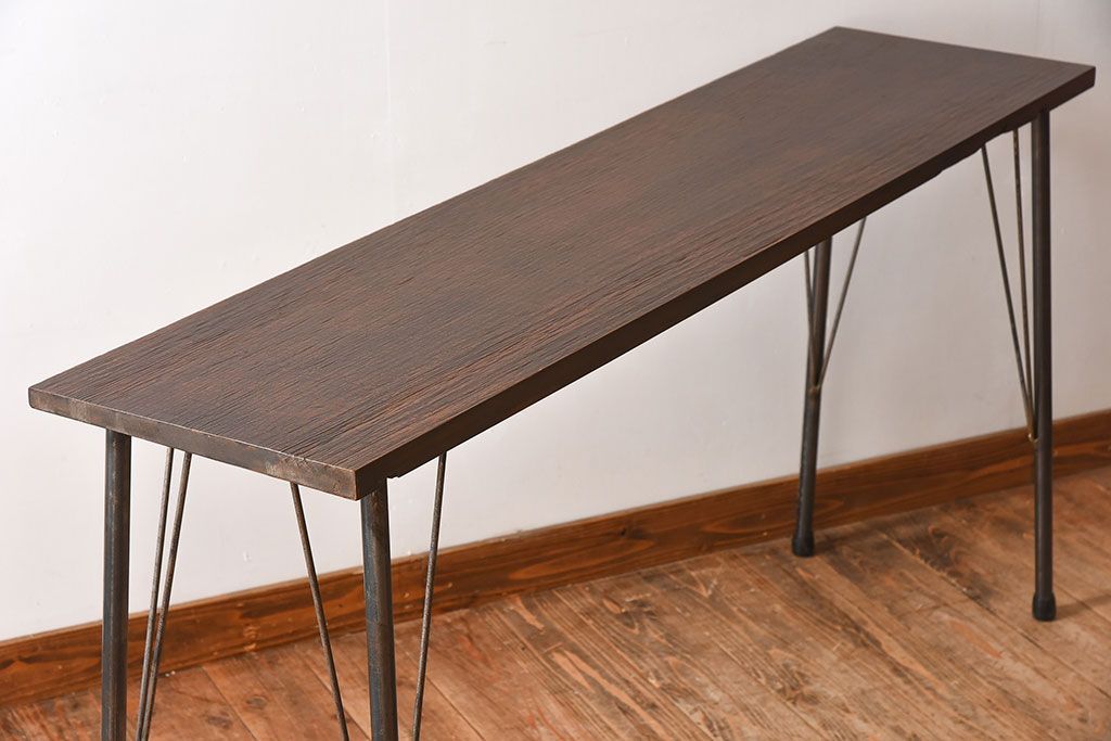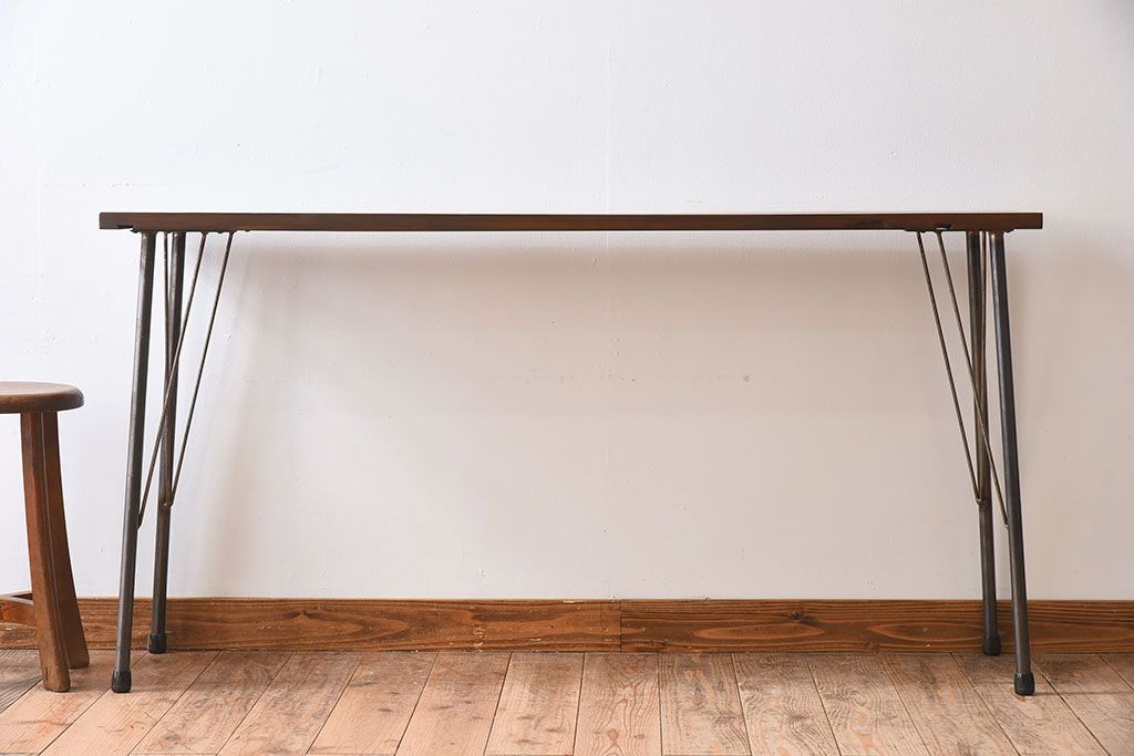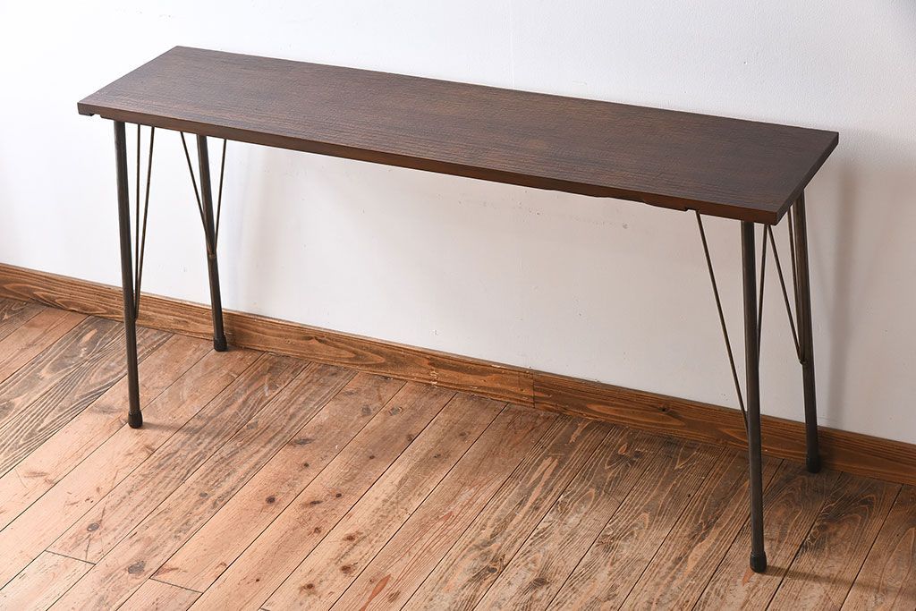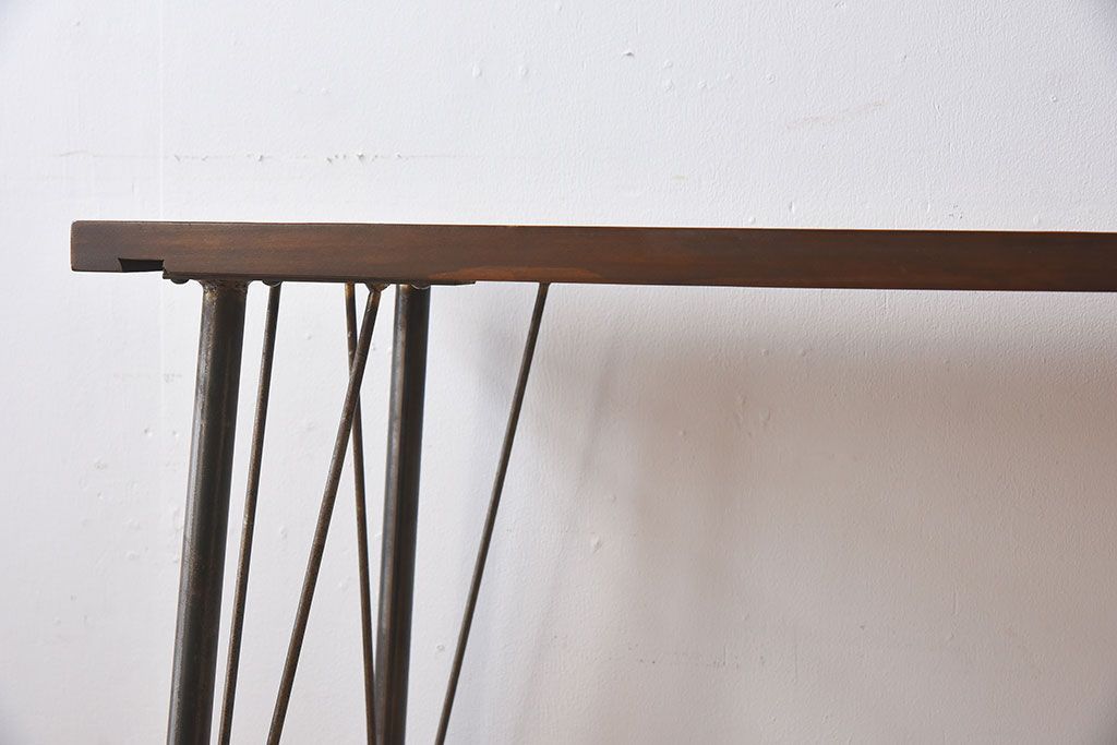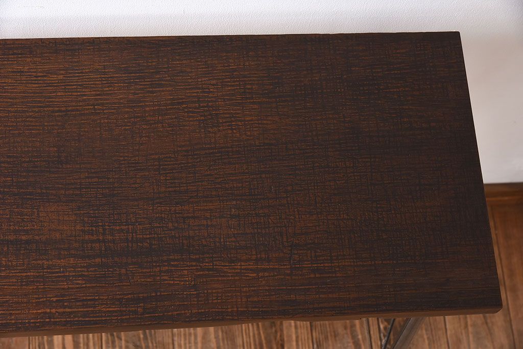 アンティーク家具 古い天板一枚板!朴の木材製 シンプルな鉄脚テーブル