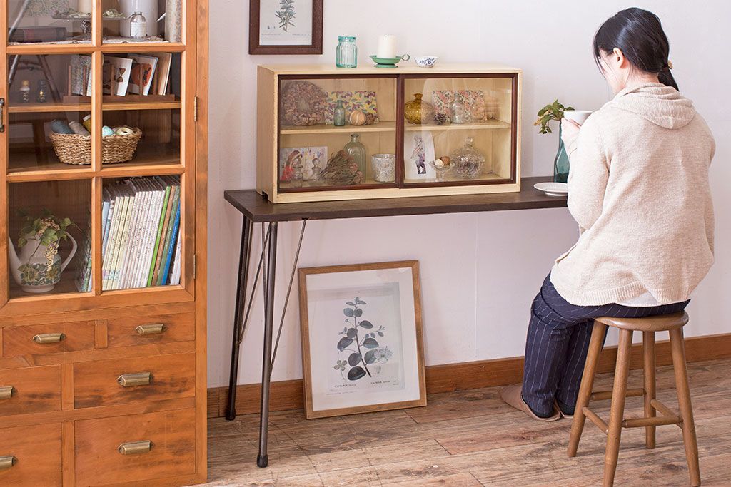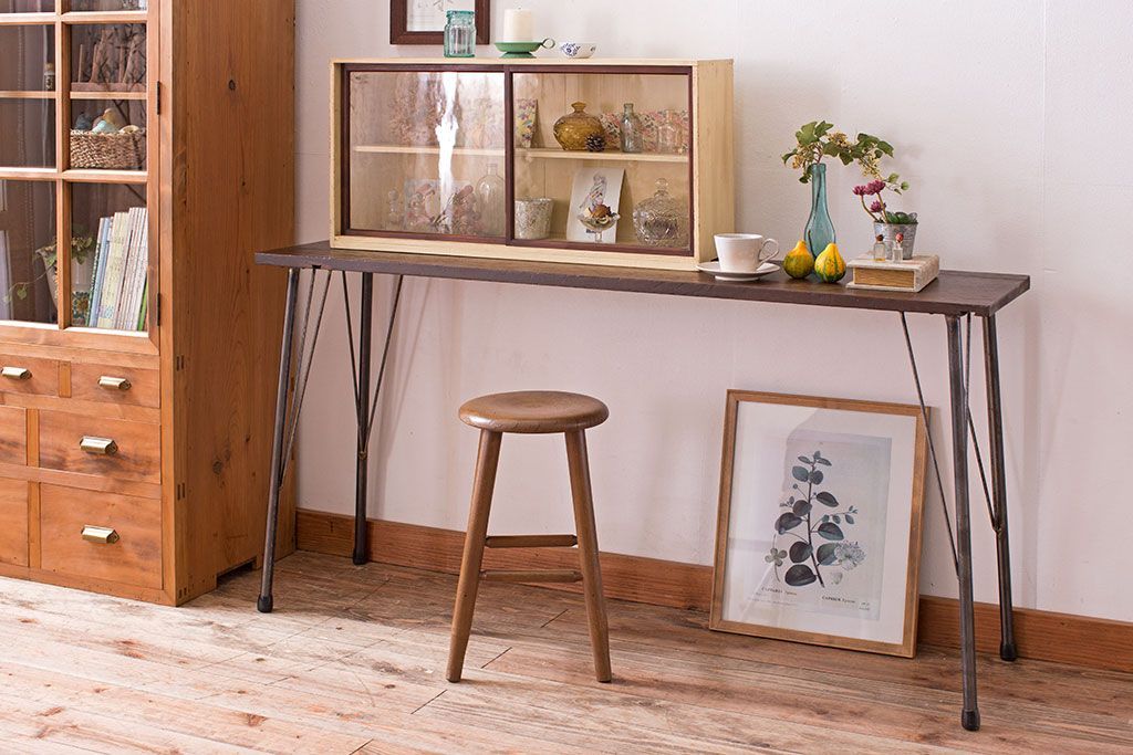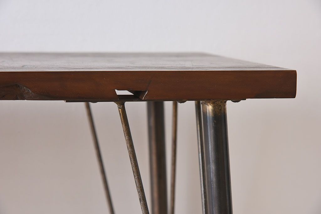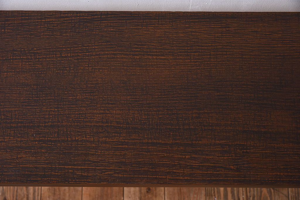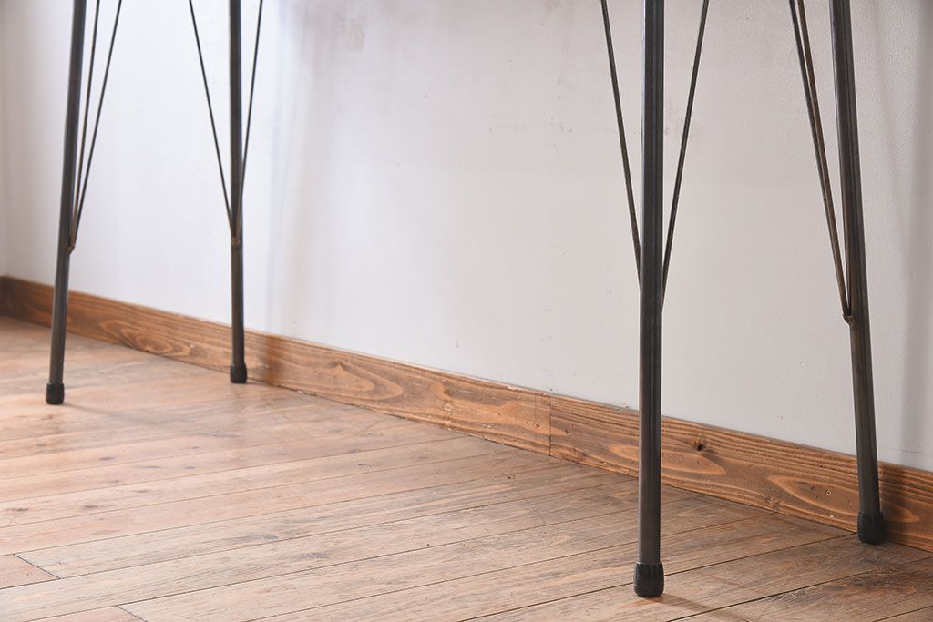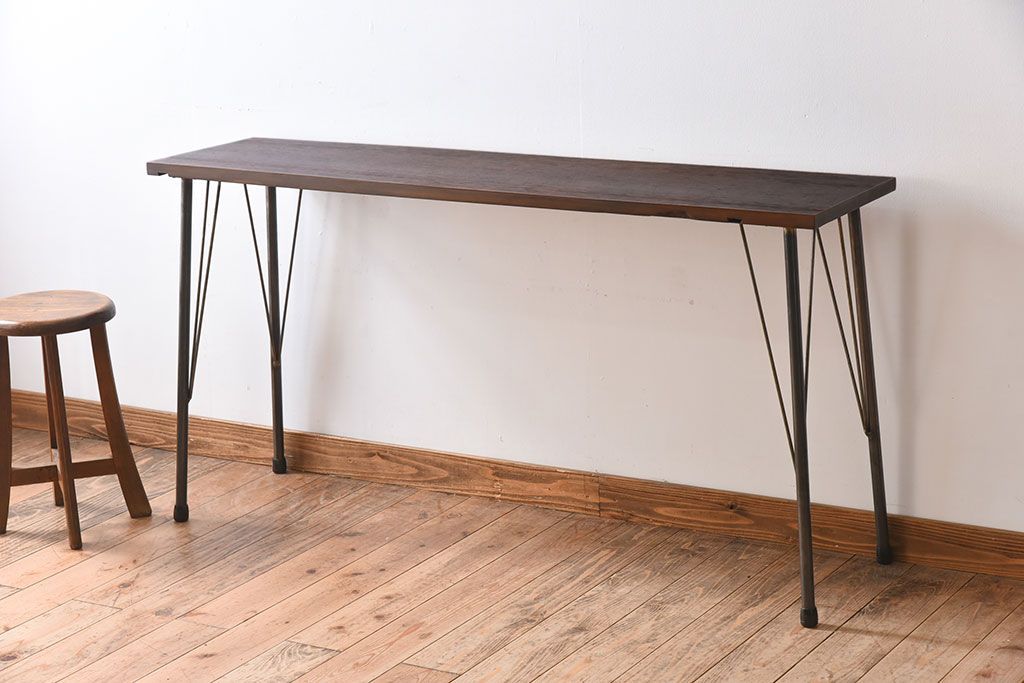 アンティーク家具 古い天板一枚板!朴の木材製 シンプルな鉄脚テーブル