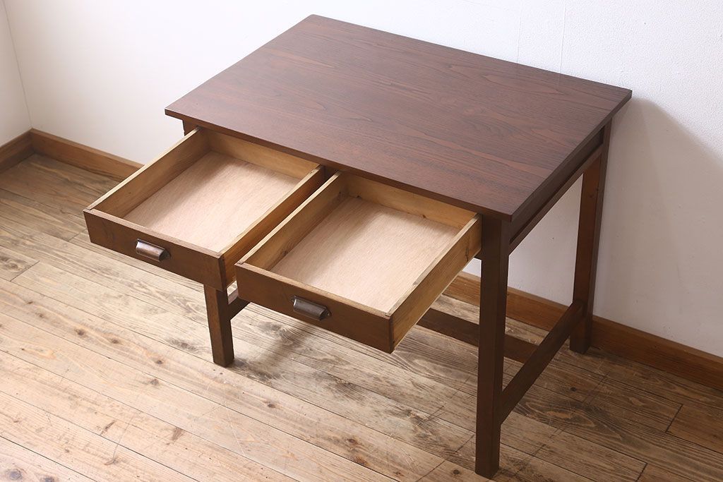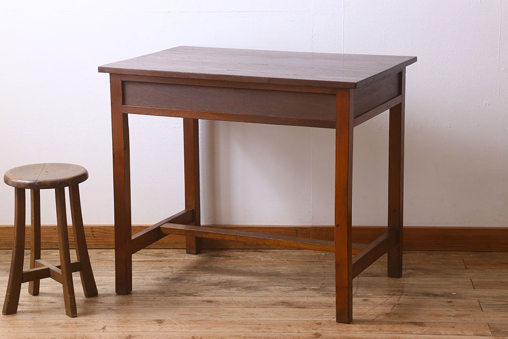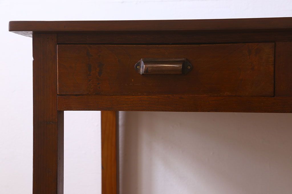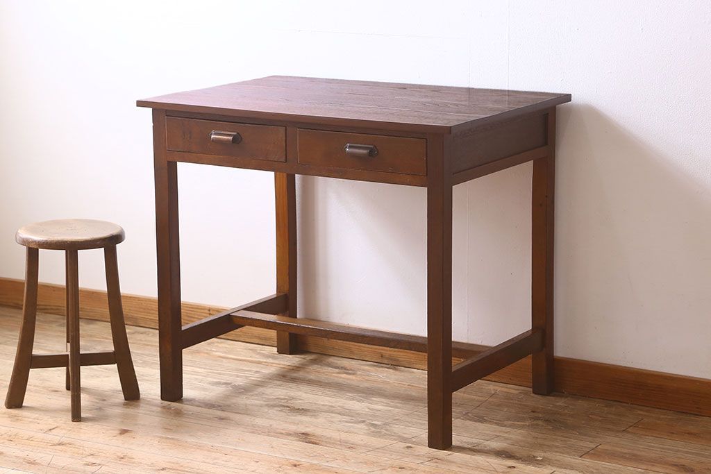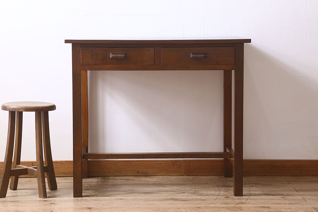 アンティーク雑貨 昭和レトロ 引き出し2杯付き!古い栗材製のサイドテーブル(平机)