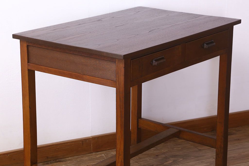 ラフジュ工房> デスク> ワークデスク > アンティーク雑貨 昭和レトロ 引き出し2杯付き!古い栗材製のサイドテーブル(平机)