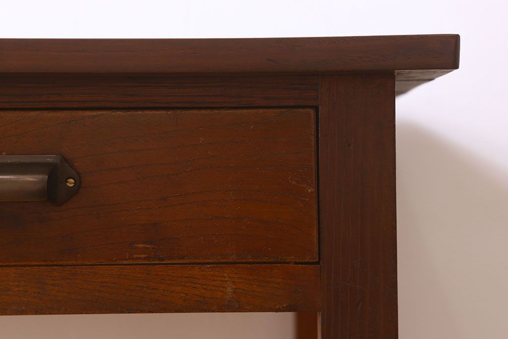 ラフジュ工房> デスク> 平机 > アンティーク雑貨 昭和レトロ 引き出し2杯付き!古い栗材製のサイドテーブル(平机)