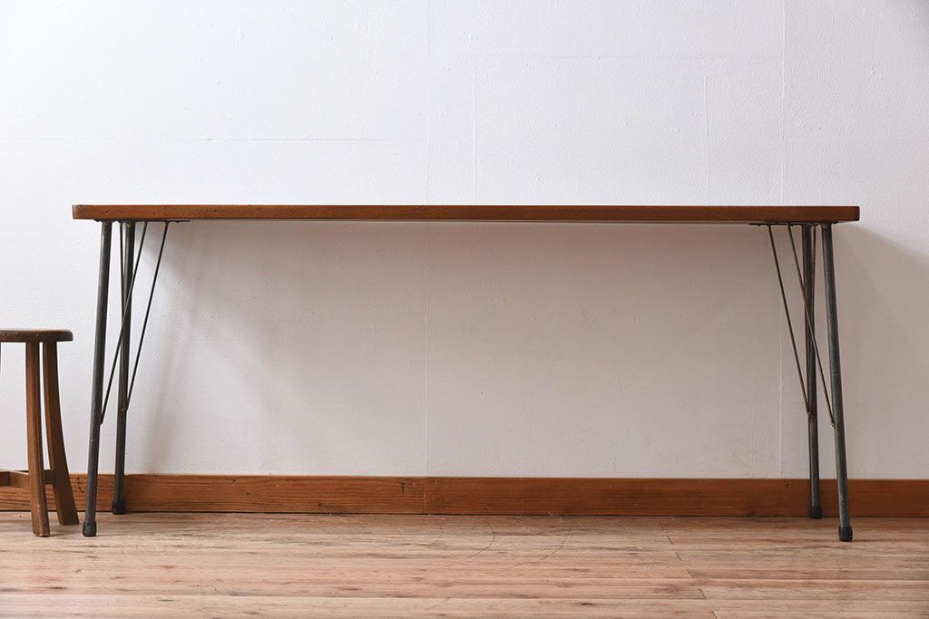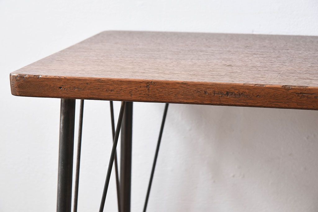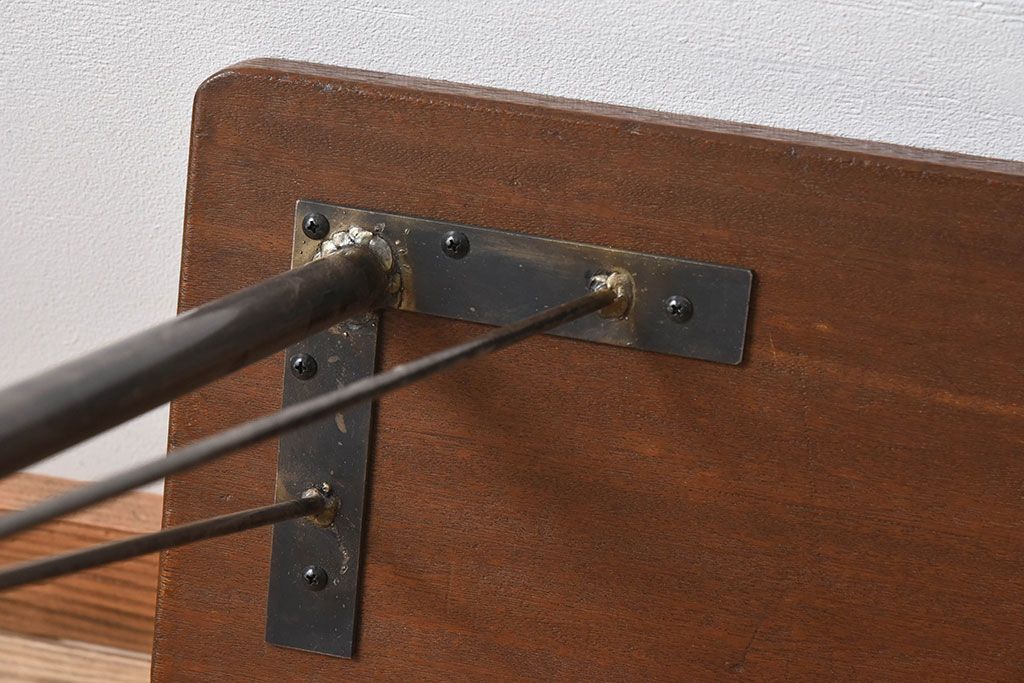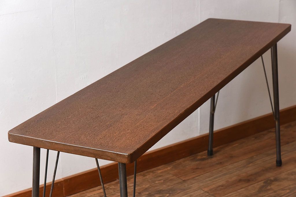 天板一枚板!古材をリメイクしたシンプルな鉄脚テーブル ラワン材製