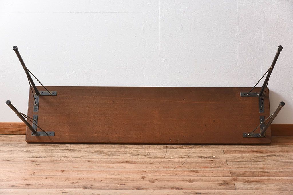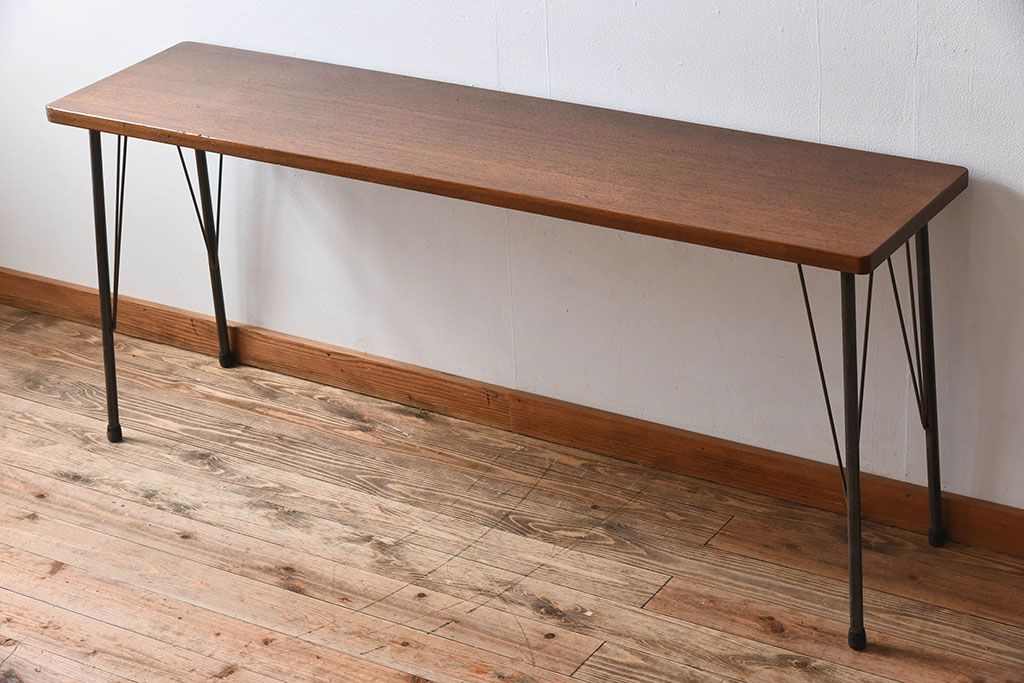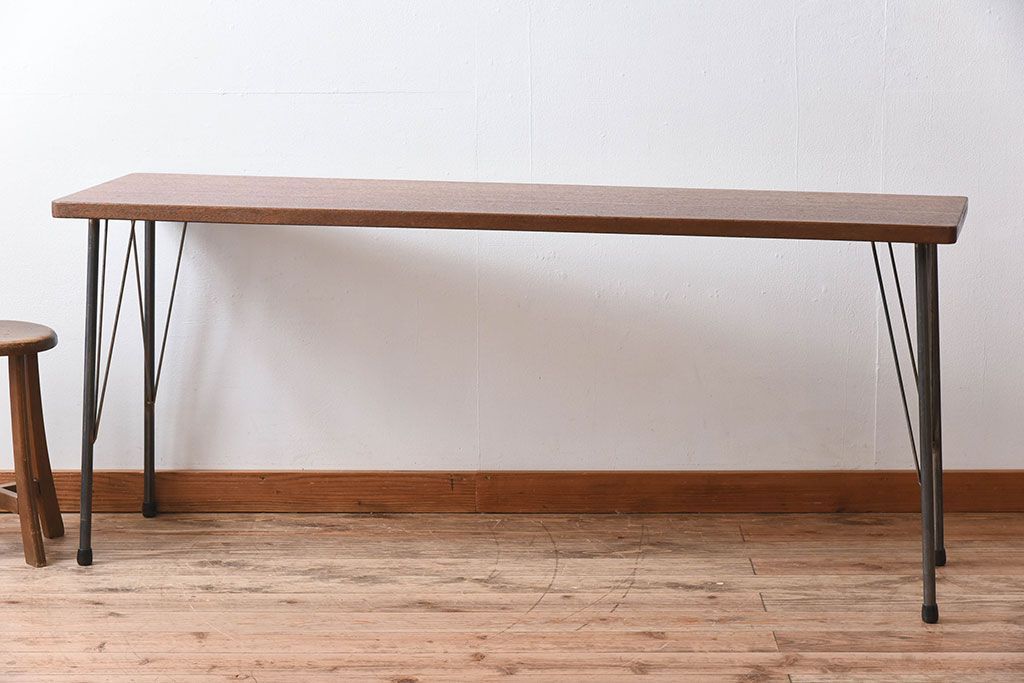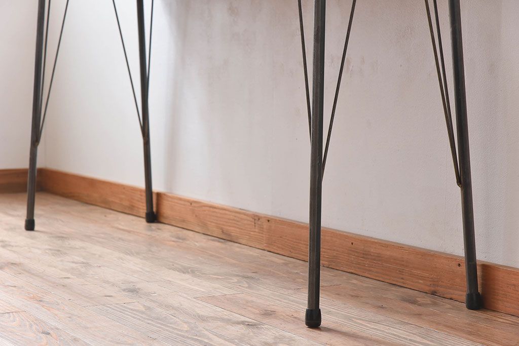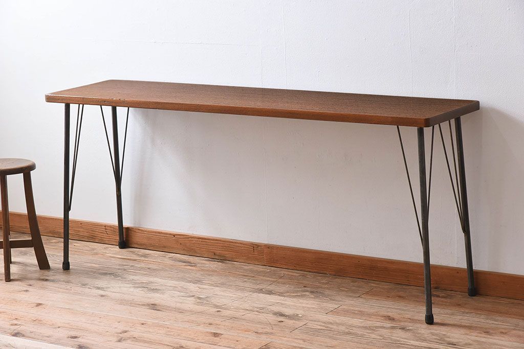 天板一枚板!古材をリメイクしたシンプルな鉄脚テーブル ラワン材製