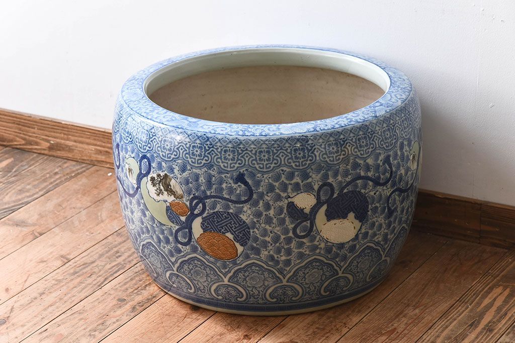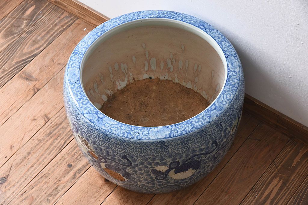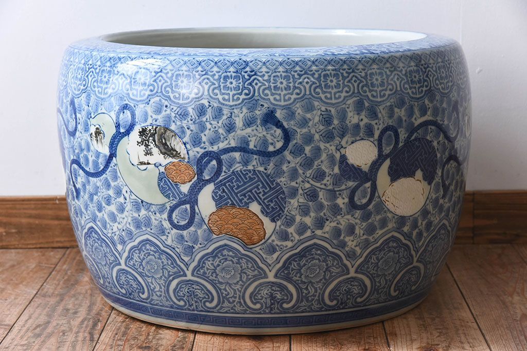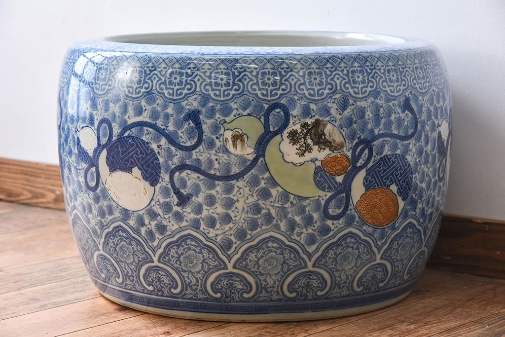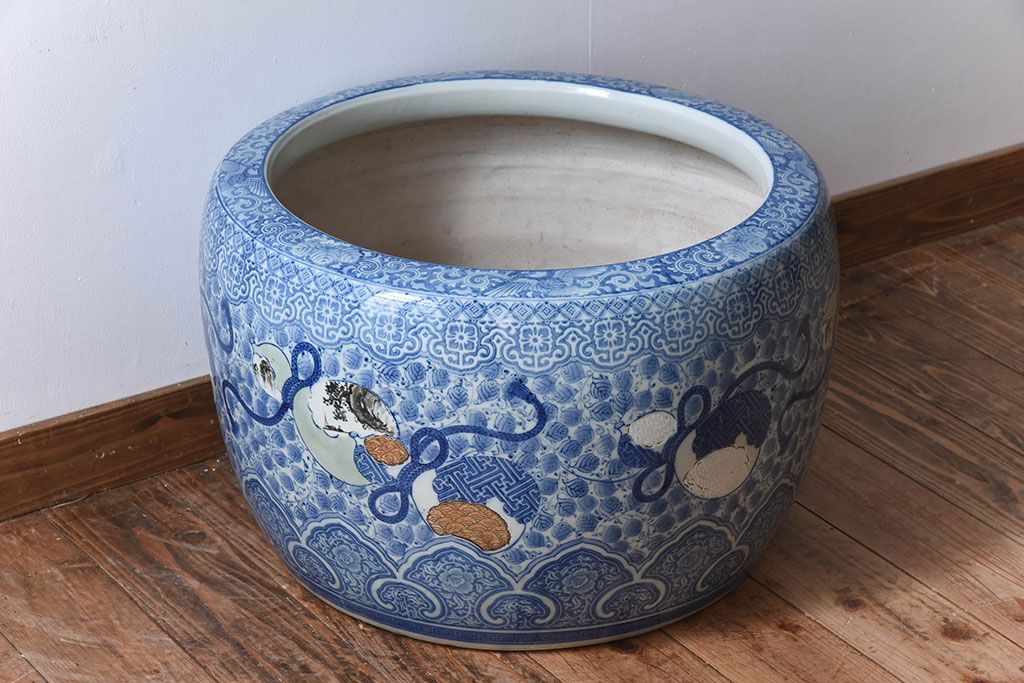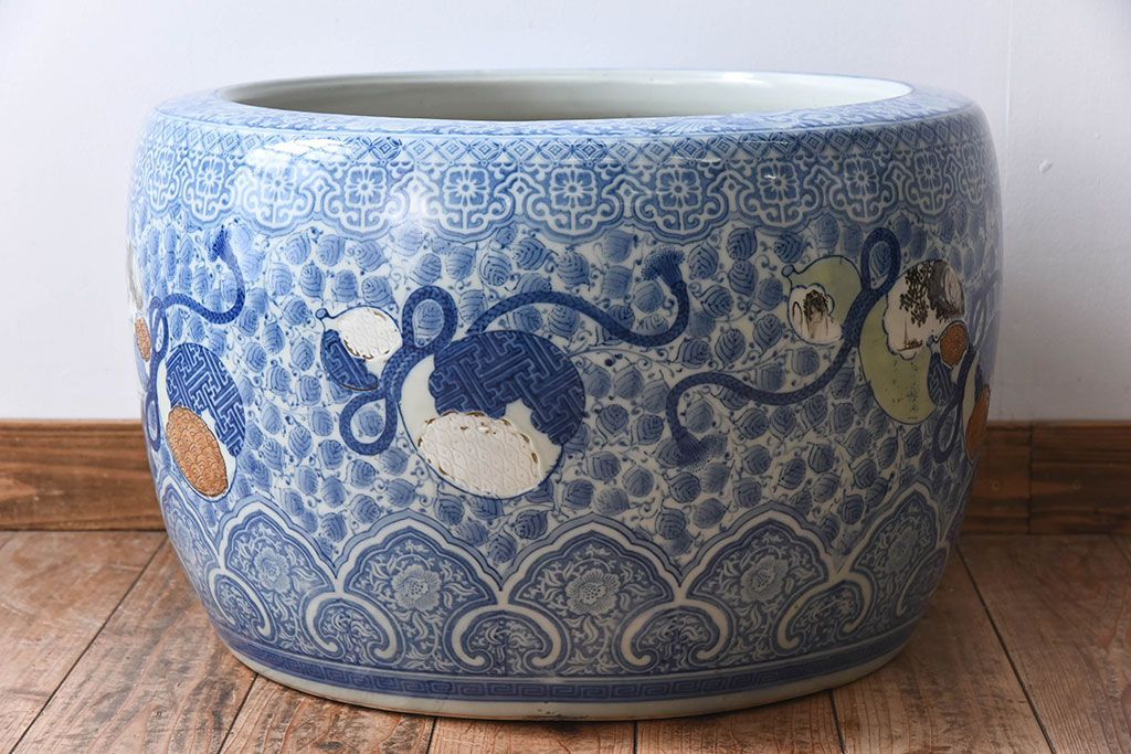 アンティーク雑貨 古民具・骨董 瓢箪(ひょうたん)の図 アンティーク染付瀬戸火鉢