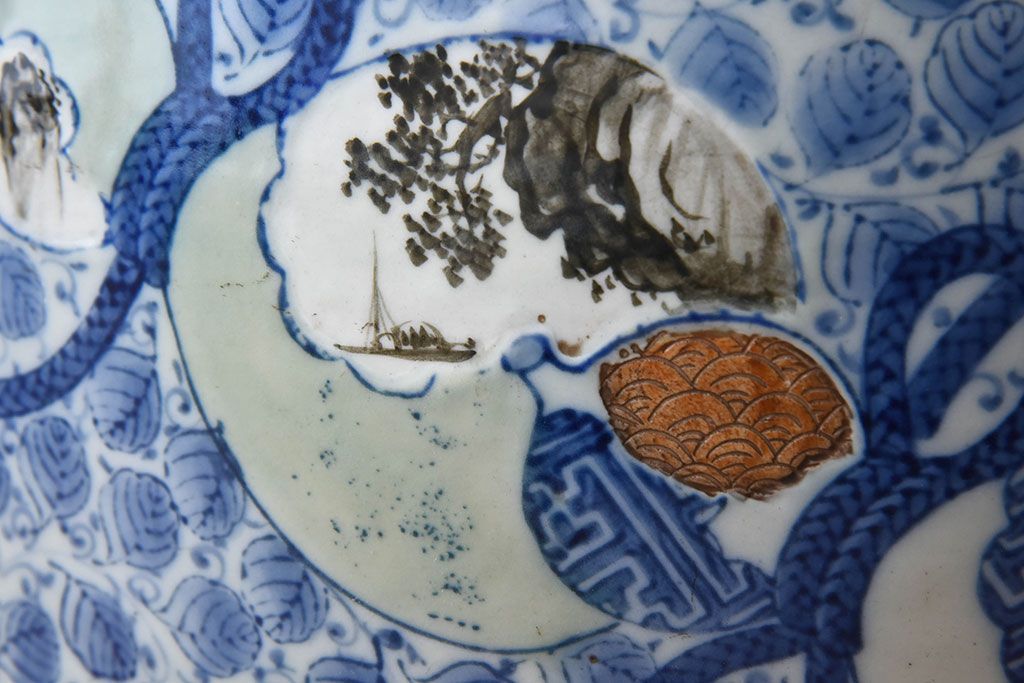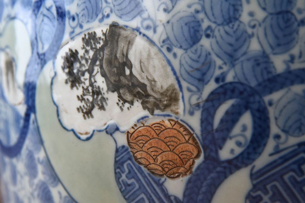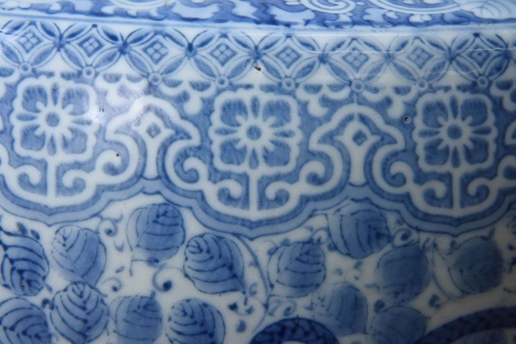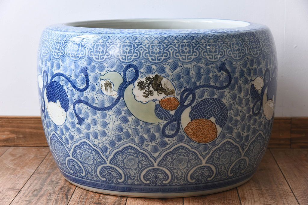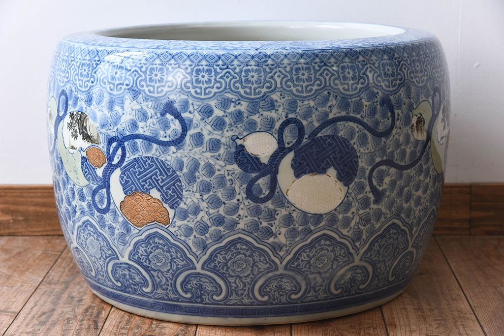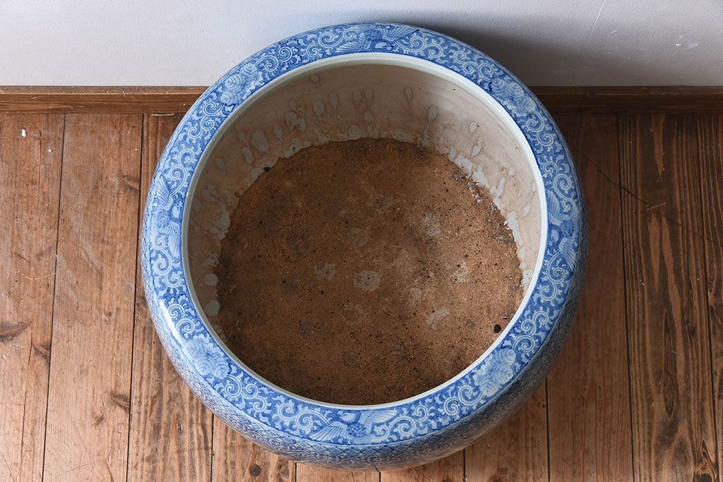 アンティーク雑貨 古民具・骨董 瓢箪(ひょうたん)の図 アンティーク染付瀬戸火鉢