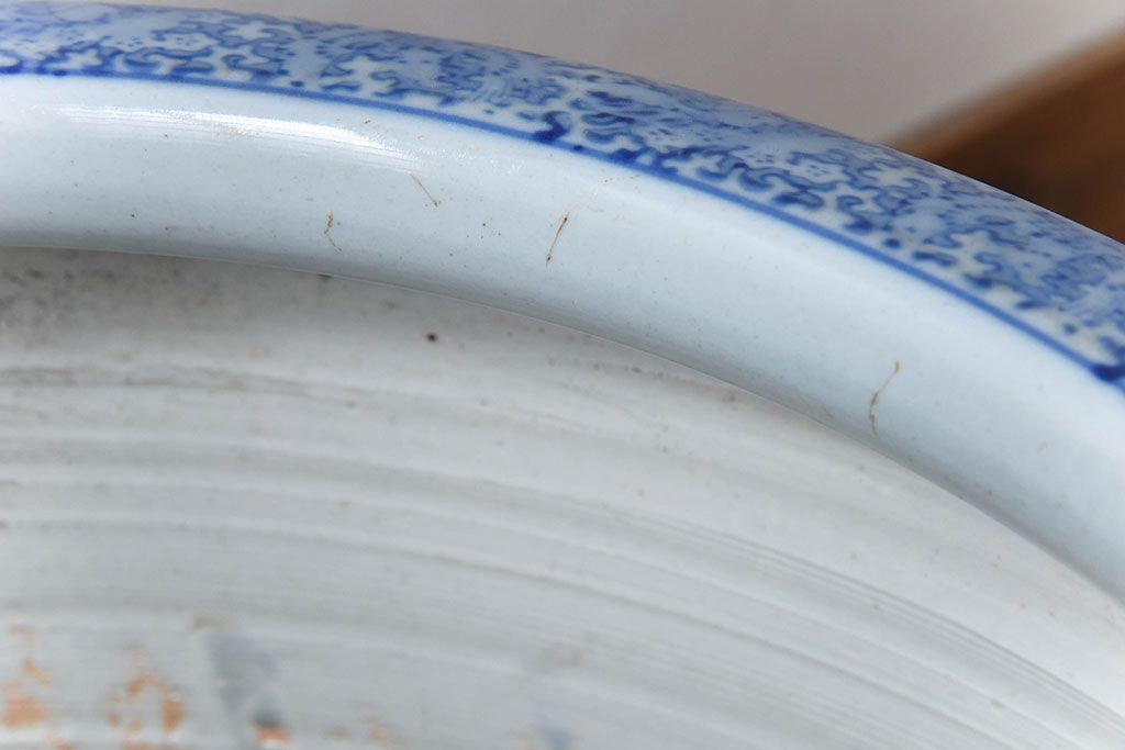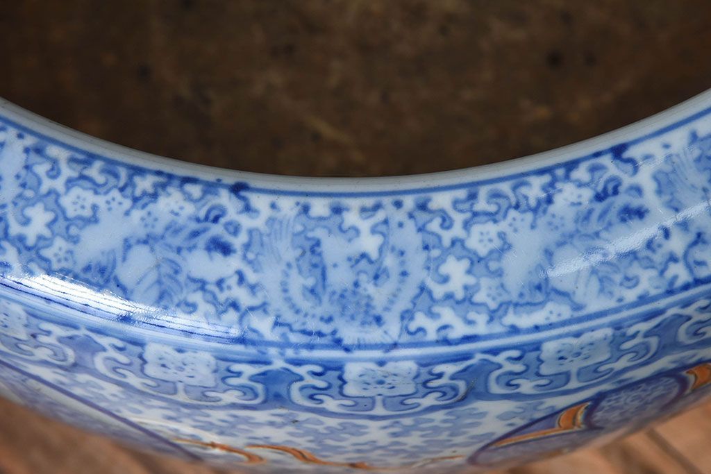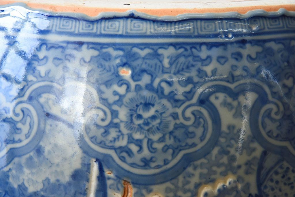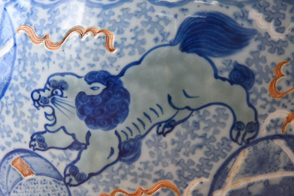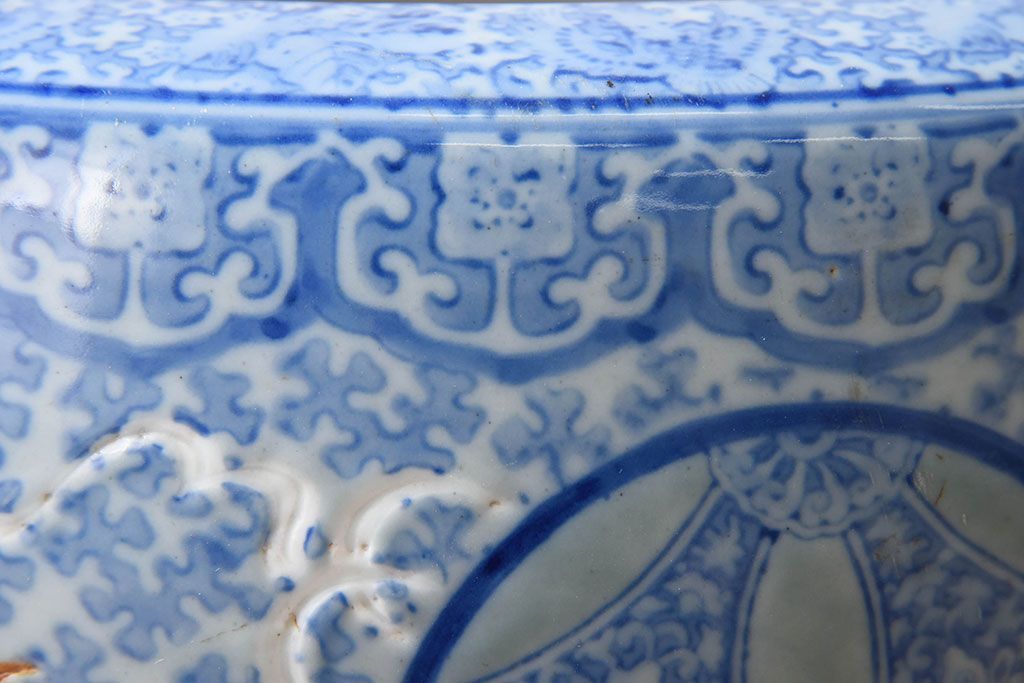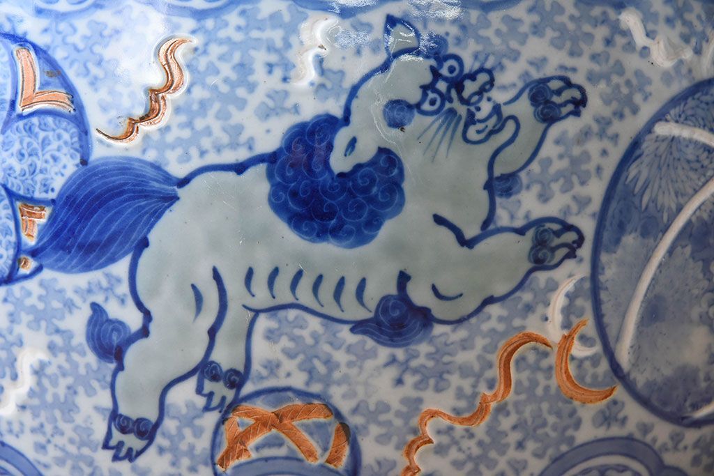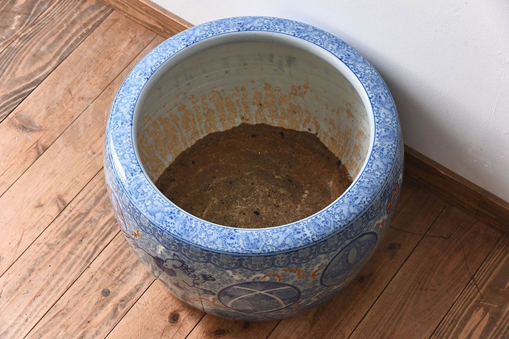 アンティーク雑貨 古民具・骨董 玉取獅子図 アンティーク染付瀬戸火鉢
