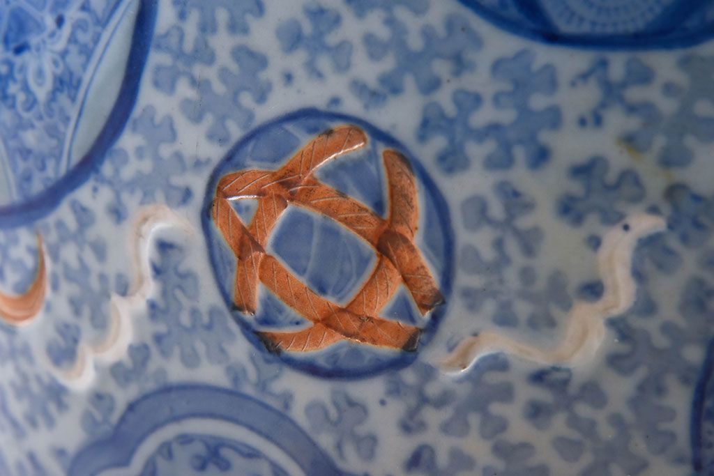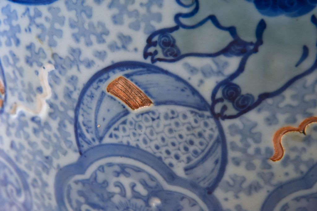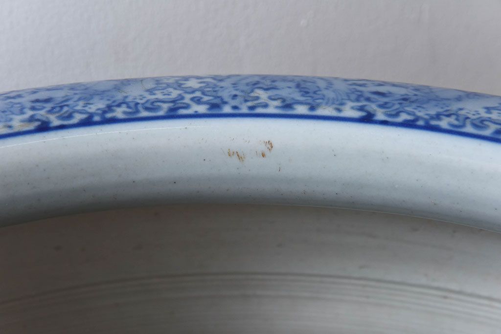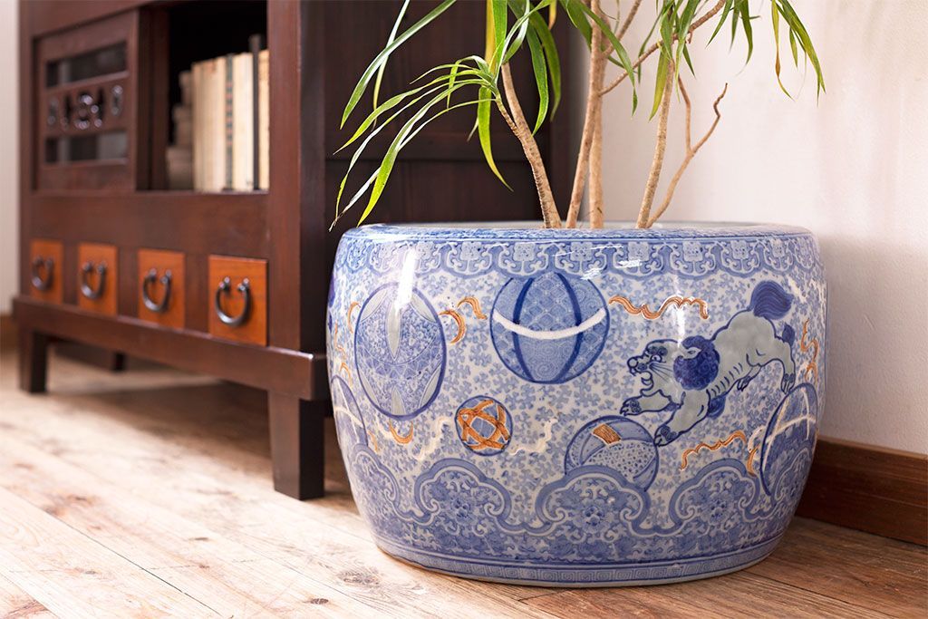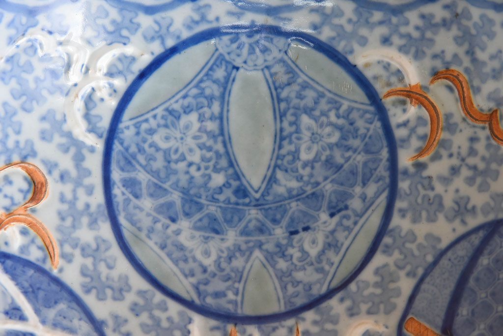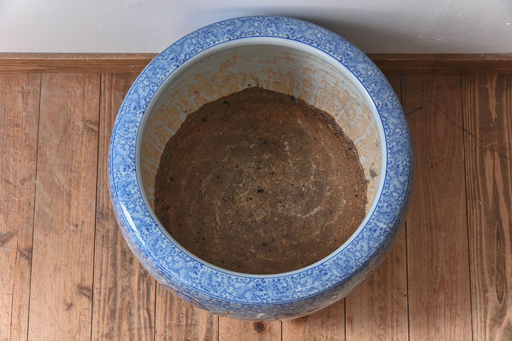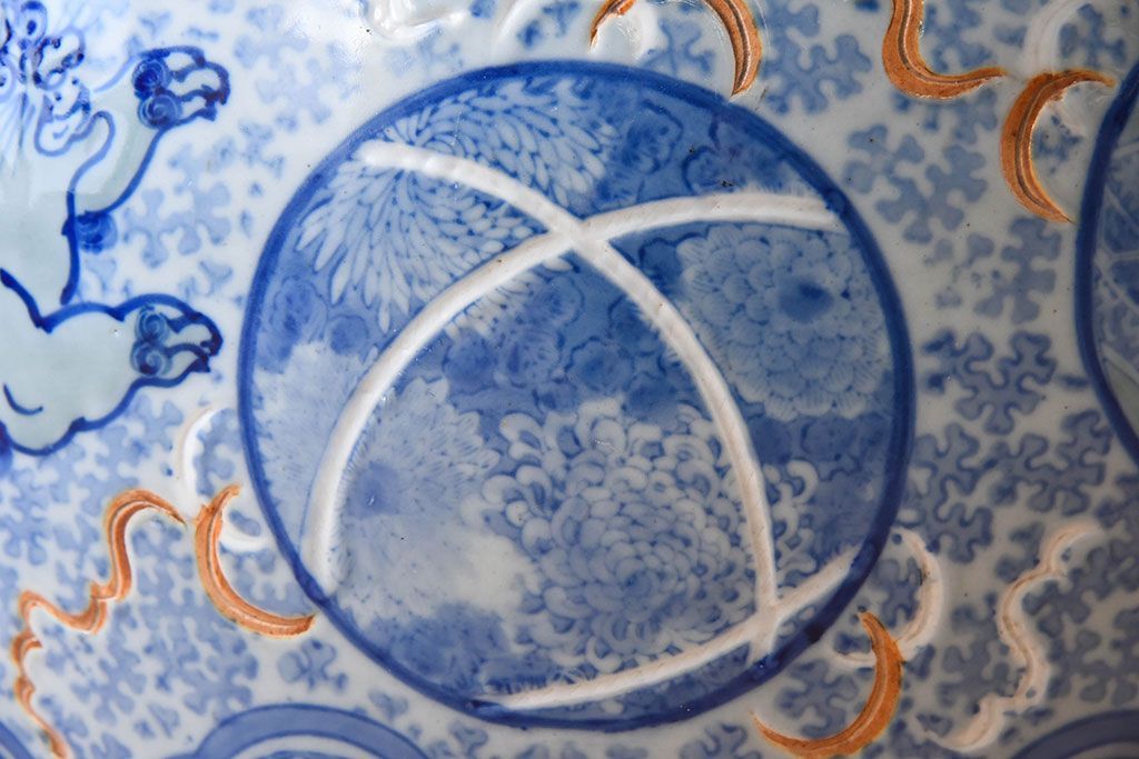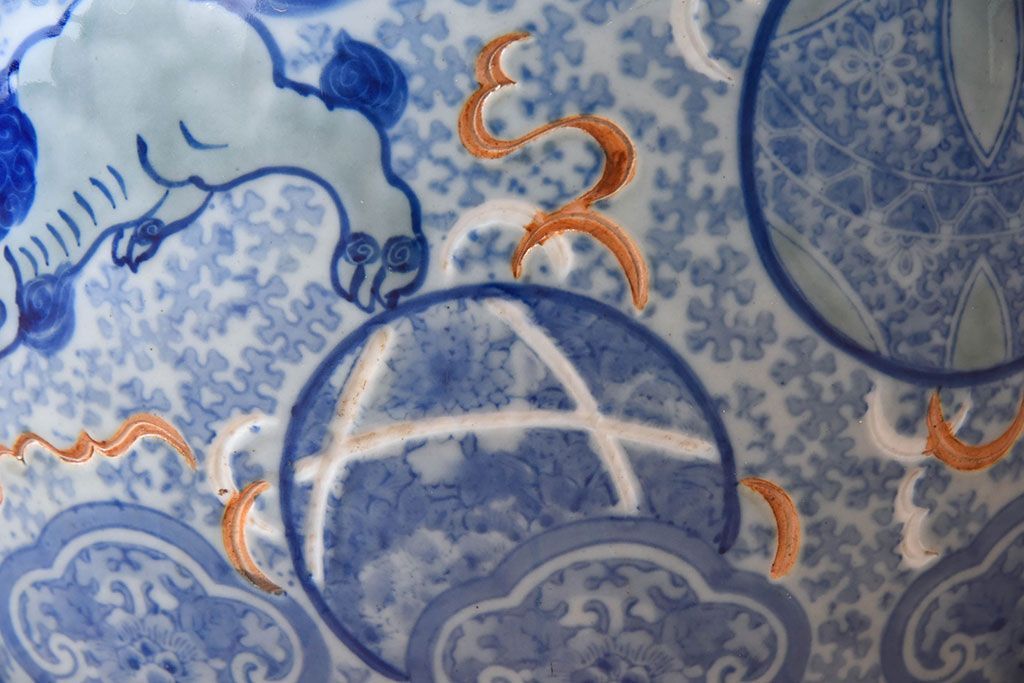 アンティーク雑貨 古民具・骨董 玉取獅子図 アンティーク染付瀬戸火鉢