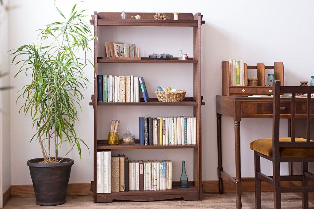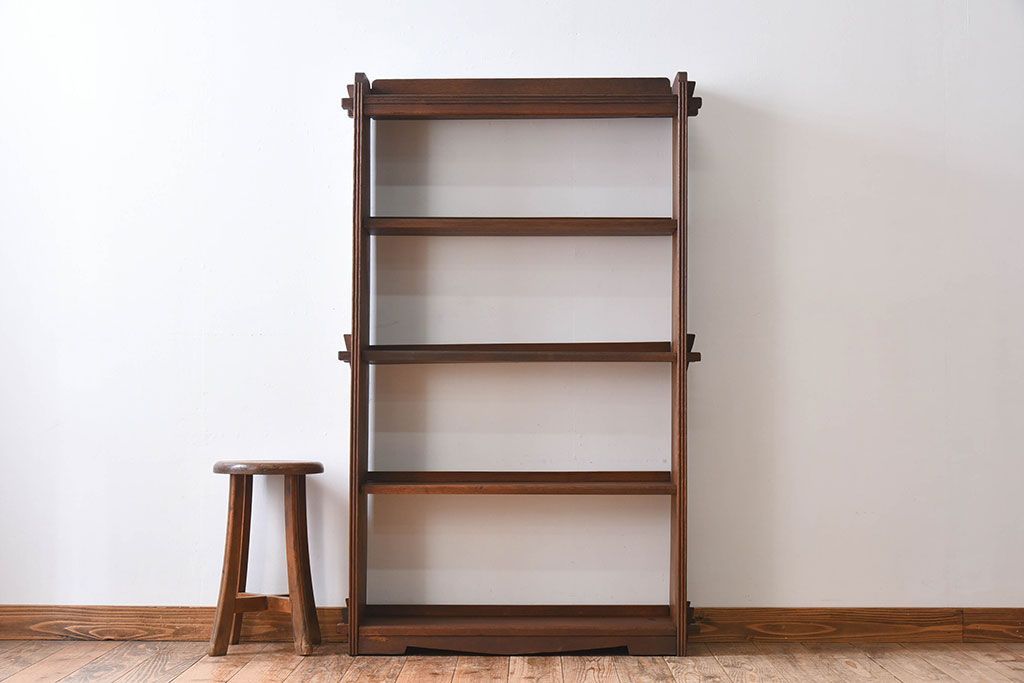 ラフジュ工房> オープンラック・シェルフ > アンティーク家具 アンティーク ラワン材製 古い木の本棚(飾り棚・ディスプレイラック)