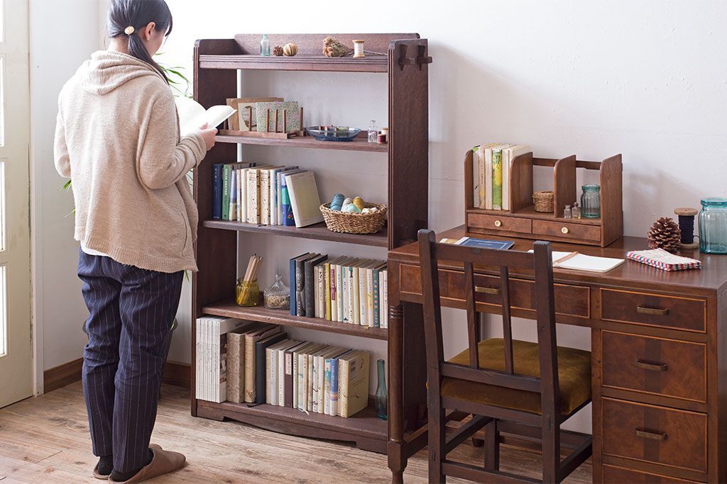 ラフジュ工房> オープンラック・シェルフ> 本棚 > アンティーク家具 アンティーク ラワン材製 古い木の本棚(飾り棚・ディスプレイラック)
