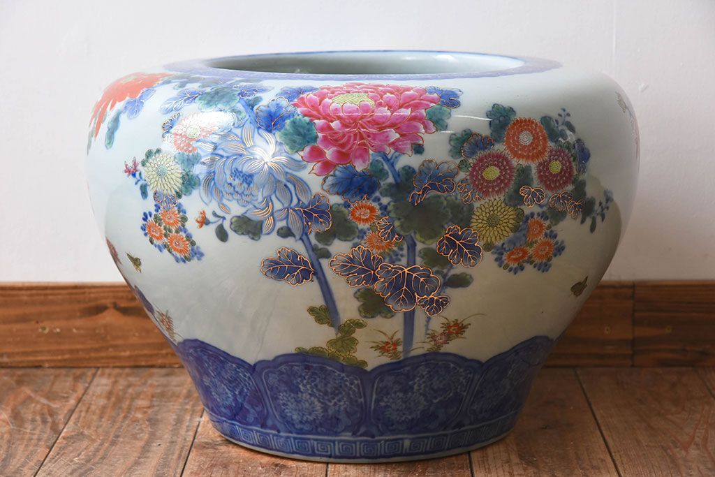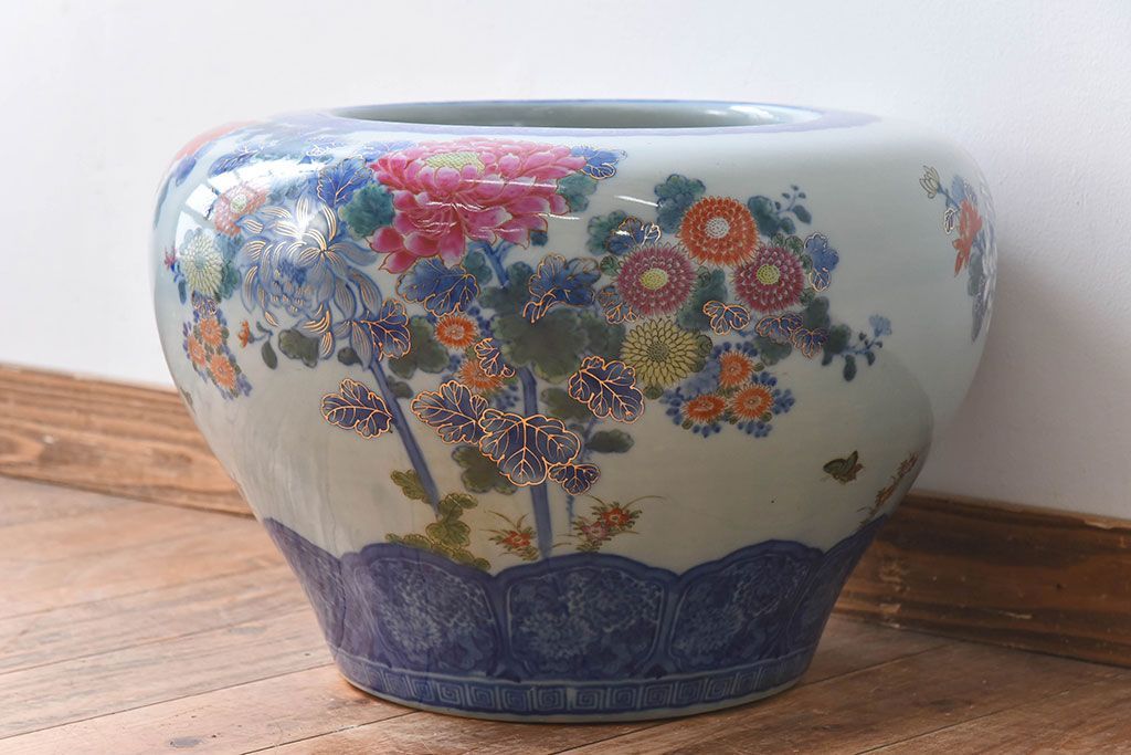 アンティーク雑貨 古民具・骨董 菊の図 アンティーク 瀬戸火鉢