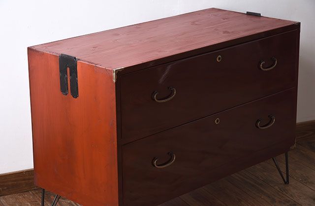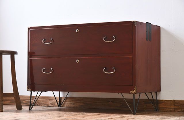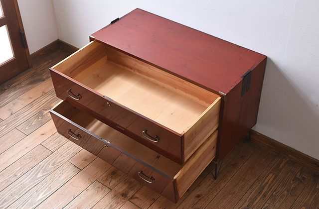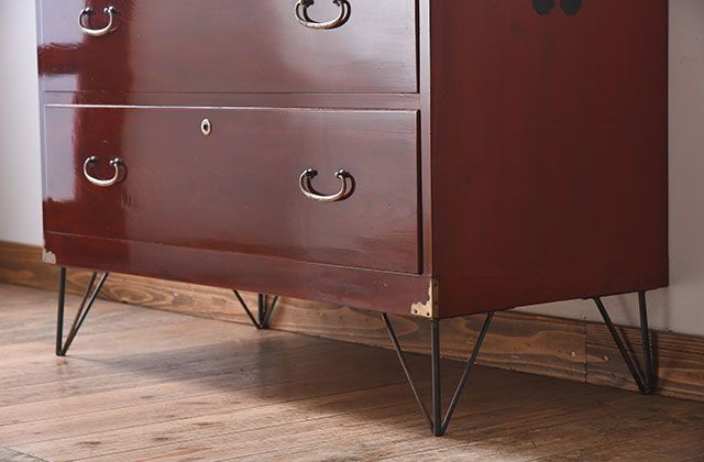 アンティーク家具 鉄脚付き時代箪笥ローボード 前面欅材 和製アンティーク