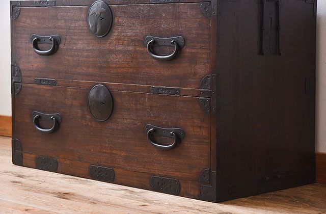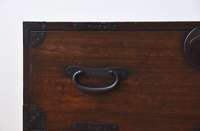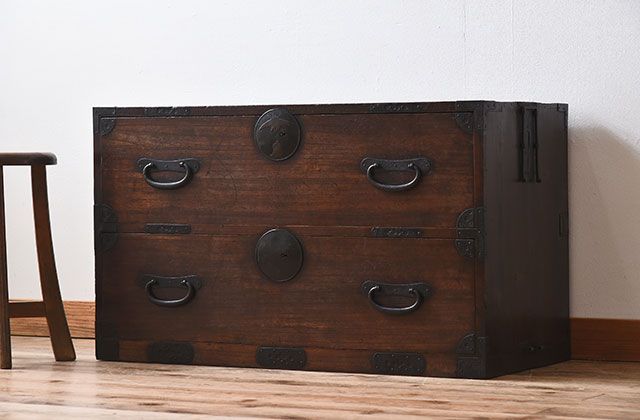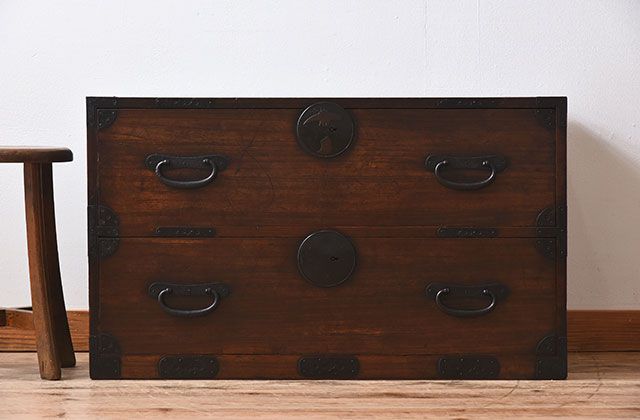 和箪笥 > アンティーク家具 丸金具付き!アンティークの時代箪笥ローボード 前桐材製(桐箪笥、桐たんす)
