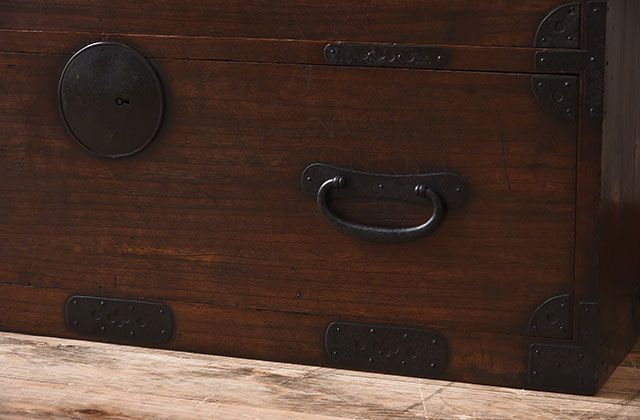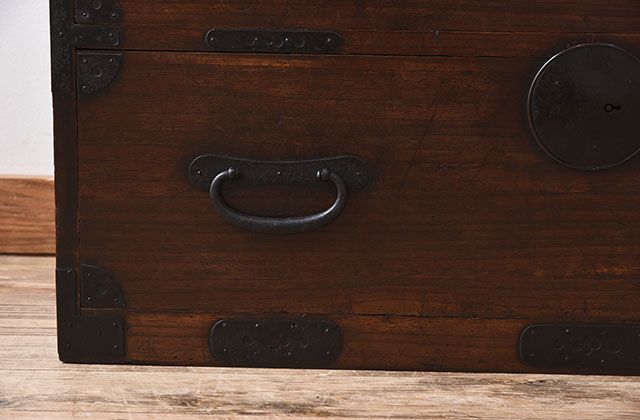 和箪笥> 衣装箪笥 > アンティーク家具 丸金具付き!アンティークの時代箪笥ローボード 前桐材製(桐箪笥、桐たんす)