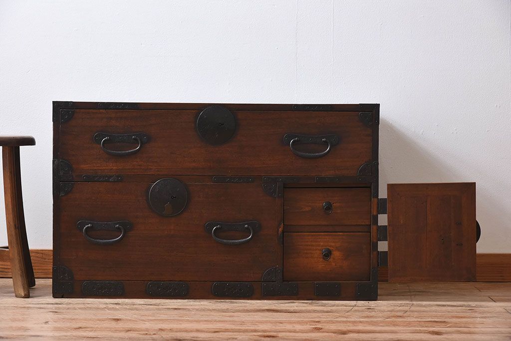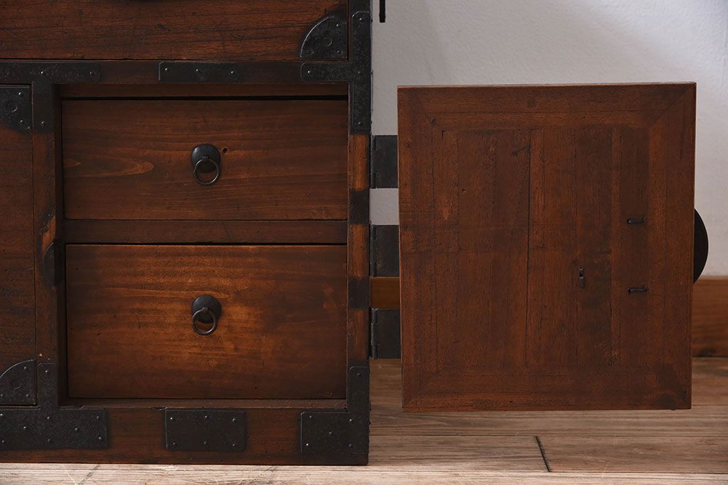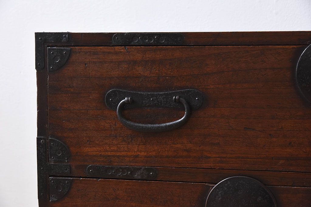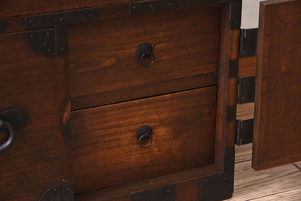 アンティーク家具 丸金具付き!アンティークの時代箪笥ローボード 前桐材製(2)