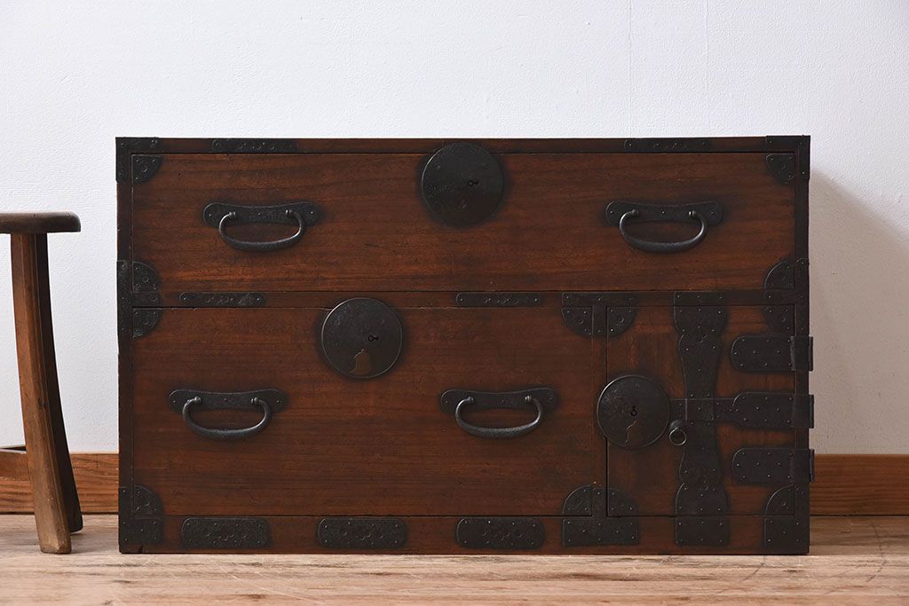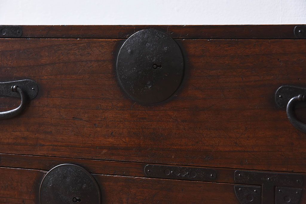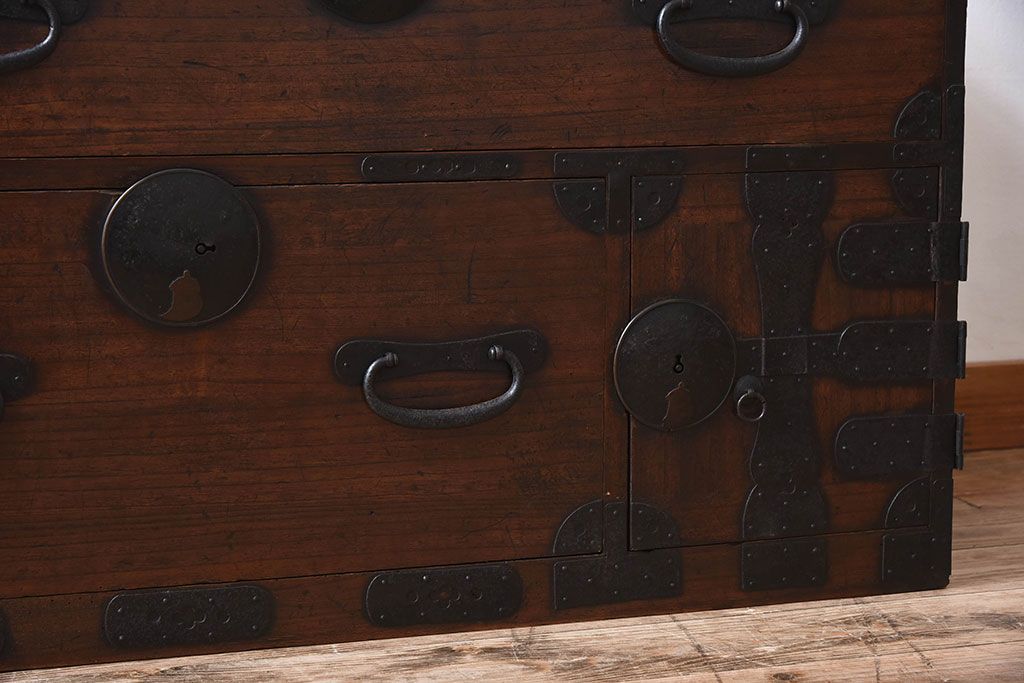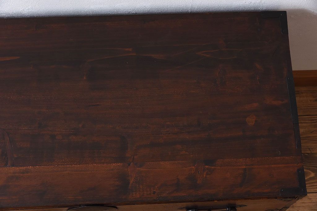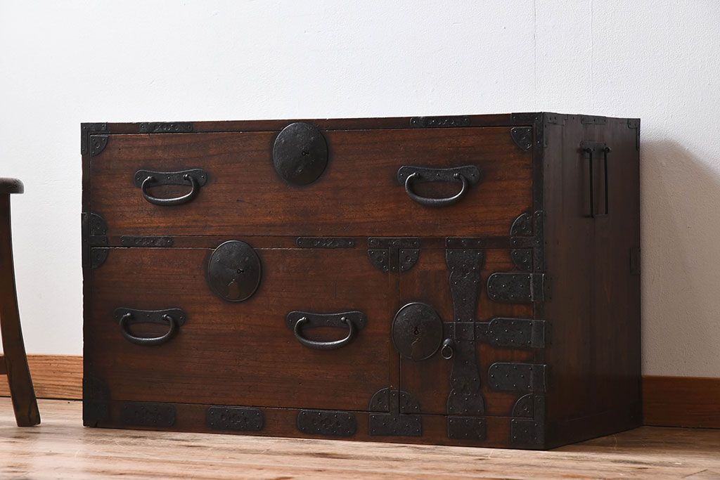 アンティーク家具 丸金具付き!アンティークの時代箪笥ローボード 前桐材製(2)