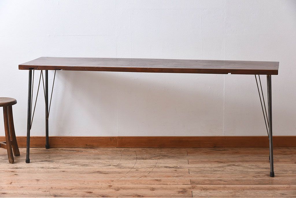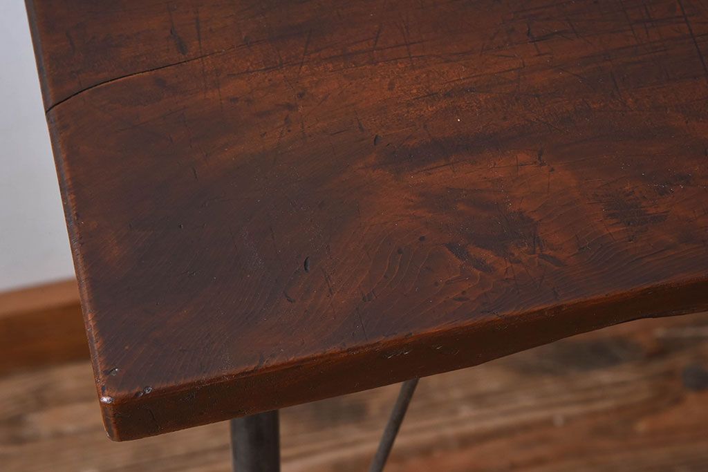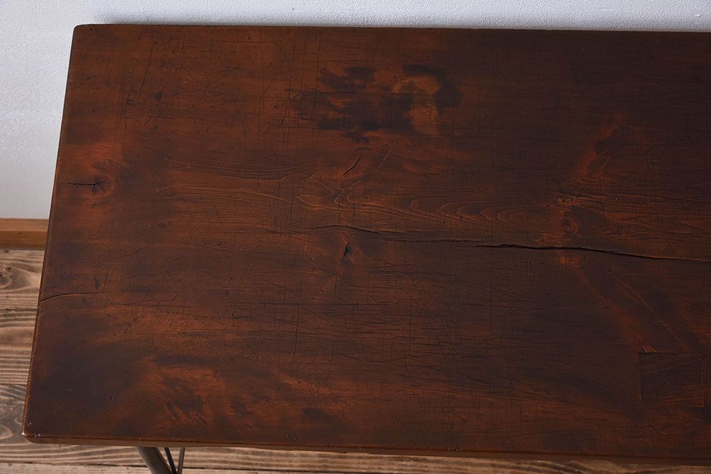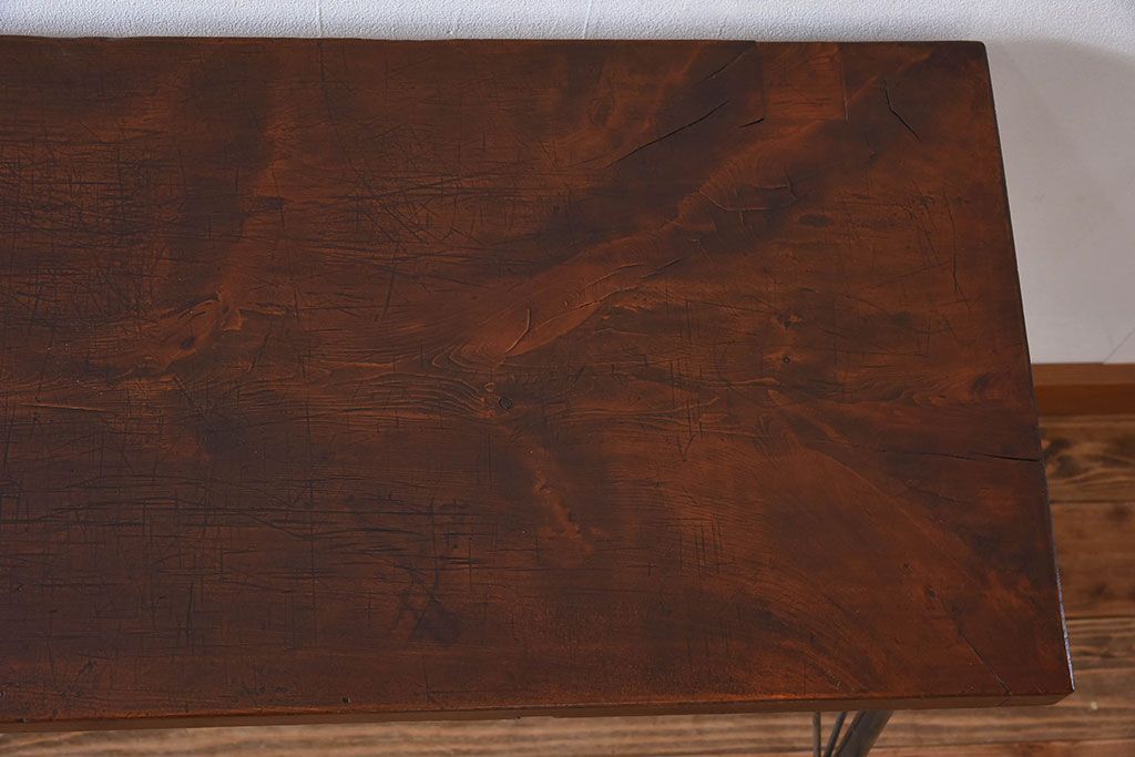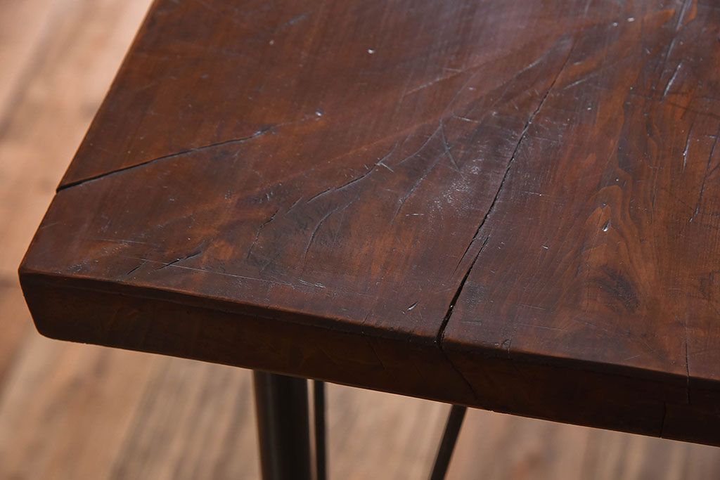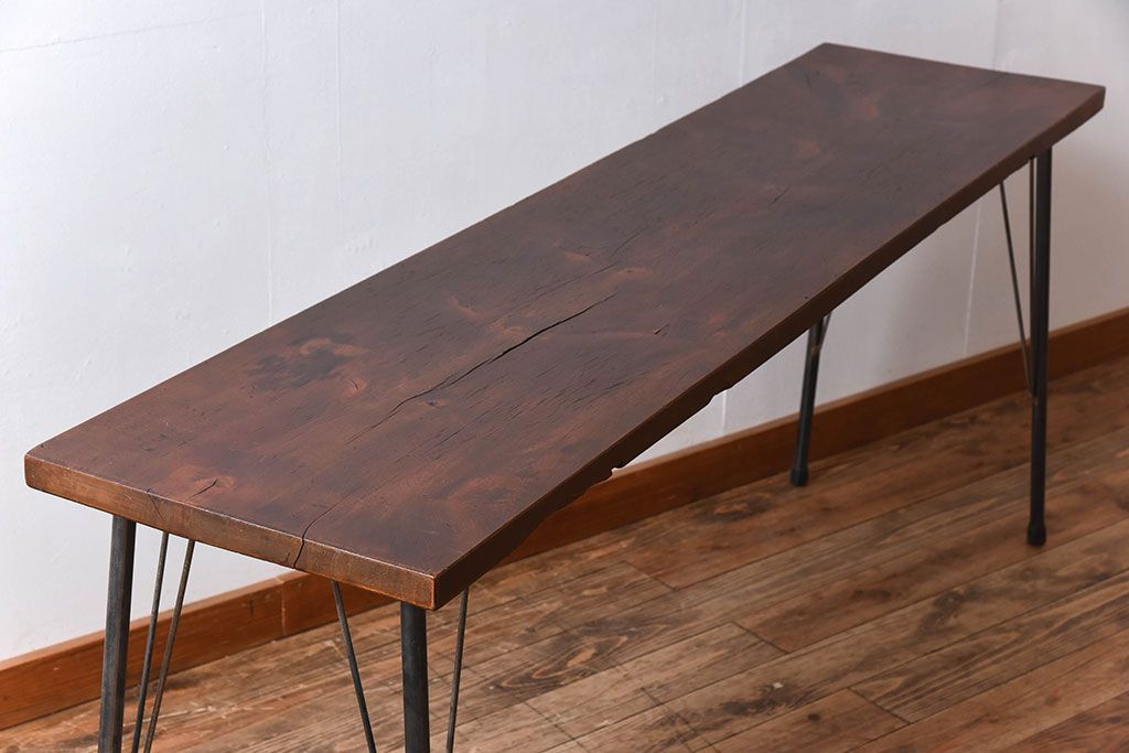 天板一枚板!古材をリメイクした鉄脚テーブル(1)です。