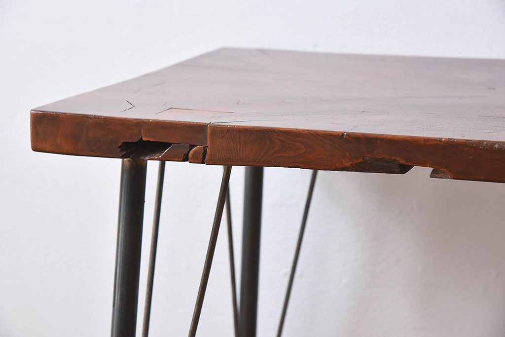 天板一枚板!古材をリメイクした鉄脚テーブル(1)