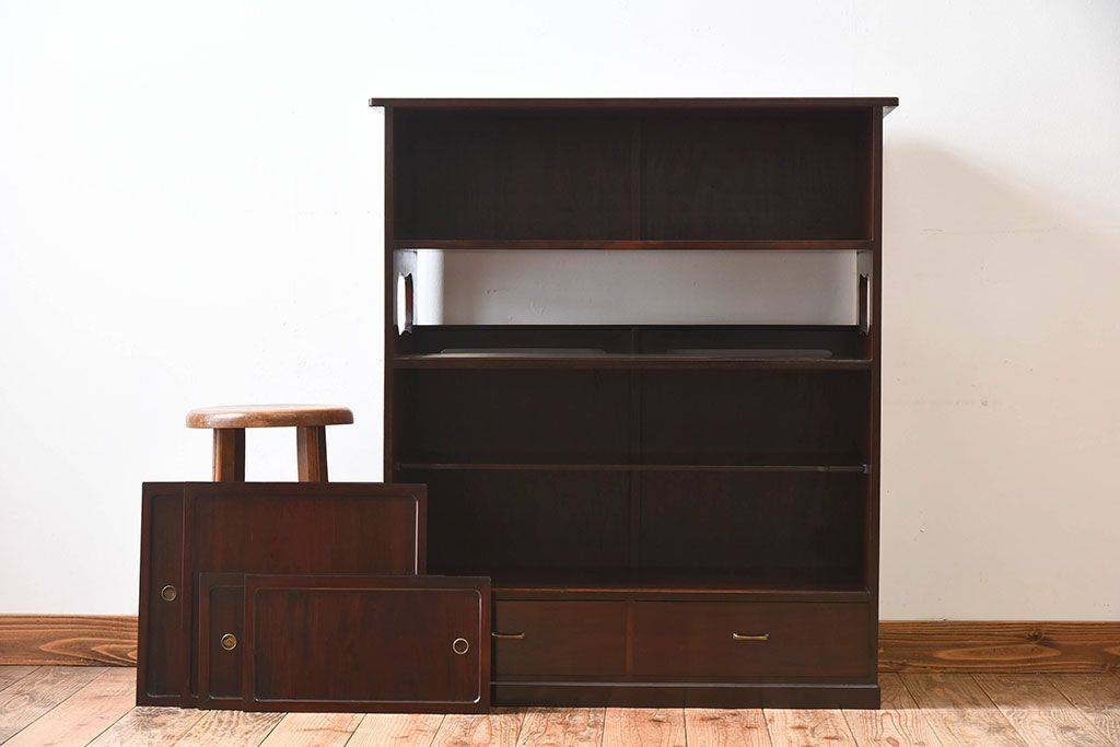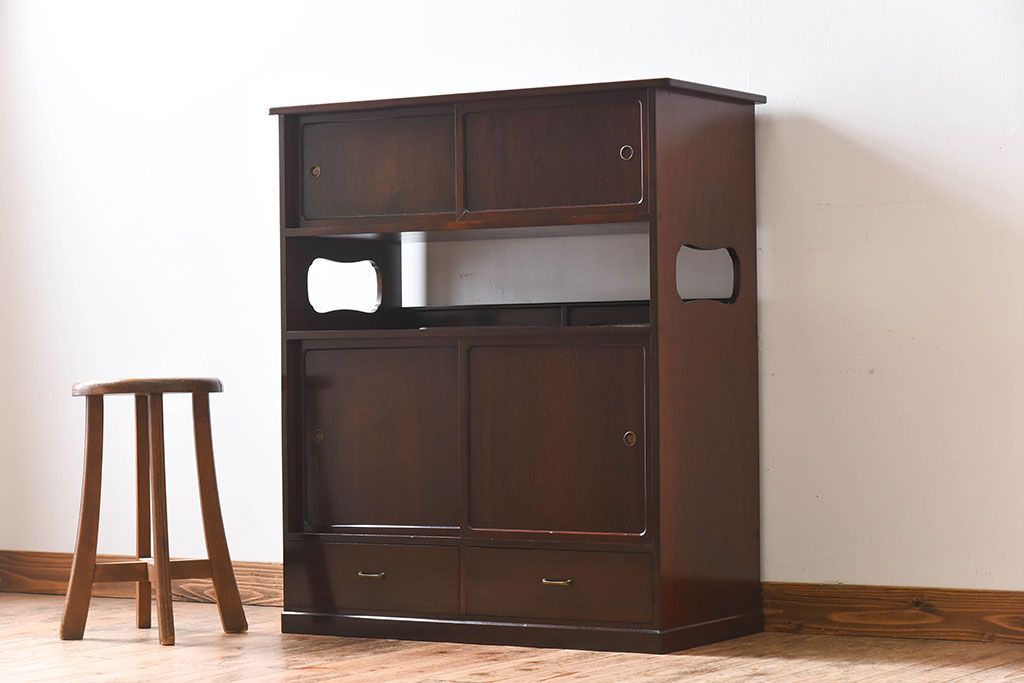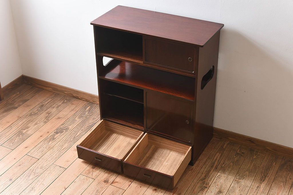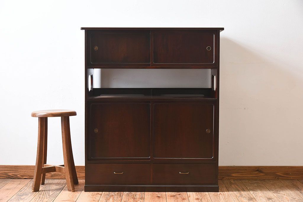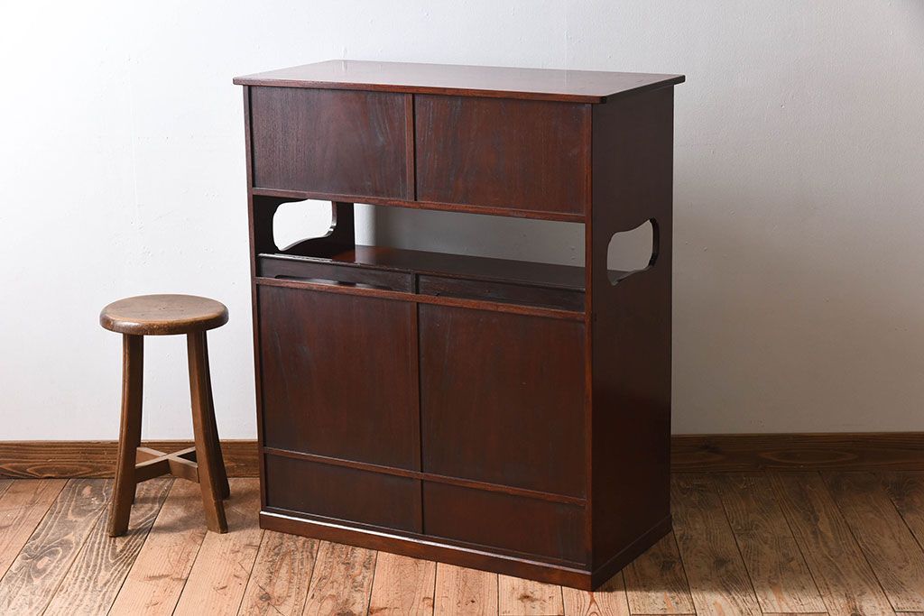アンティーク家具 唐木・花梨材 大正昭和期 和モダン 指物 上品なアンティーク茶箪笥(カリン材)