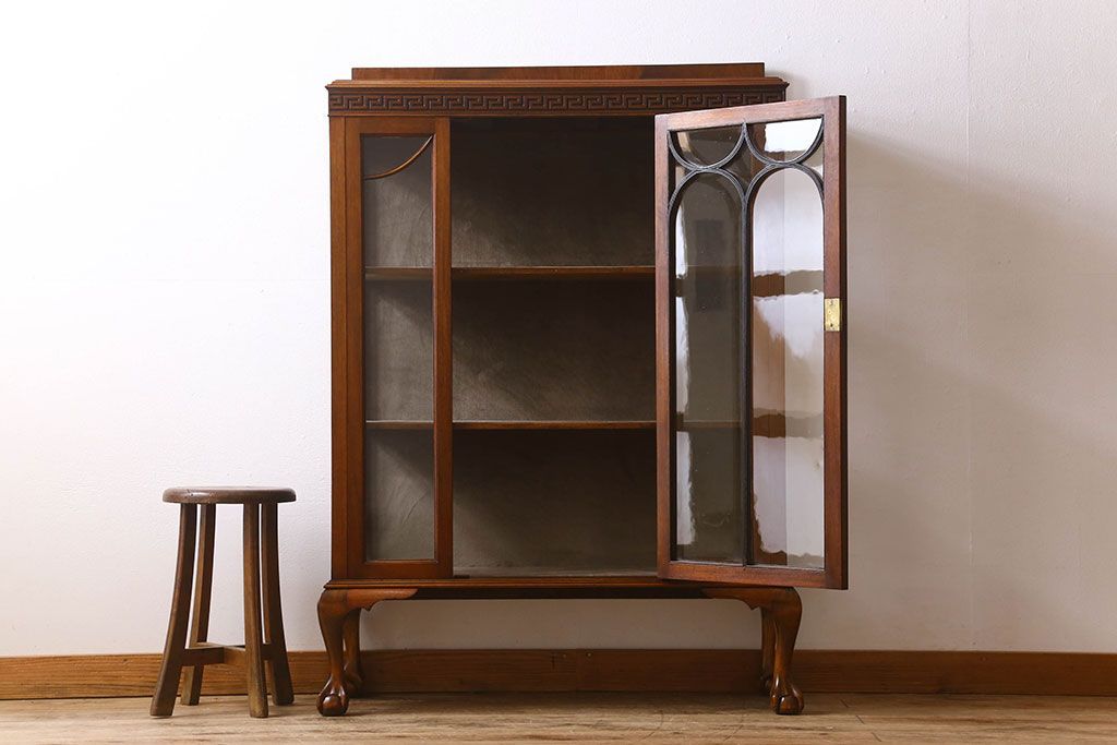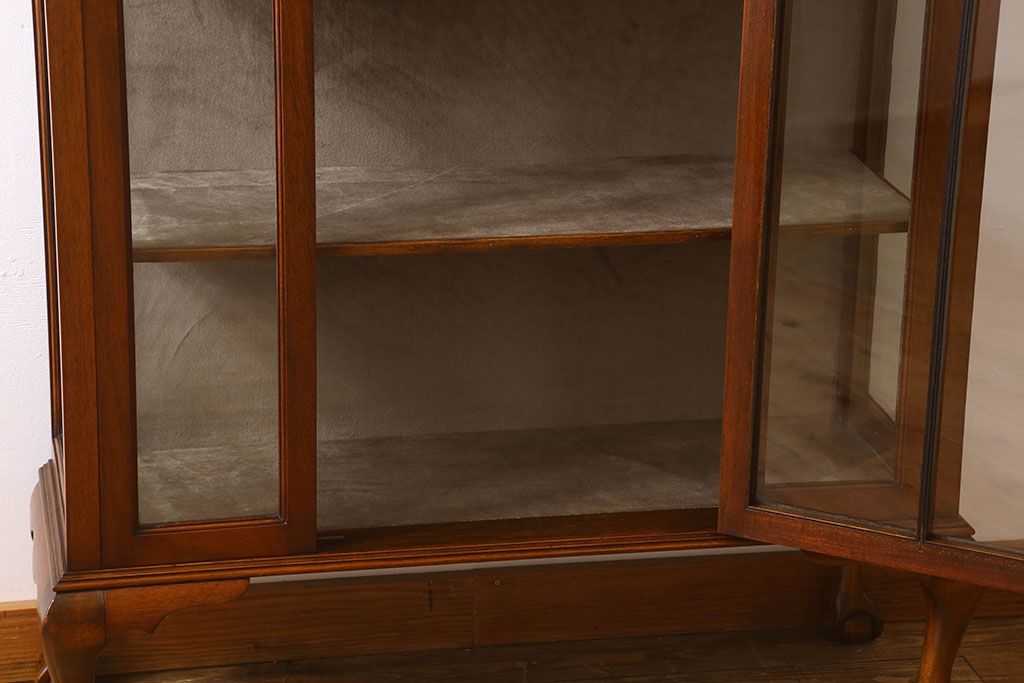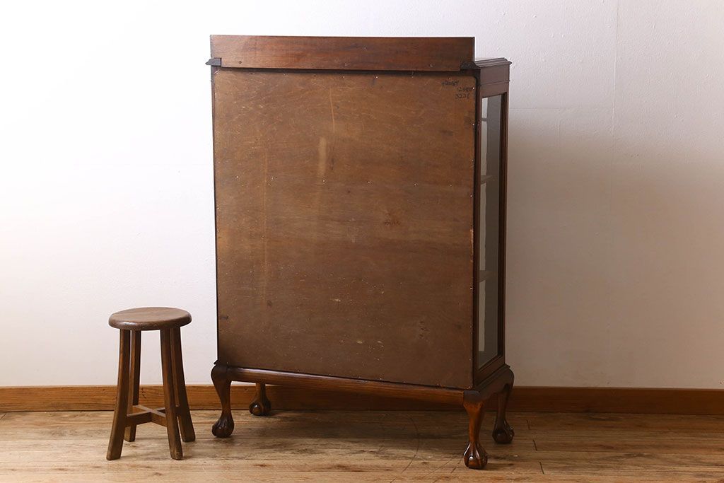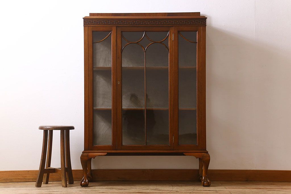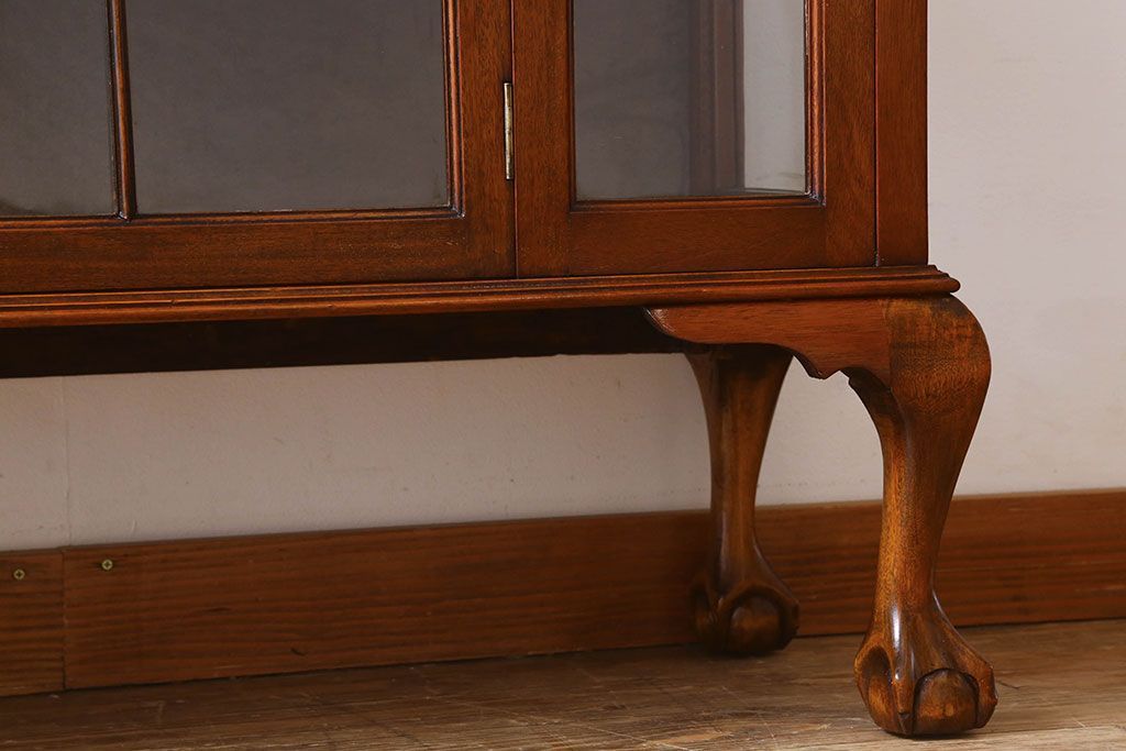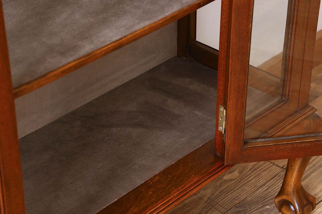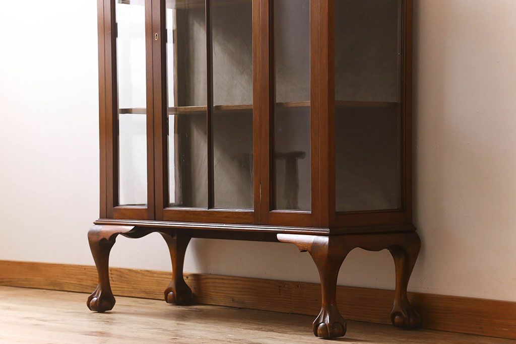 アンティーク家具 ベロア貼り!イギリスアンティークの猫脚キャビネット マホガニー材