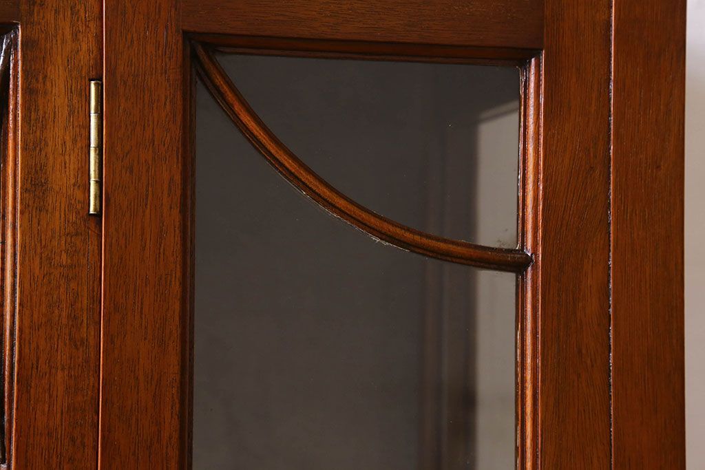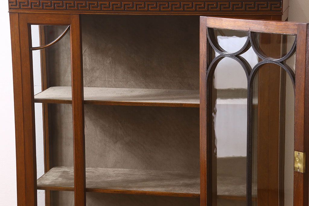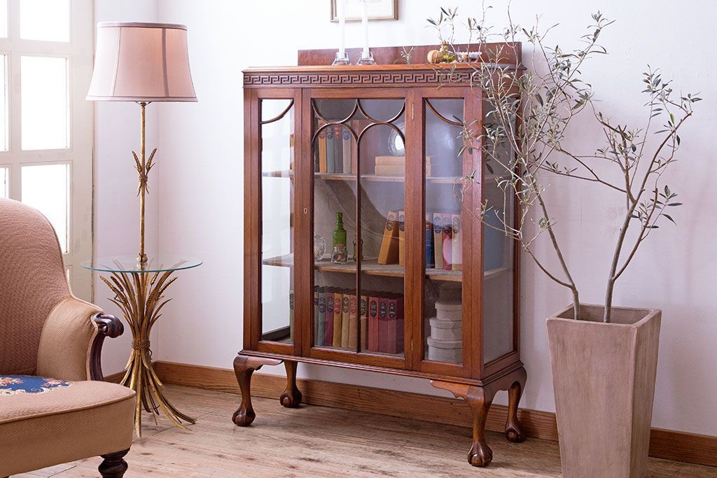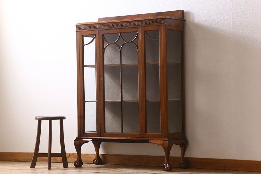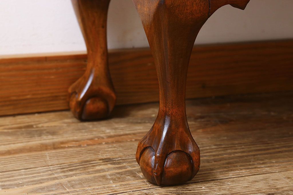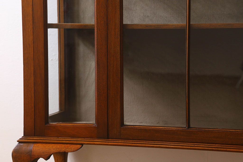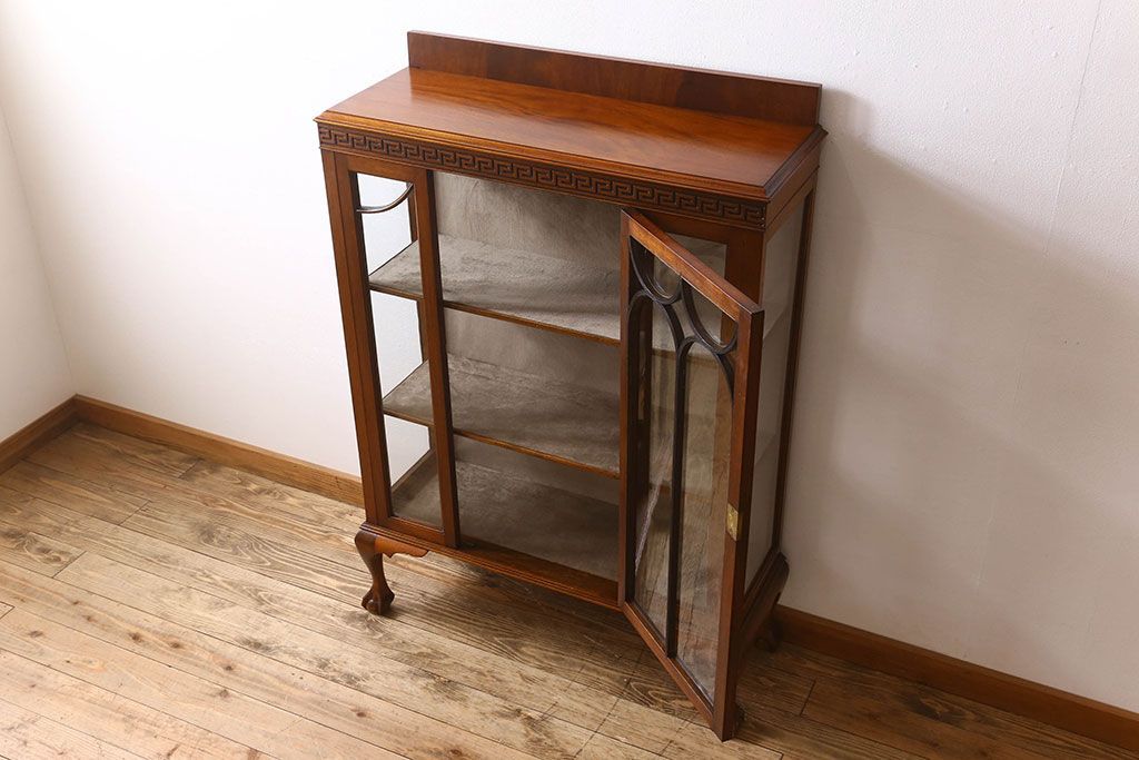 アンティーク家具 ベロア貼り!イギリスアンティークの猫脚キャビネット マホガニー材