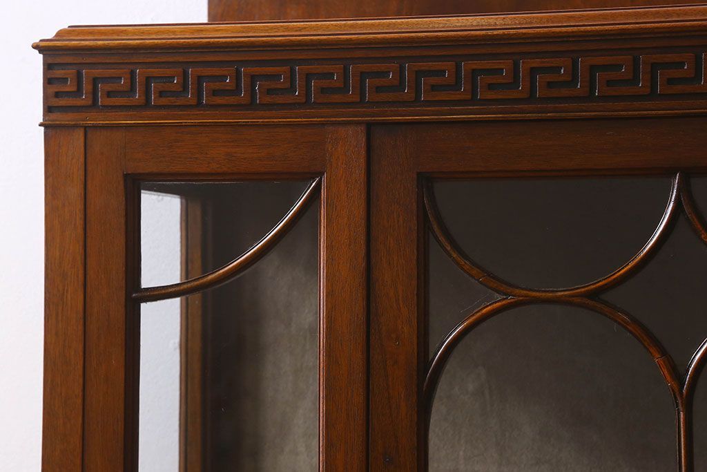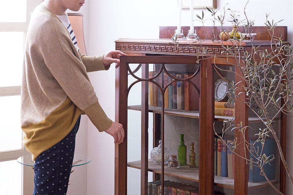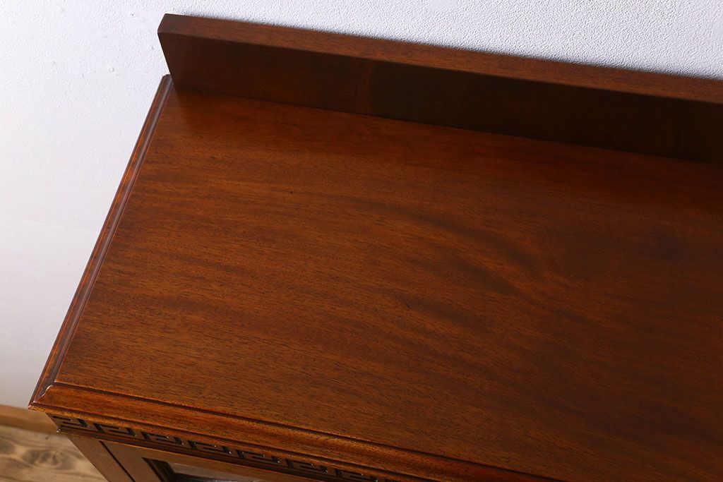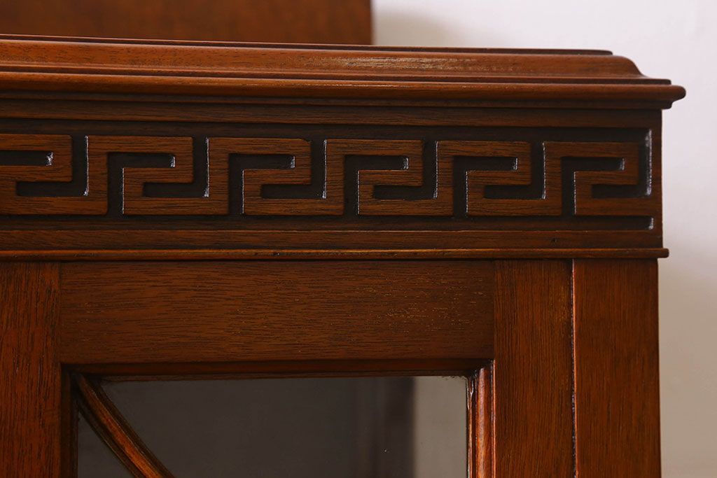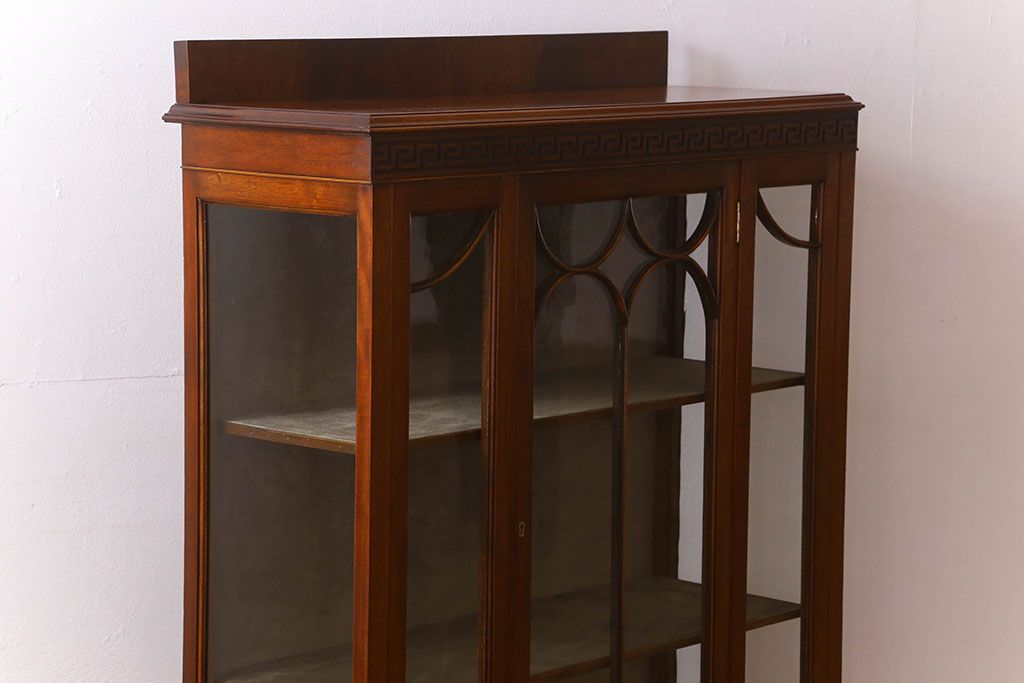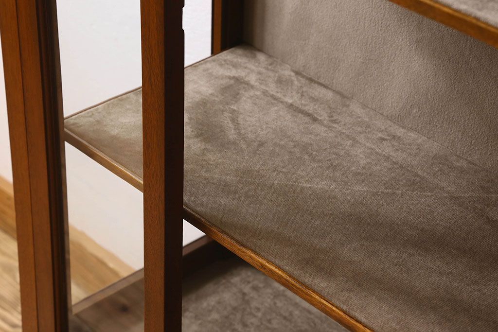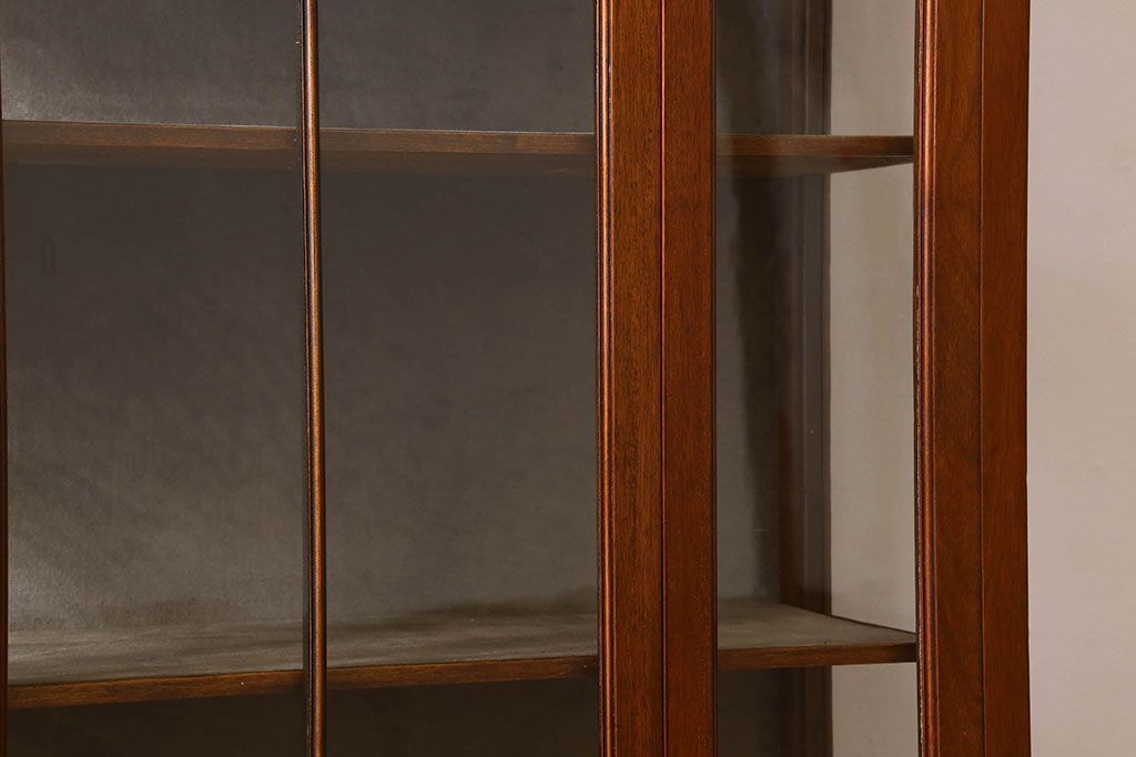 アンティーク家具 ベロア貼り!イギリスアンティークの猫脚キャビネット マホガニー材