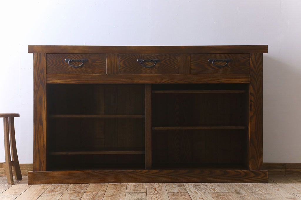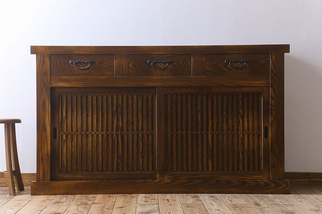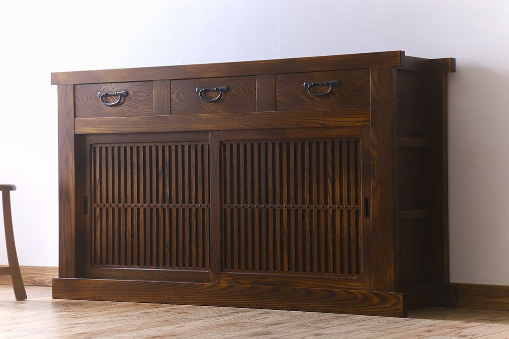 中古 民芸家具 国産 手作り 五尺 栗無垢材製!収納箪笥サイドボード(水屋箪笥)(定価約35万円)