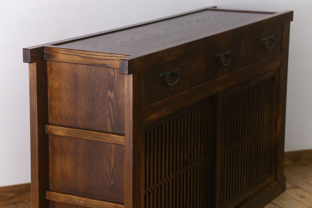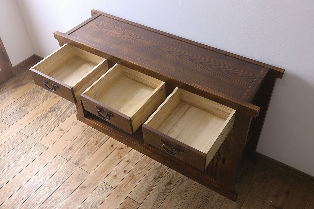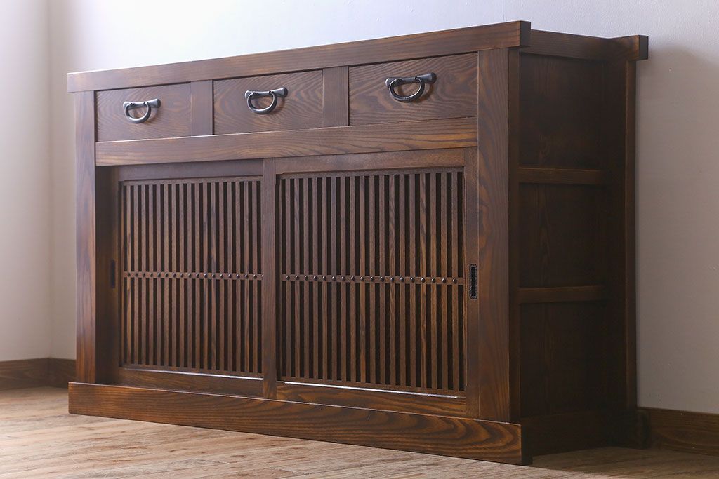 和箪笥> 水屋箪笥 > 中古 民芸家具 国産 手作り 五尺 栗無垢材製!収納箪笥サイドボード(水屋箪笥)(定価約35万円)
